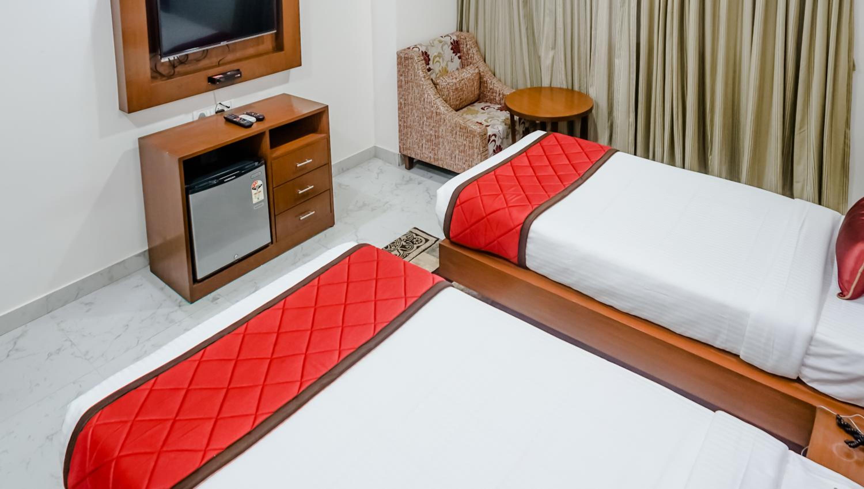 The hotel does not have a mini fridge, The towels needs to be replaced as they are old. The furniture is outdated . It is not at par with.the charges.