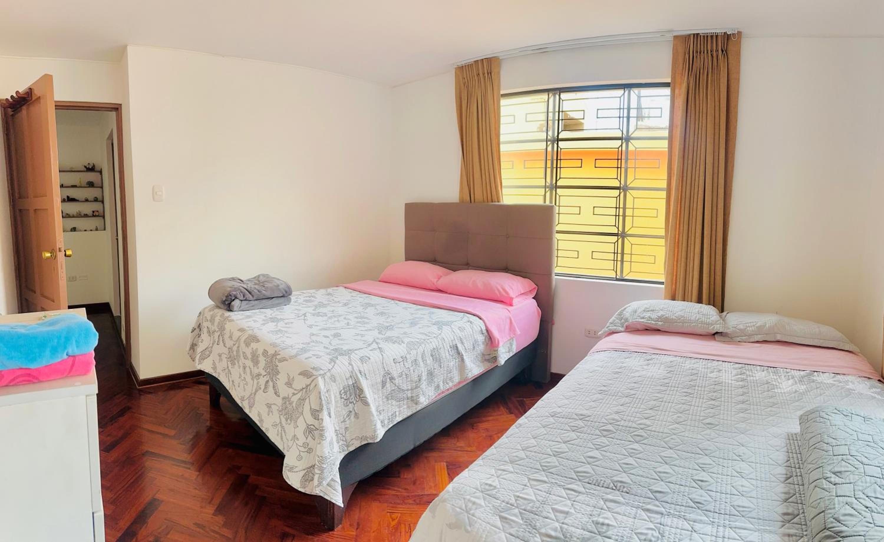 La sala muy limpia, pero la primera habitación que me pasaron estaba sucia. Con bichos secos..la segunda habitación con el baño exterior, no se podía cerrar las cortinas, y el baño compartido estaba muy sucio ( pelos, piso sucio sin secar, etc )
