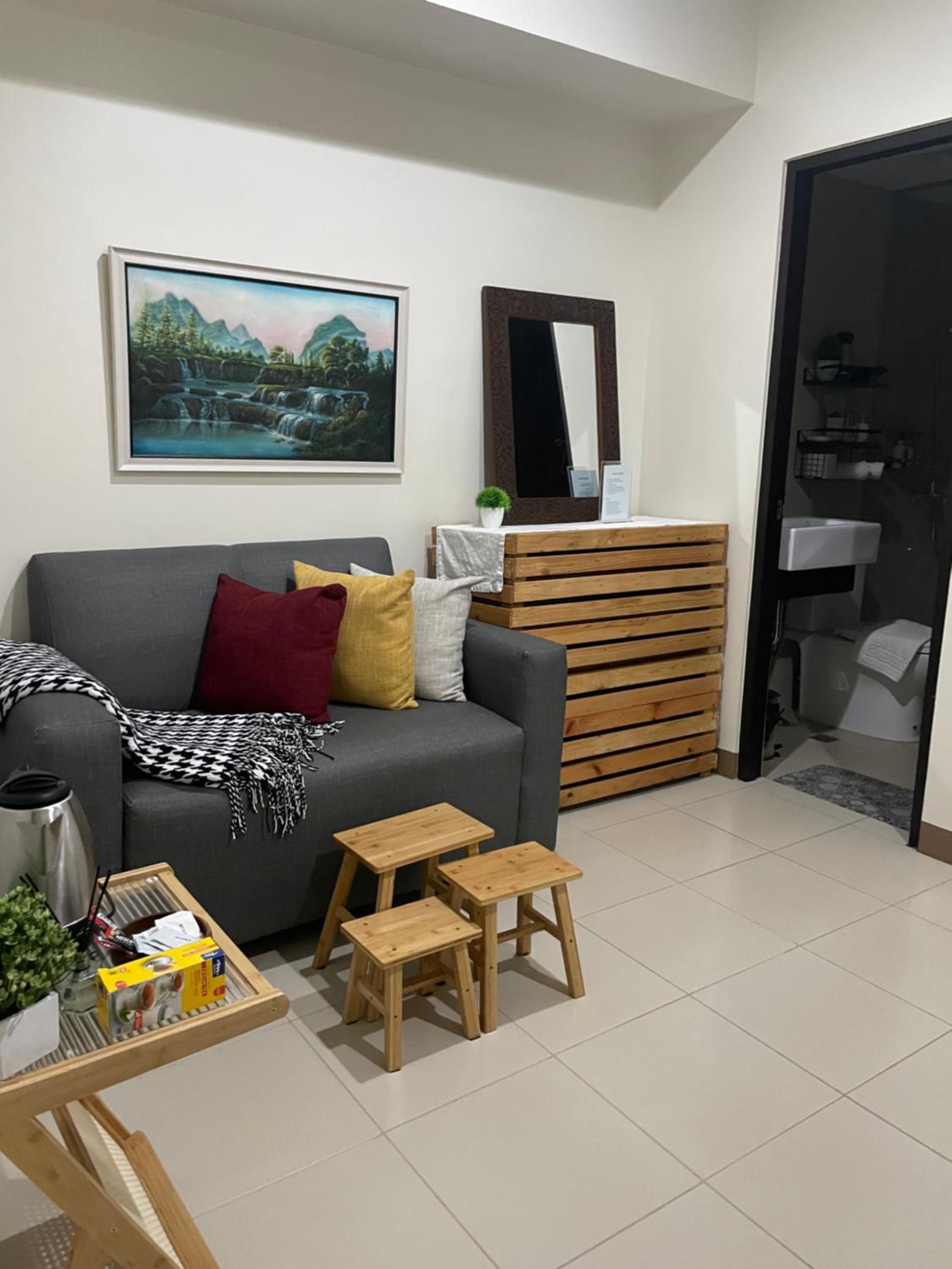 Indulge in air-conditioned comfort with a balcony, streaming services, and a fully equipped kitchen in our 2-bedroom condo near ICC Megaworld.