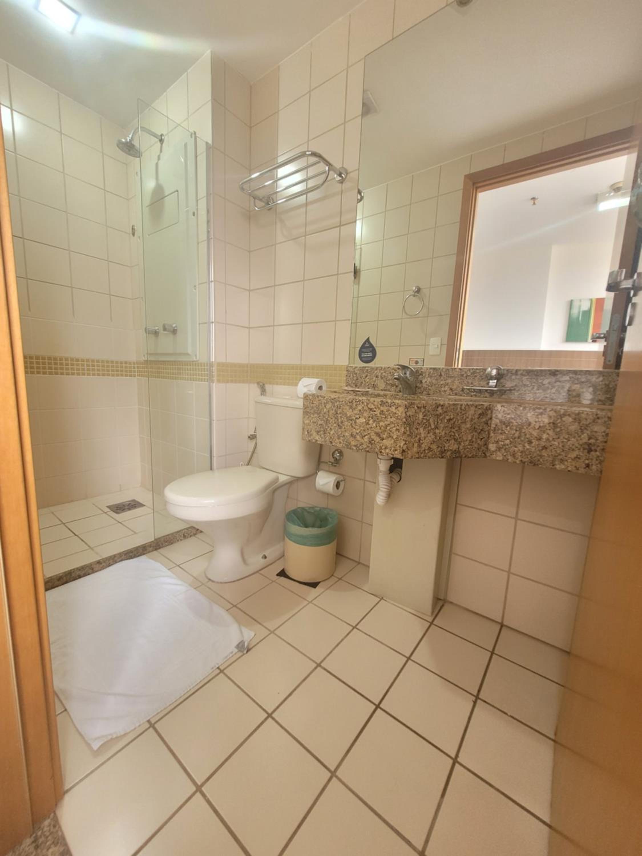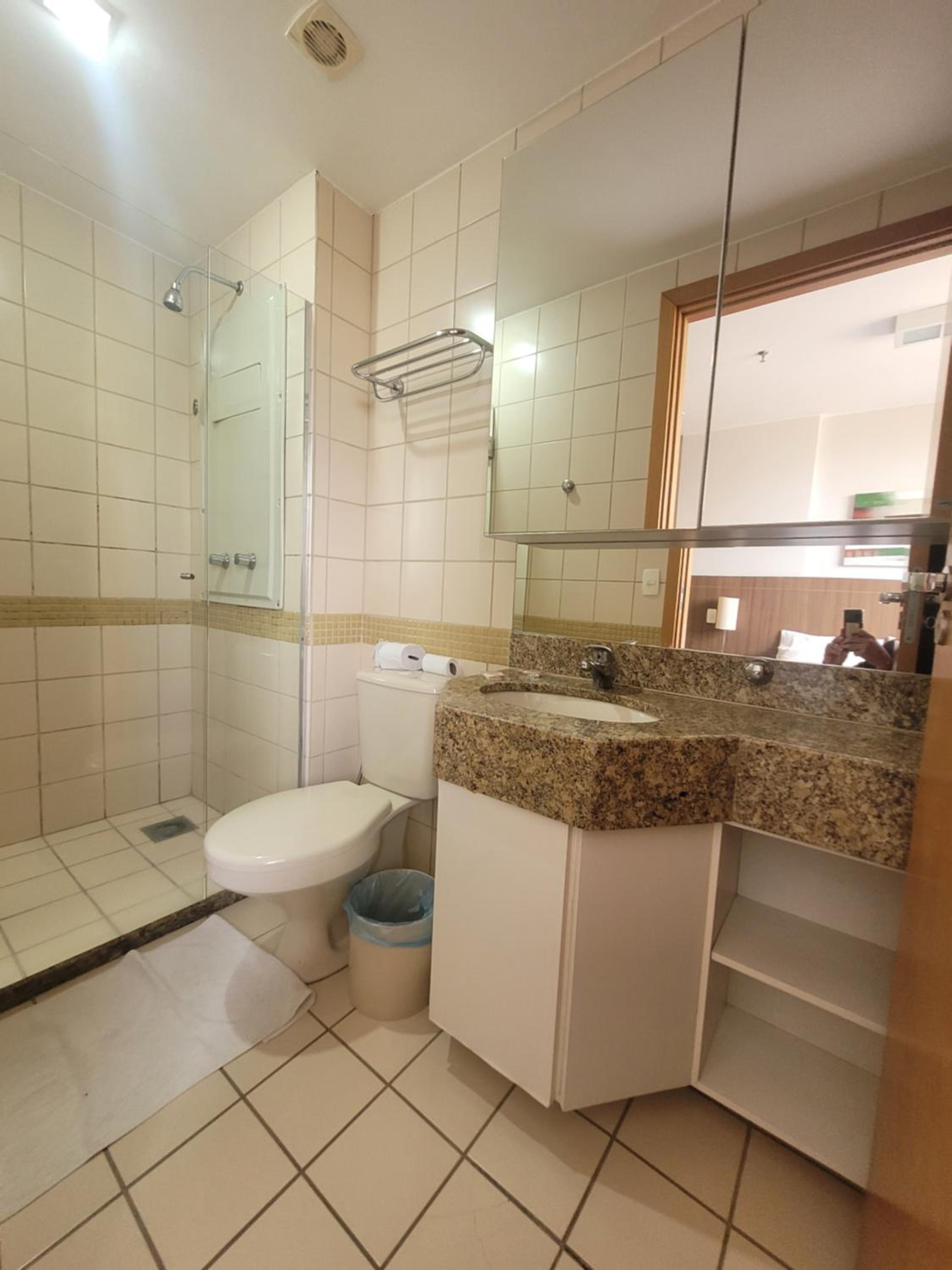 A localização era muito boa. Distribuição do quarto também. Espaço atendeu as expectativas.