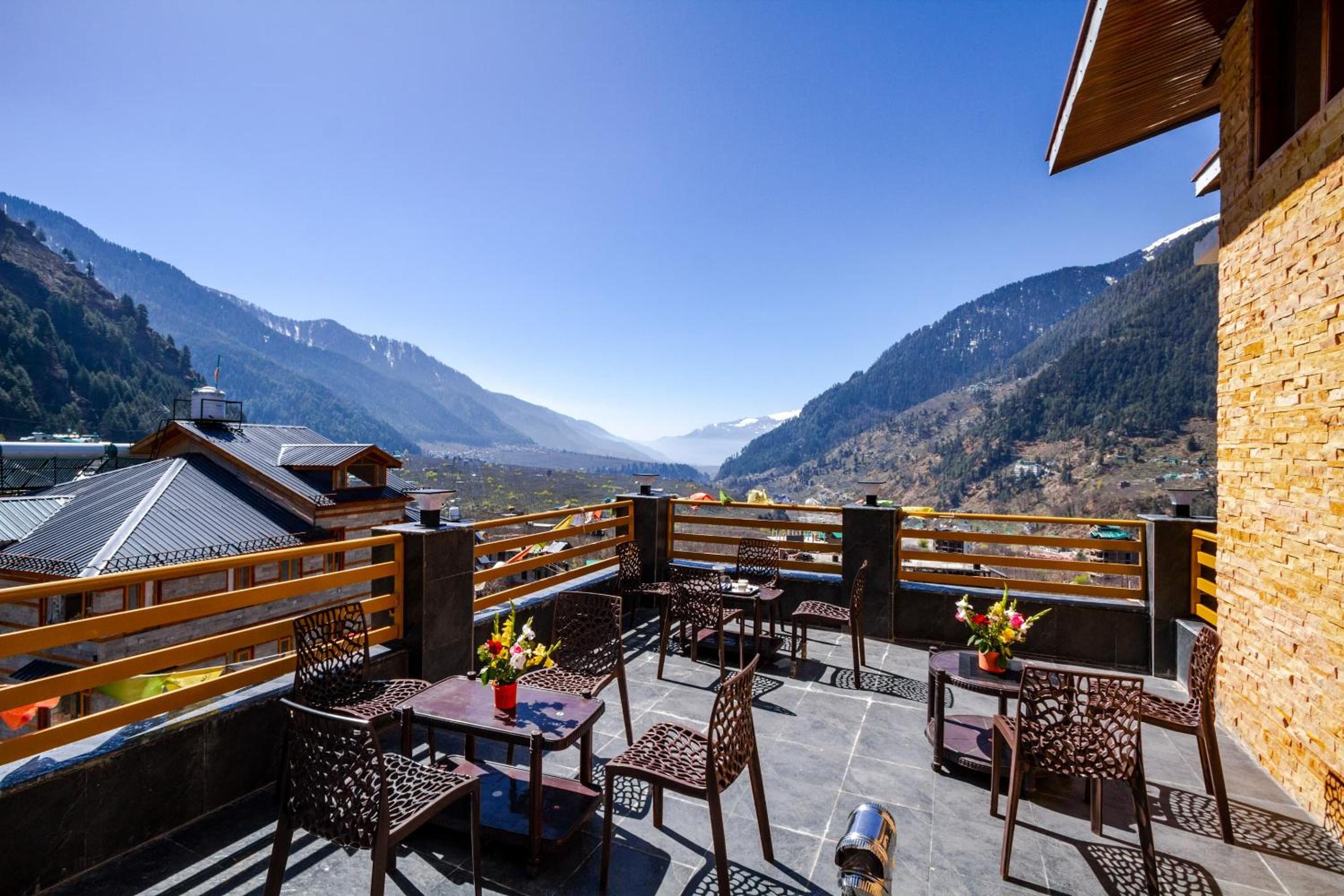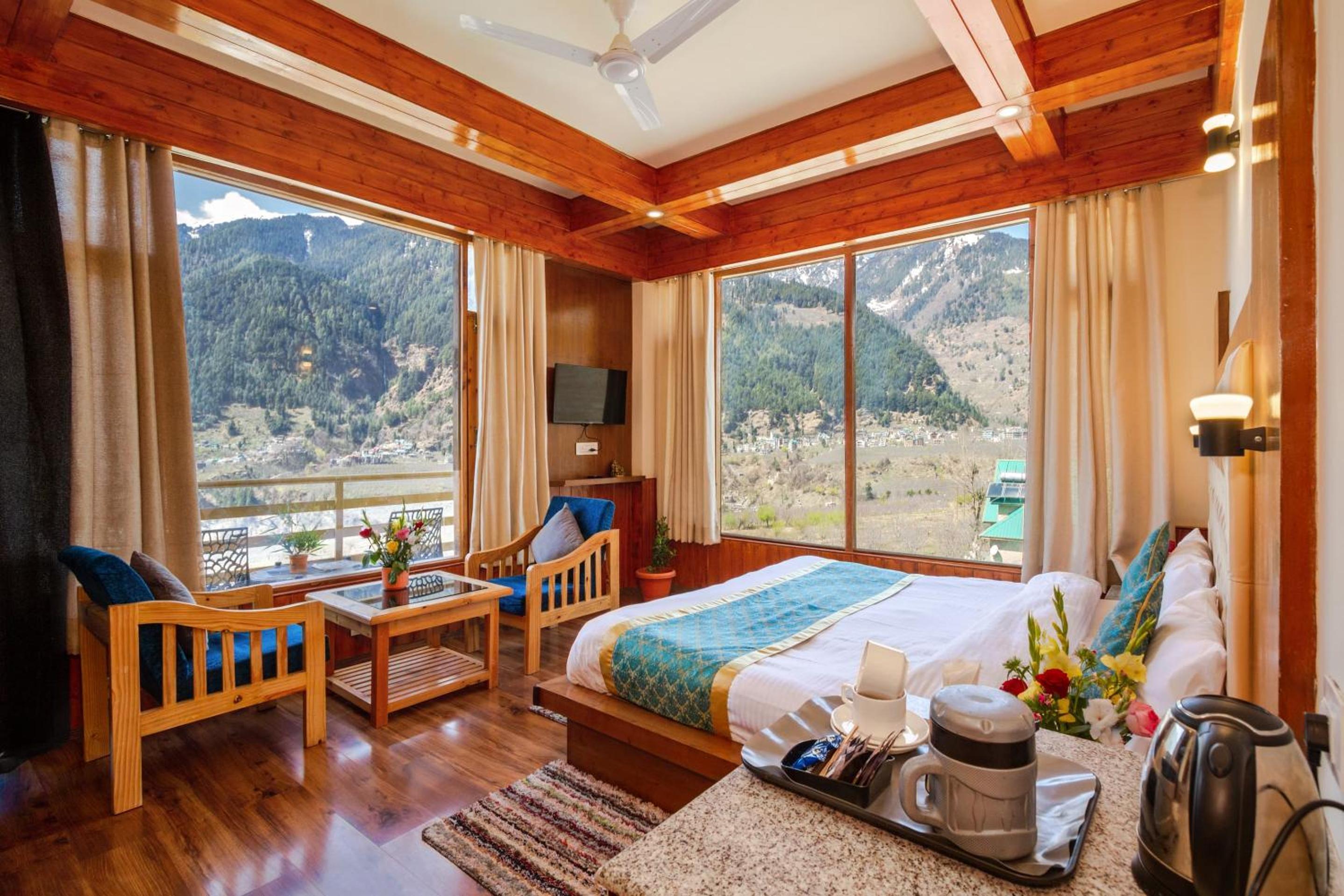 Indulge in the picturesque scenery from your private balcony at La Kailasha Regency - Mountain view Luxury Stay. Each room offers stunning mountain views, providing a serene backdrop for your stay.