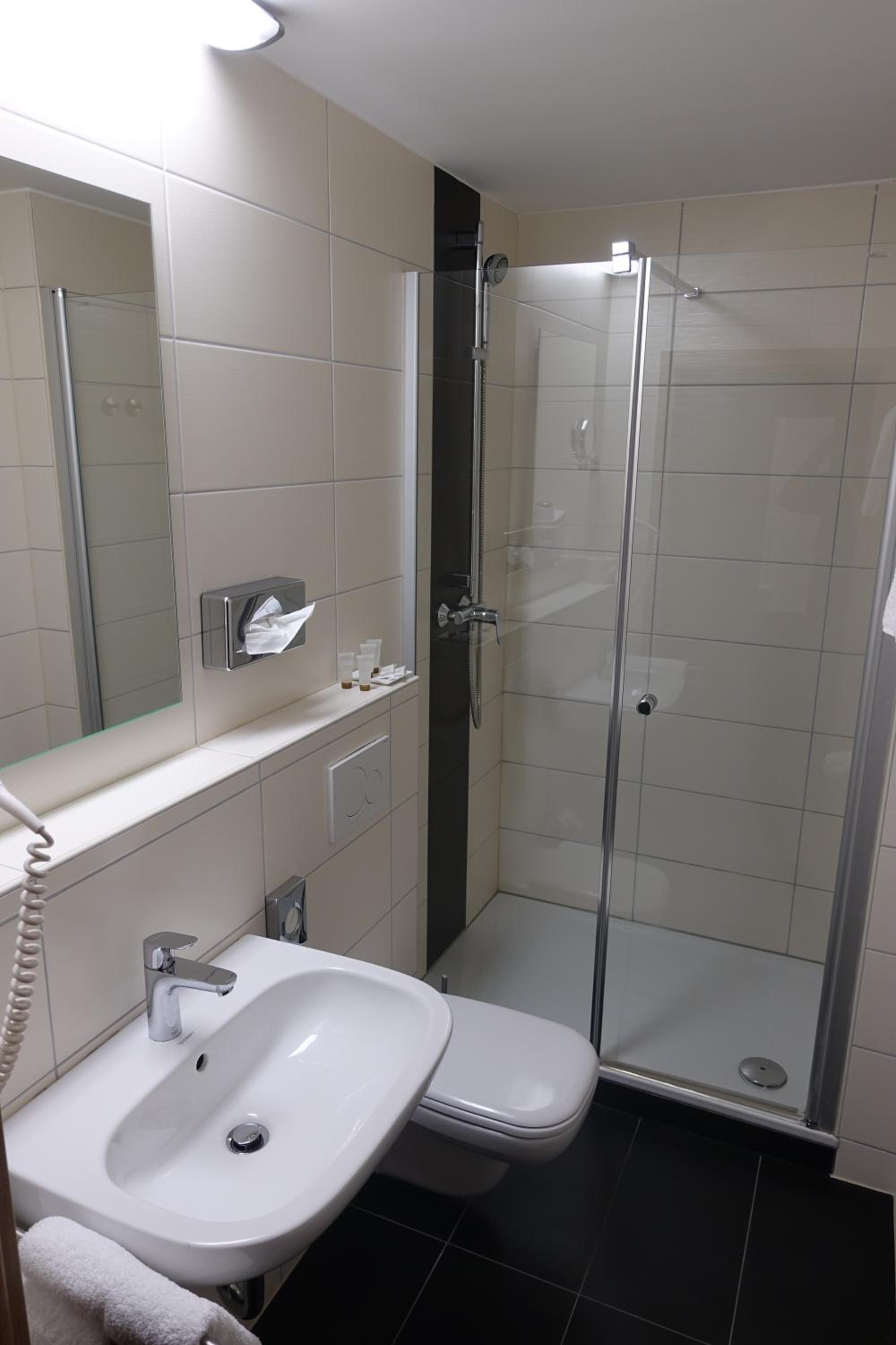 Very kind and helpfull staff. Clean and spacious rooms with kitchenette. Comfortable beds. Excellent hotel for an overnight stay on your way to or from Italy.