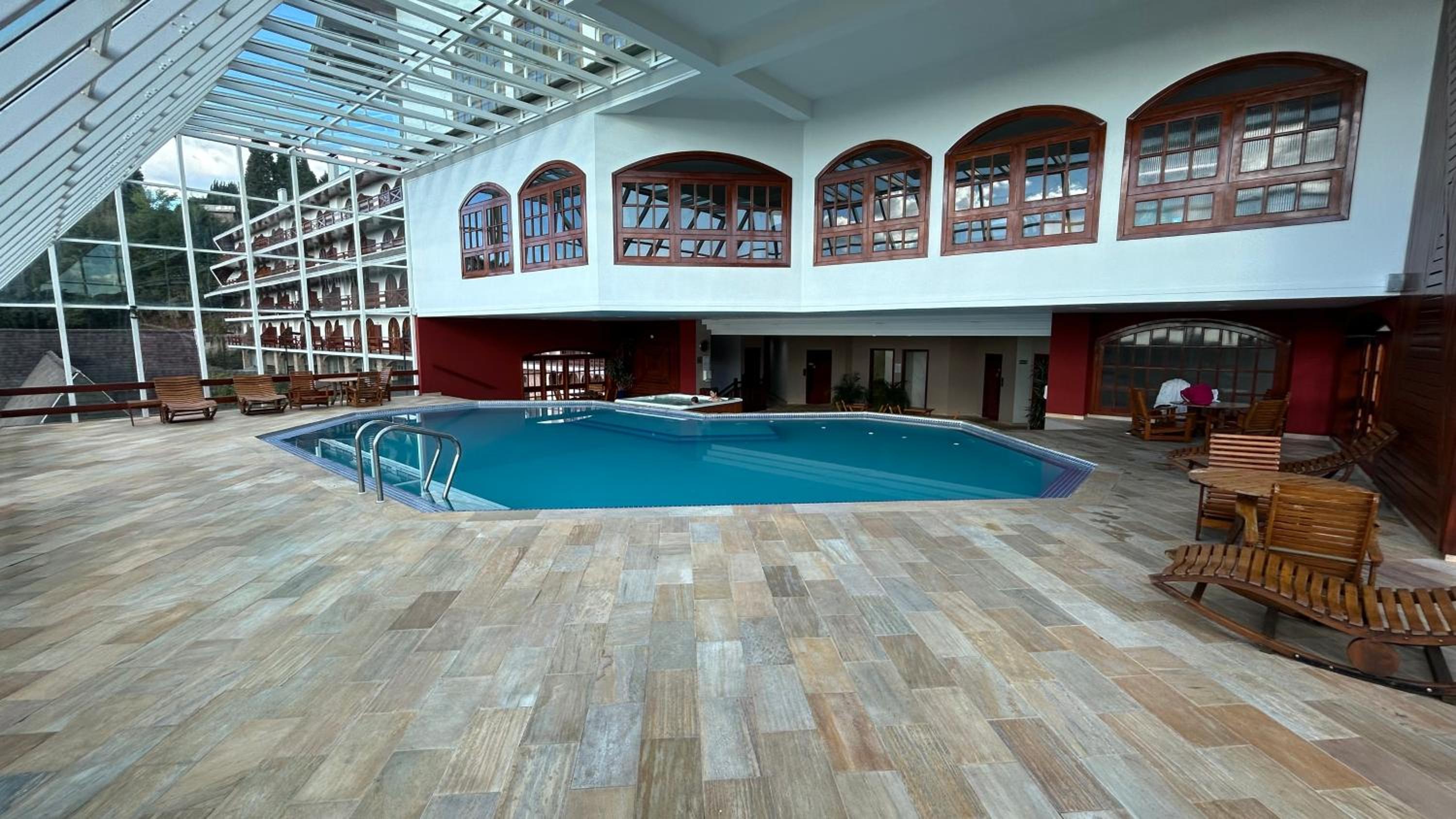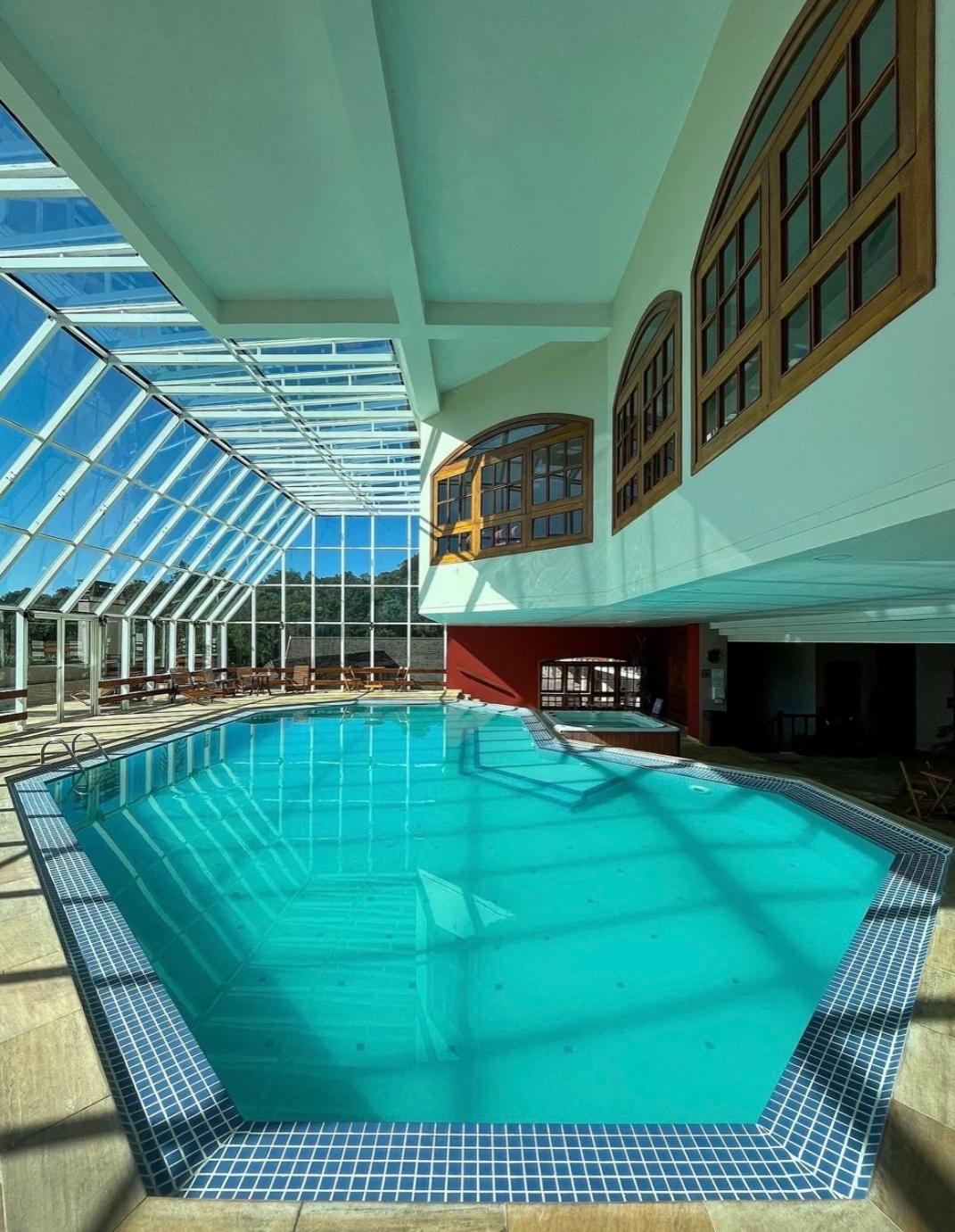 Hotel com diversas opções de lazer, piscina coberta e aquecida, hidromassagem, ofurô, sauna seca e úmida, quadras, salão de jogos, academia, sala de leitura entre outros.