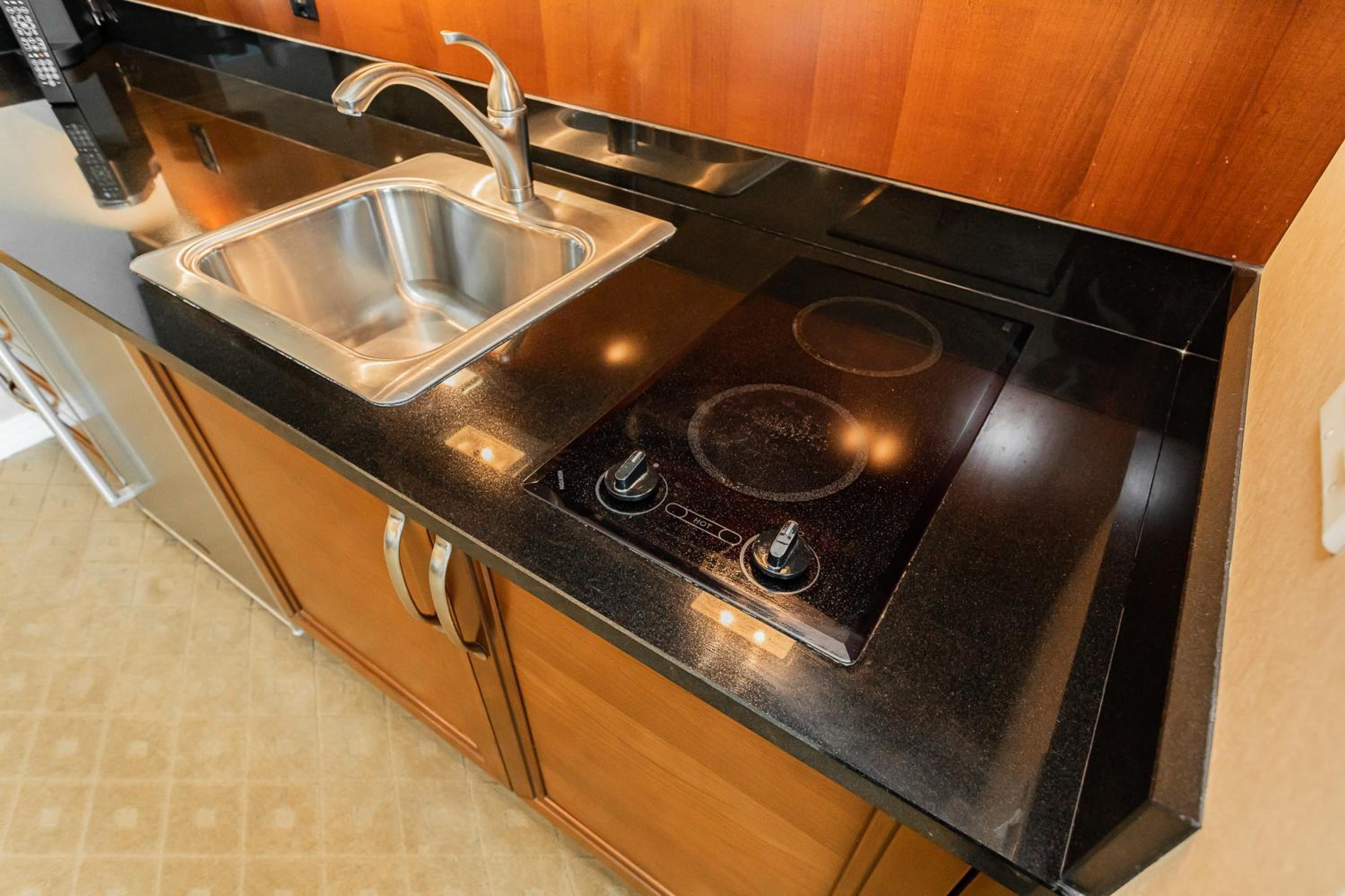 Home-like Comfort: Relax in the air-conditioned aparthotel featuring a fully equipped kitchenette, spacious seating and dining areas, and a cable flat-screen TV. Rest peacefully with plush towels and linens provided in the non-smoking accommodation.