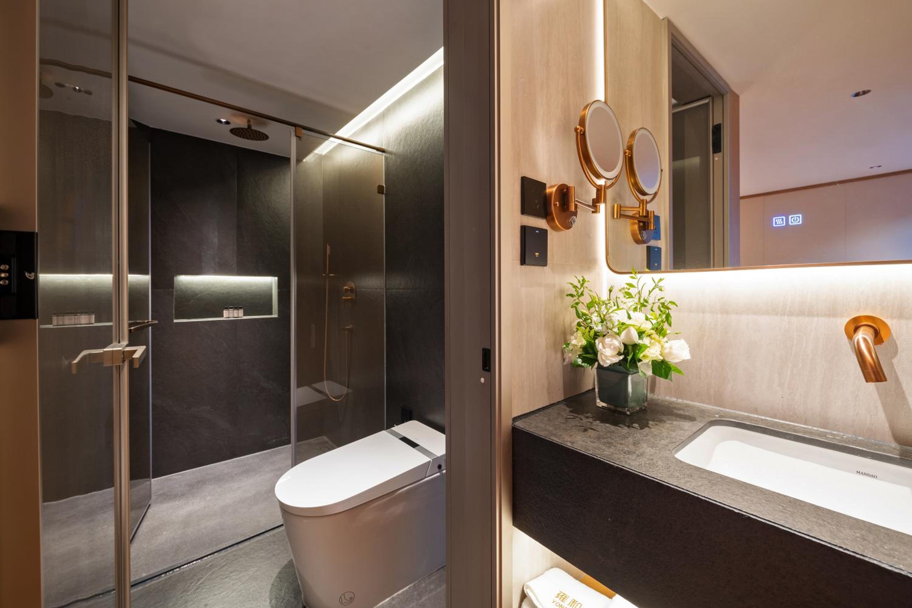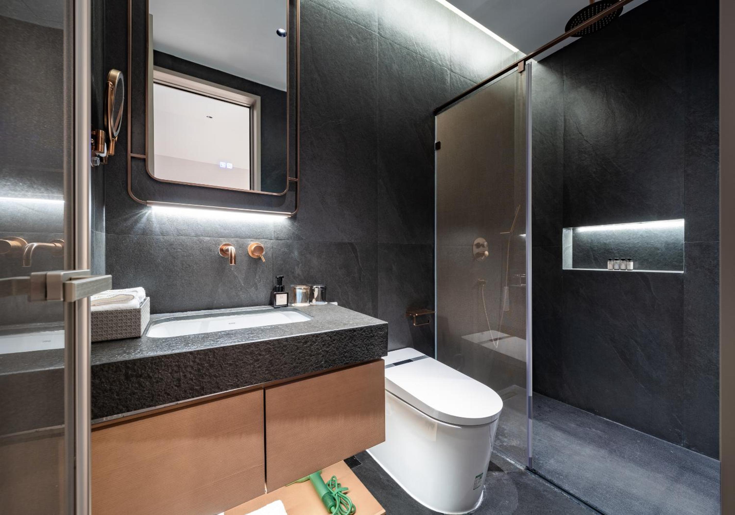 санузел просто 10/10 в душевой отдельное удовольствие, туалет со смарт фишками с подогревом и самосмывом