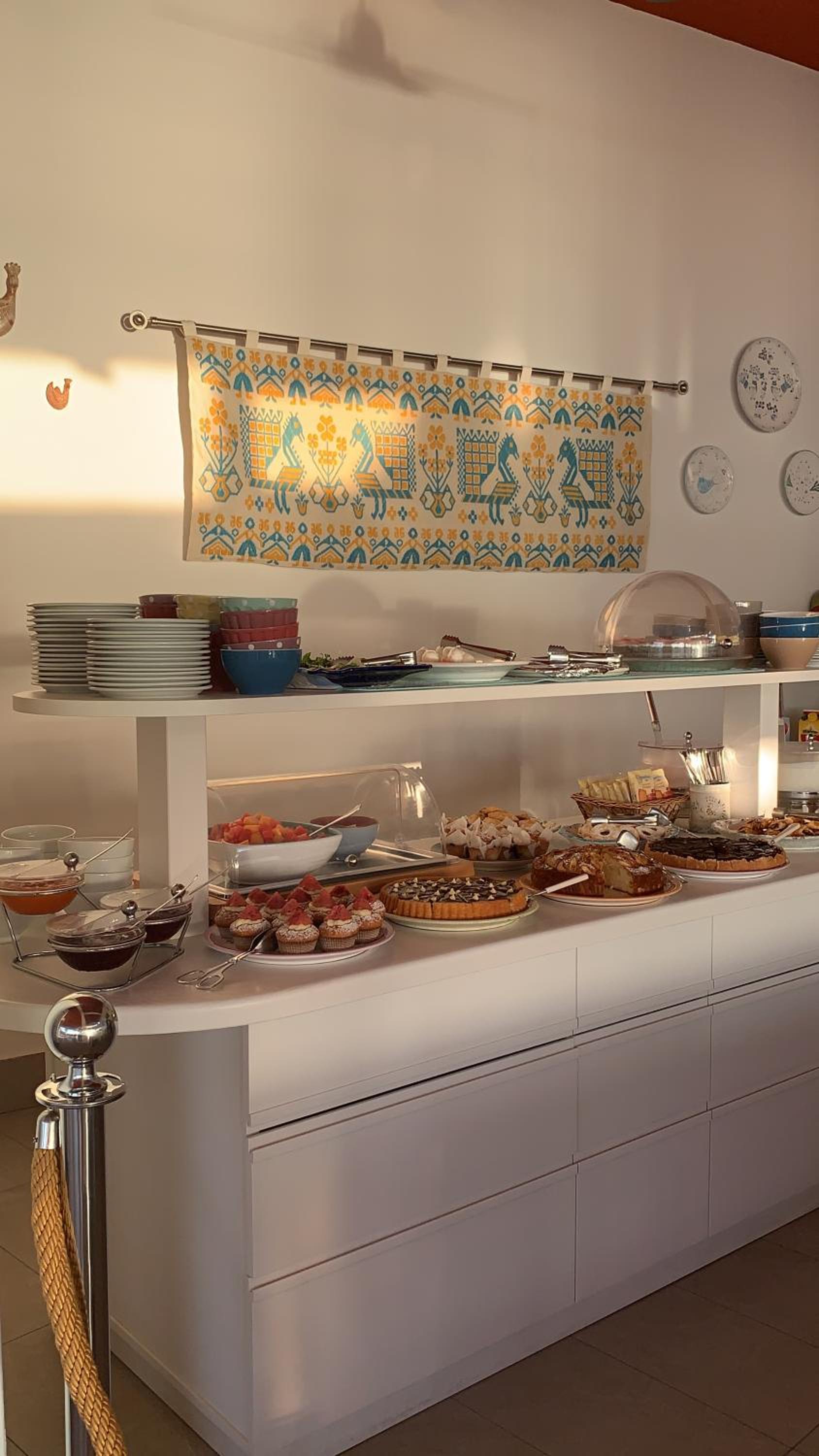 La ubicación, aunque algo alejado del puerto, al estar en alto tiene unas vistas impresionantes. El desayuno, abundante y variado y el trato del personal