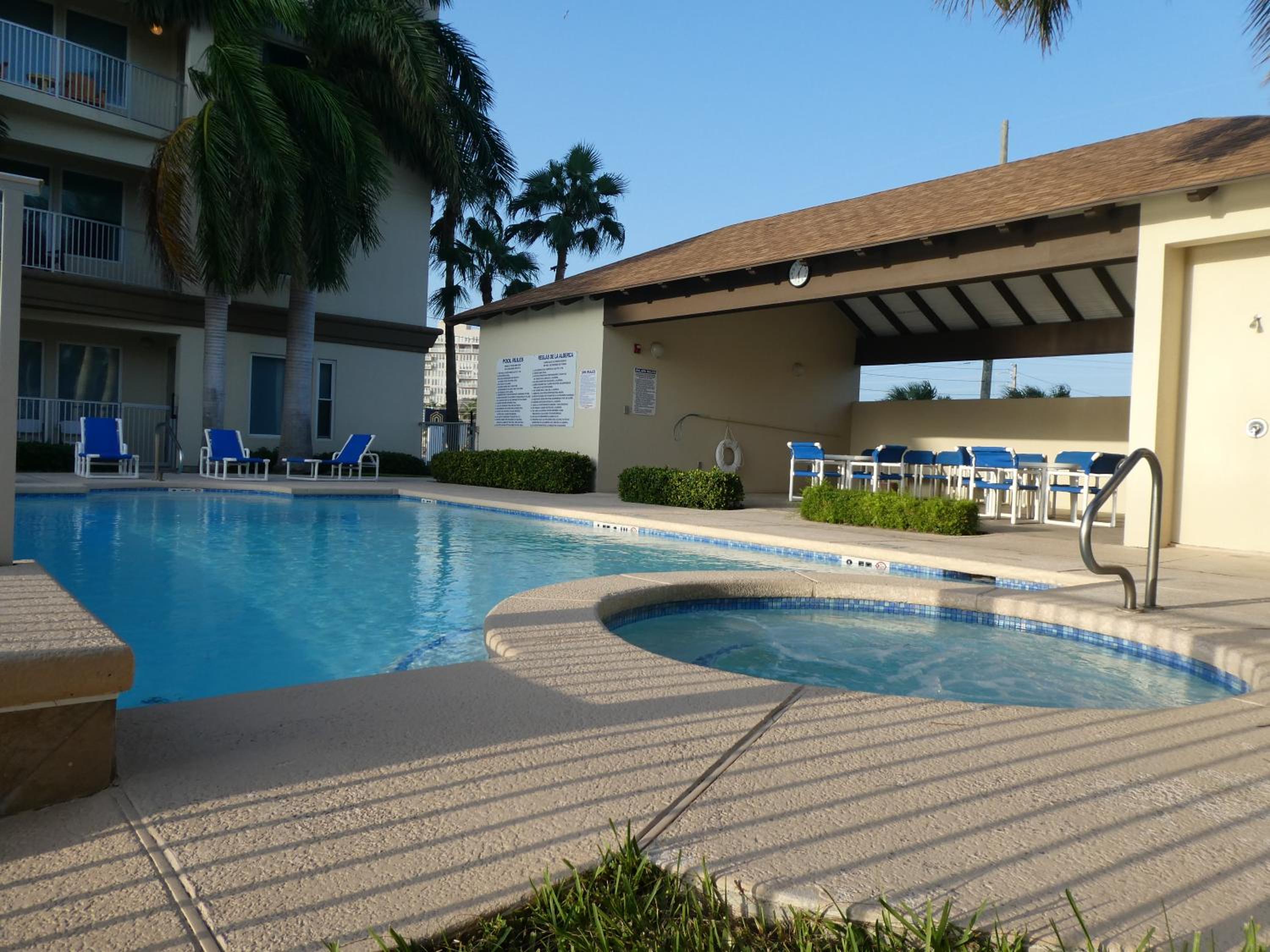 Beautiful decor. Clean. Nice location. Excellent pool & hot tub.