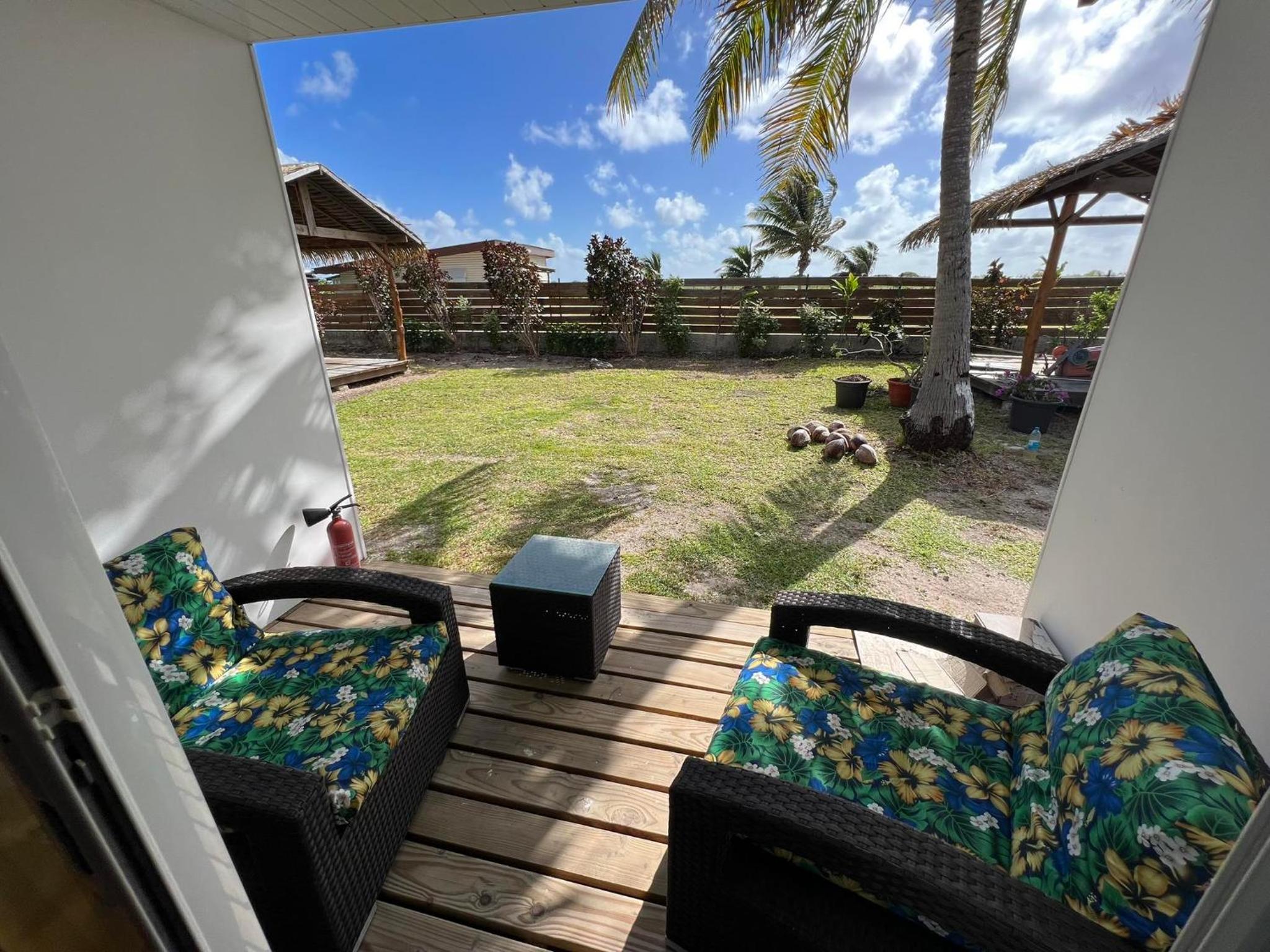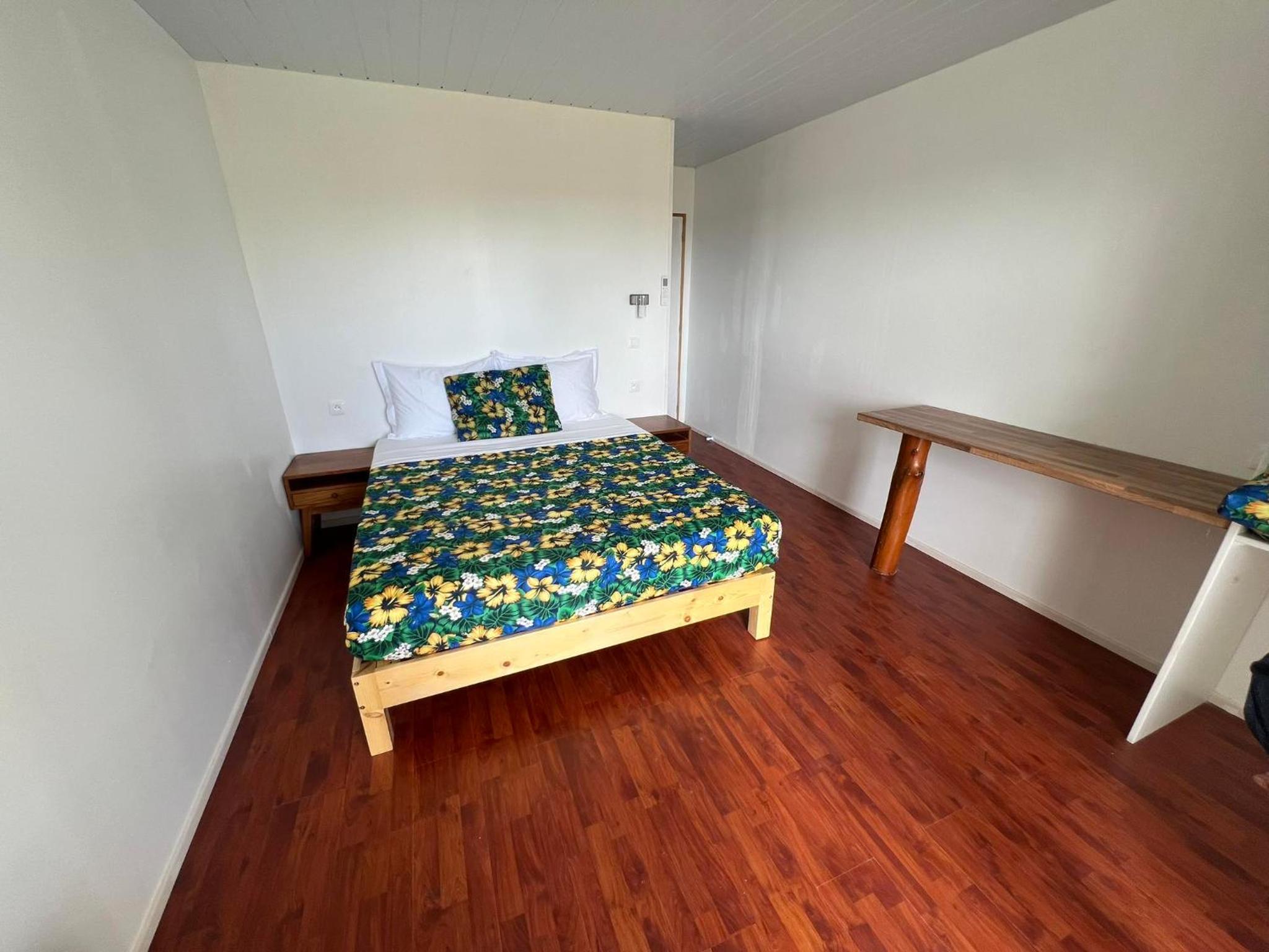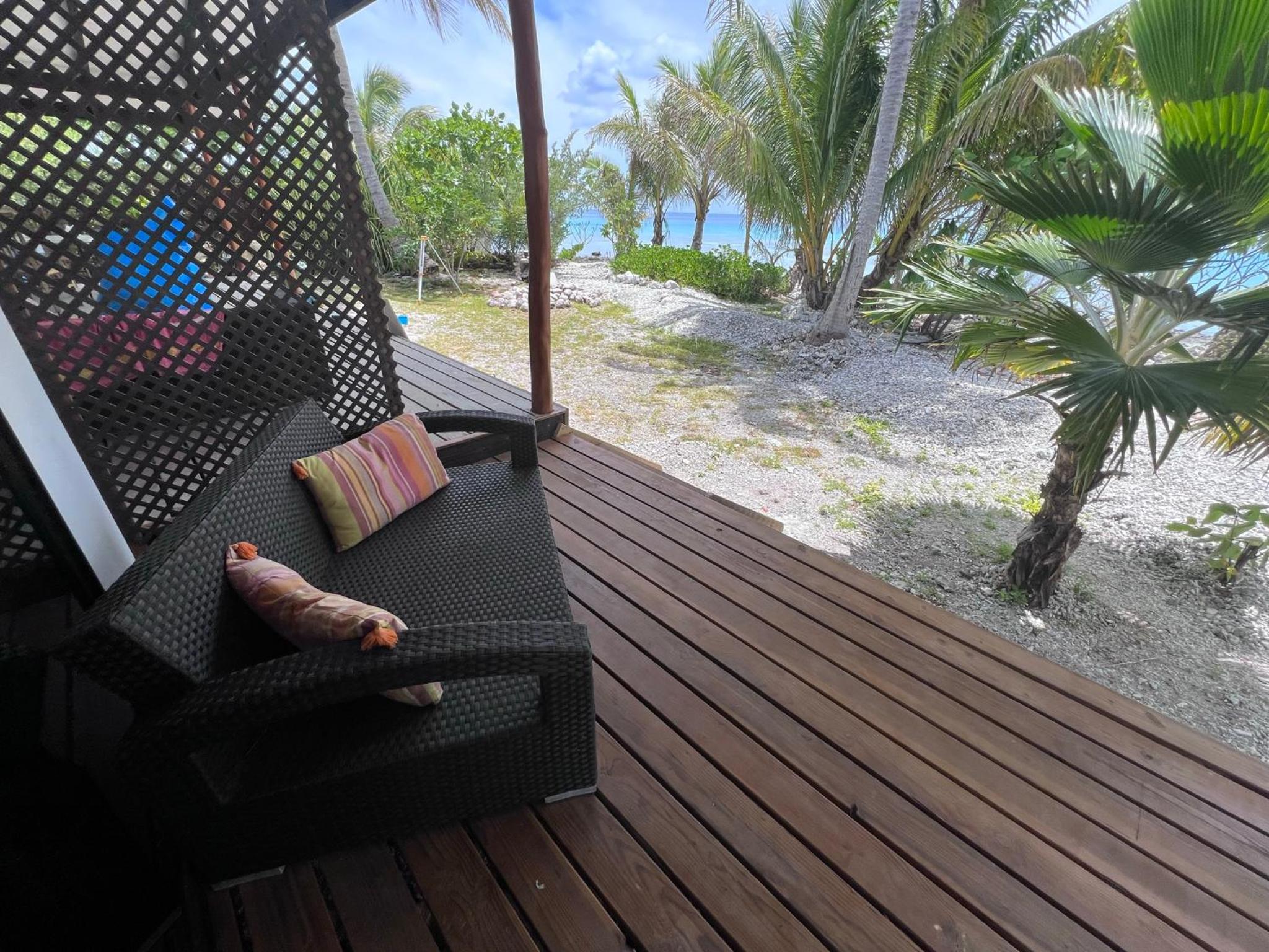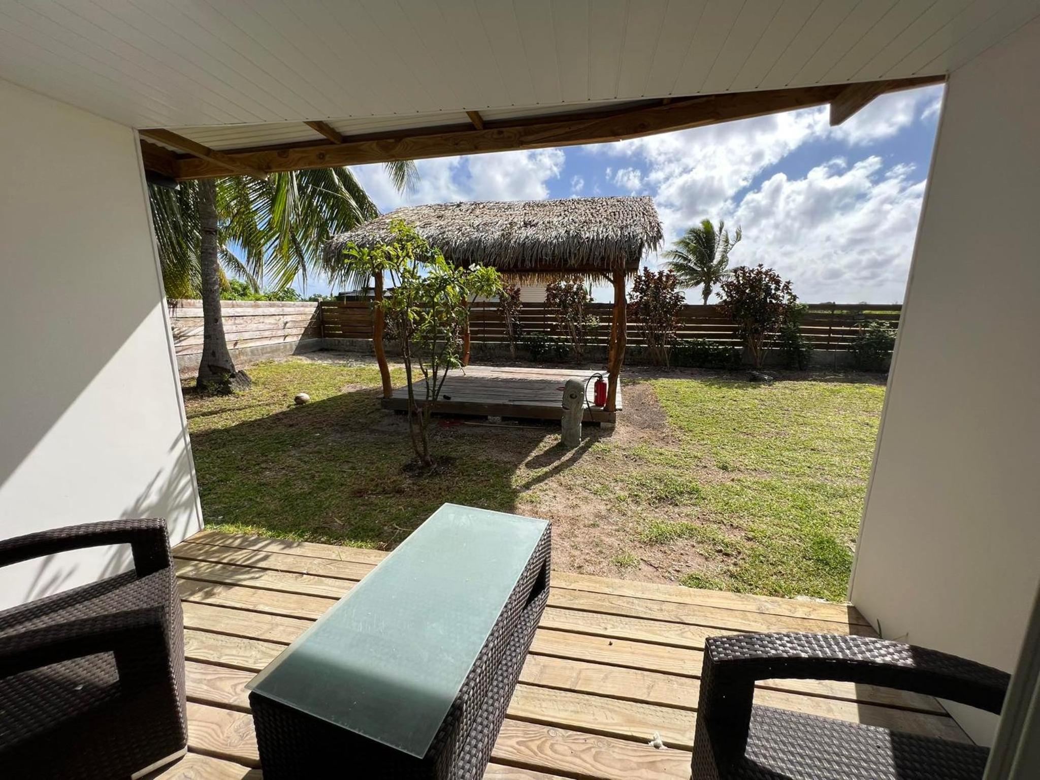 La chambre est grande et propre, avec salle de bain toute refaite. Il y a frigo, micro-onde, bouilloire, verres, assiettes, couverts.. donc pratique. La terrasse est très agréable. Il y a de quoi étendre le linge dehors. La localisation est bonne, a côté de l'aéroport, entre les deux villages Avatoru (30min vélo) et Tiputa (20min vélo). La location de vélos sur place est pratique. Transferts compris.