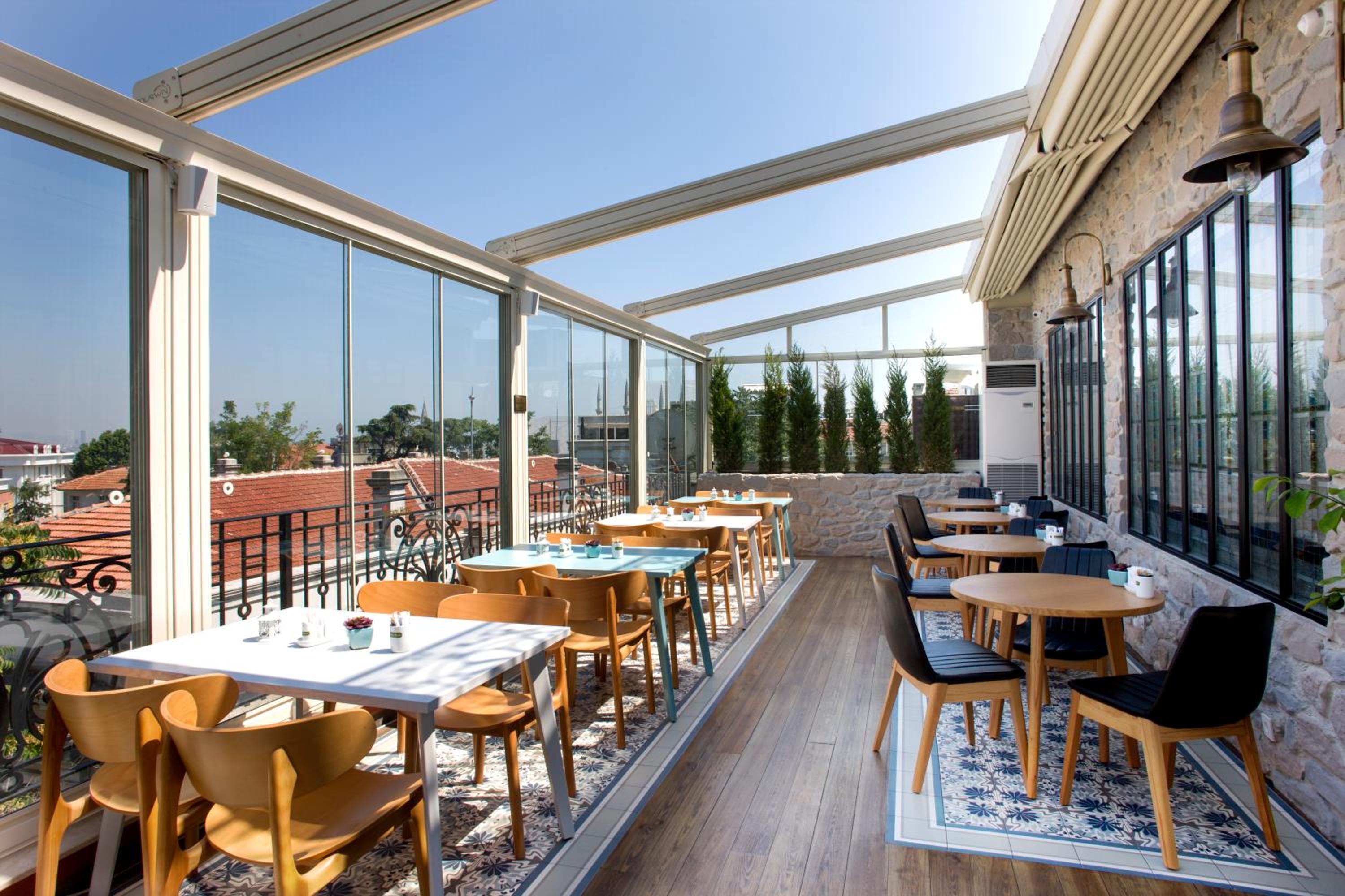 Start your day with a delicious buffet breakfast on the rooftop terrace overlooking Hagia Sophia. Gluten-free options are available, and room service allows for a private dining experience.