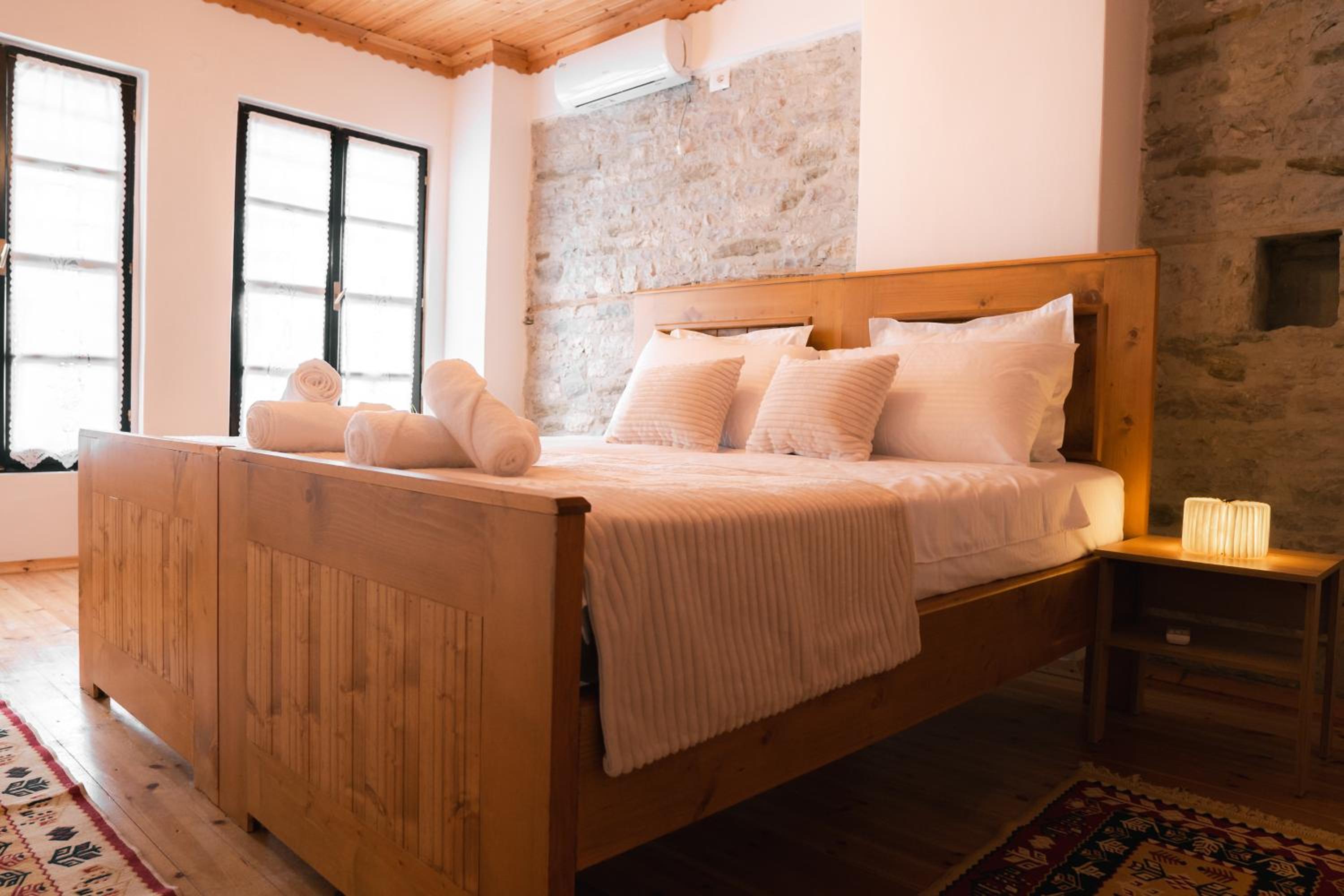 La habitación estaba muy bien decorada, muy rústica y la cama era muy grande. El personal fue amable pero no hablaban nada de inglés. Estaba cerca del centro, aunque todo Gjirokaster sean cuestas muy pronunciadas. El desayuno estaba rico.