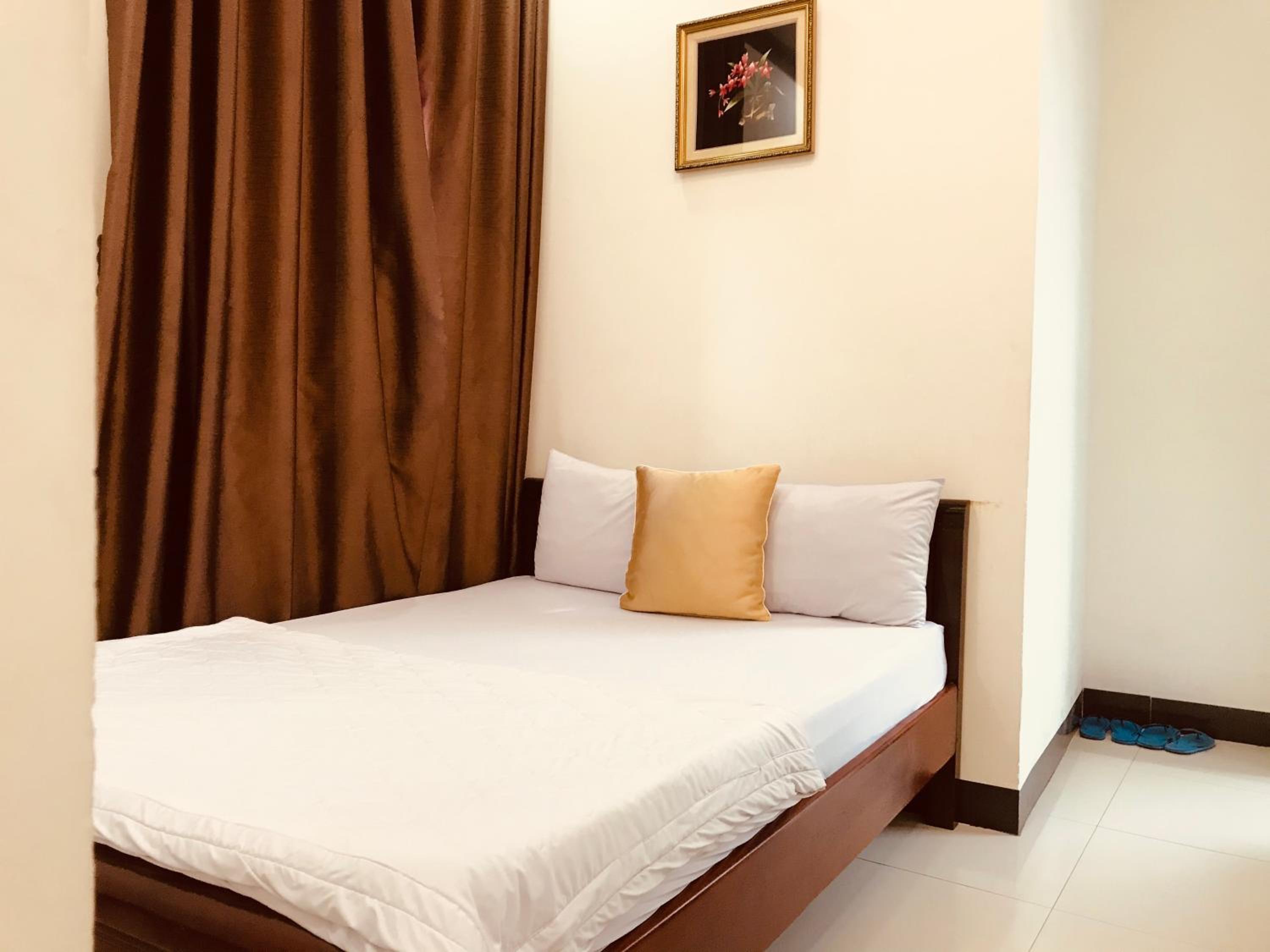 Phòng khá nhỏ. Không có ấm siêu tốc, không có tủ đầu giường, không có két sắt, không có công tắc và ổ cắm đầu giường, không có nước chai, không có trà và cafe pha sẵn, không có mì ly, chỉ có một thùng rác duy nhất trong WC. WC không có bậc cao ngăn nước tràn ra ngoài nên nước bị tràn ra ngoài rất nhiều khi tắm, không có thanh ngang để treo khăn tắm khi dùng xong. Sàn phòng tắm khá trơn hơi nguy hiểm. Nên cung cấp thêm khăn lau mặt cho khách.