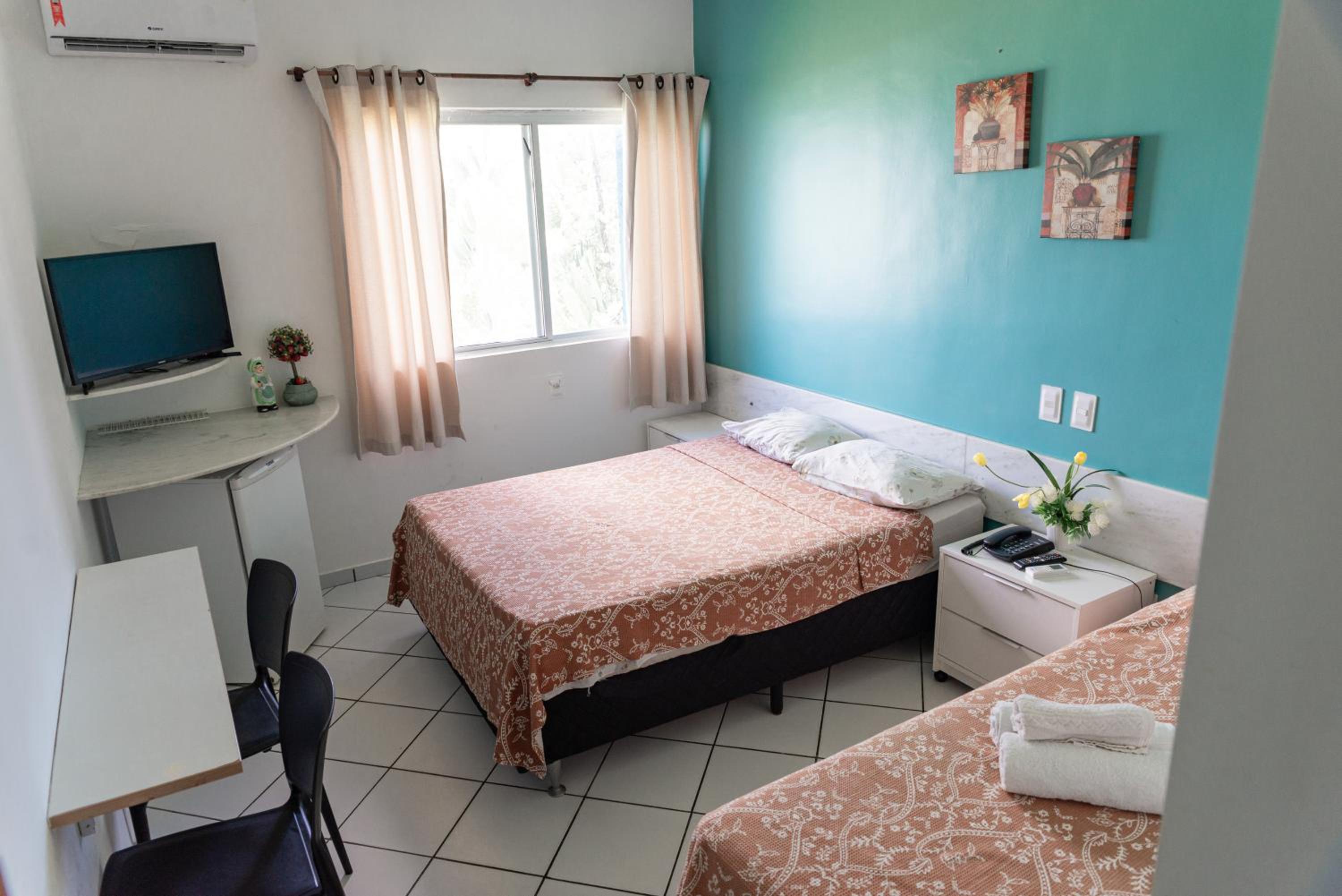 Quartos minúsculos e funcionários grossos e mal educados, estacionamento rotativo dificilmente tinha vaga