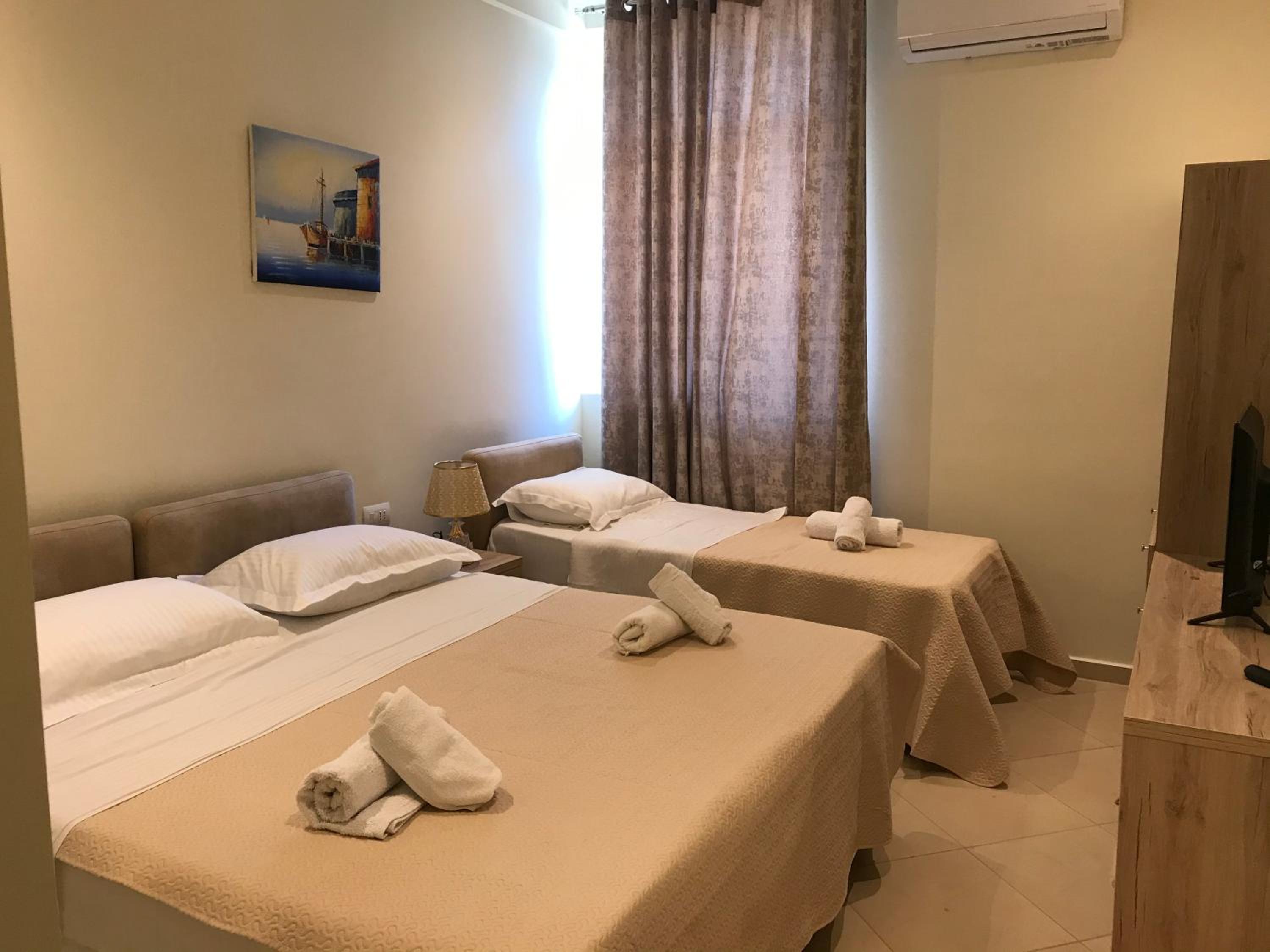 Lovely room and friendly staff. Deni helped us check in at 2am because we could only make the 10pm bus from Saranda. Good location - not too far from the beaches and main parts of Saranda. Affordable and decent sized room. Clean as well.