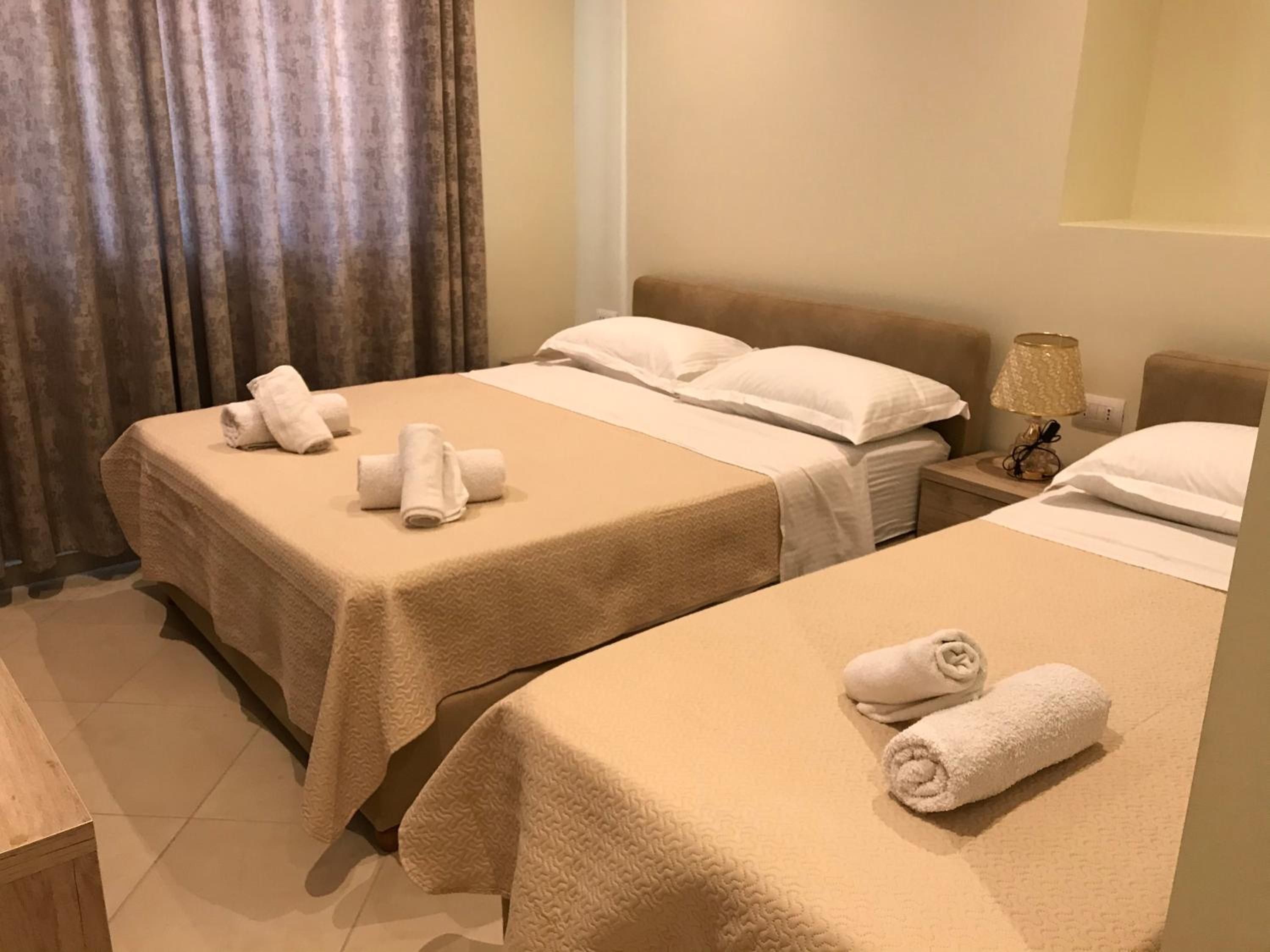 Piccolino a conduzione familiare, a 5 minuti a piedi dal porto per Corfù e dalla passeggiata serale. Il papà, tutto fare, gentile, accogliente e sempre disponibile a qualsiasi richiesta per informazioni e consigli. Ci ha indirizzato ad una spiaggia di Ksamil ed ad un locale per mangiare pesce con ottimi risultati. Non manca mai l'offerta del caffè e della bottiglietta d'acqua per sopperire, forse, alla mancanza della colazione.