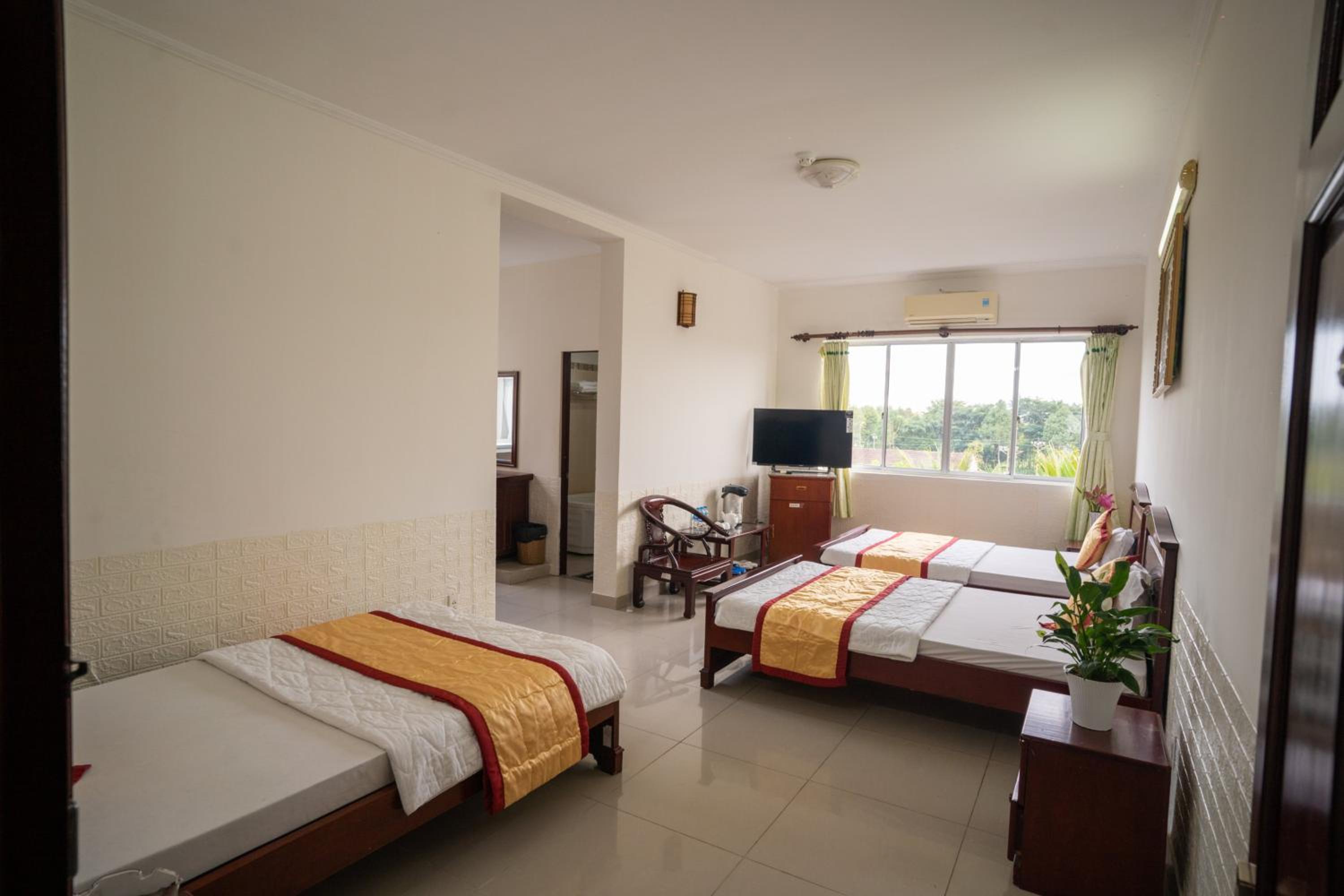 Each room at Khách Sạn Bông Sen is thoughtfully designed with air conditioning, a desk, and a private bathroom. Guests can enjoy city views from the terrace, relax with a flat-screen TV, and rest peacefully with quality bed linen and towels. Some rooms even offer pool views and a balcony for added luxury.