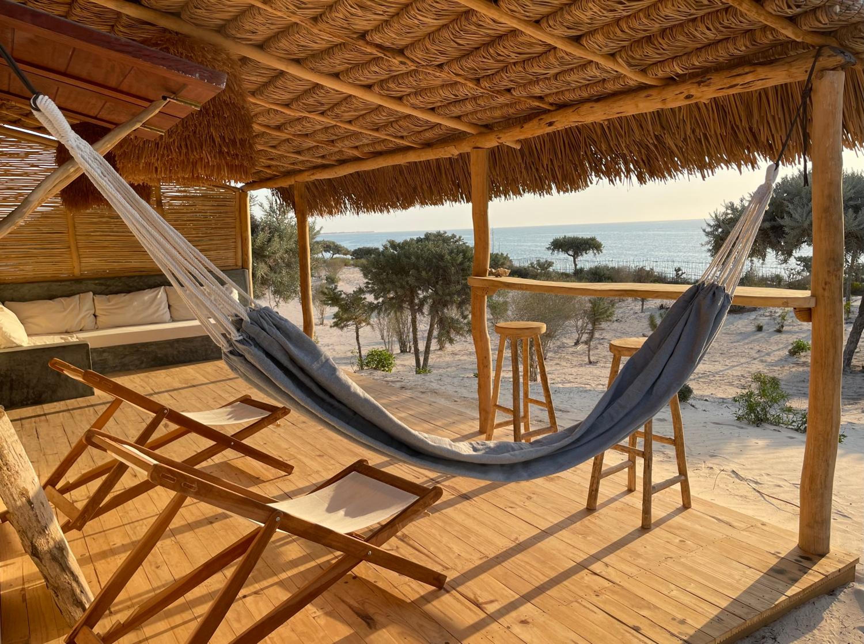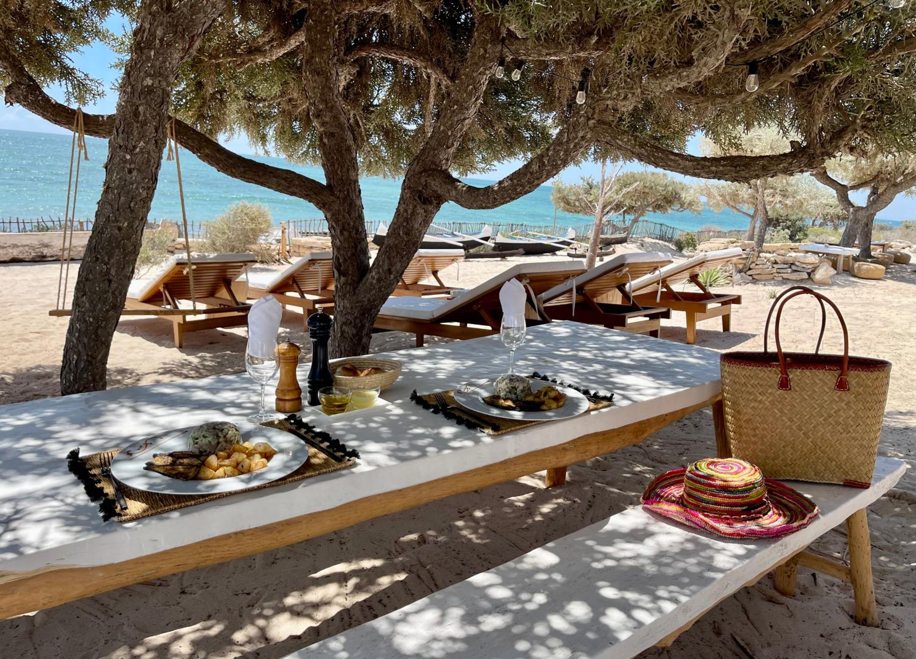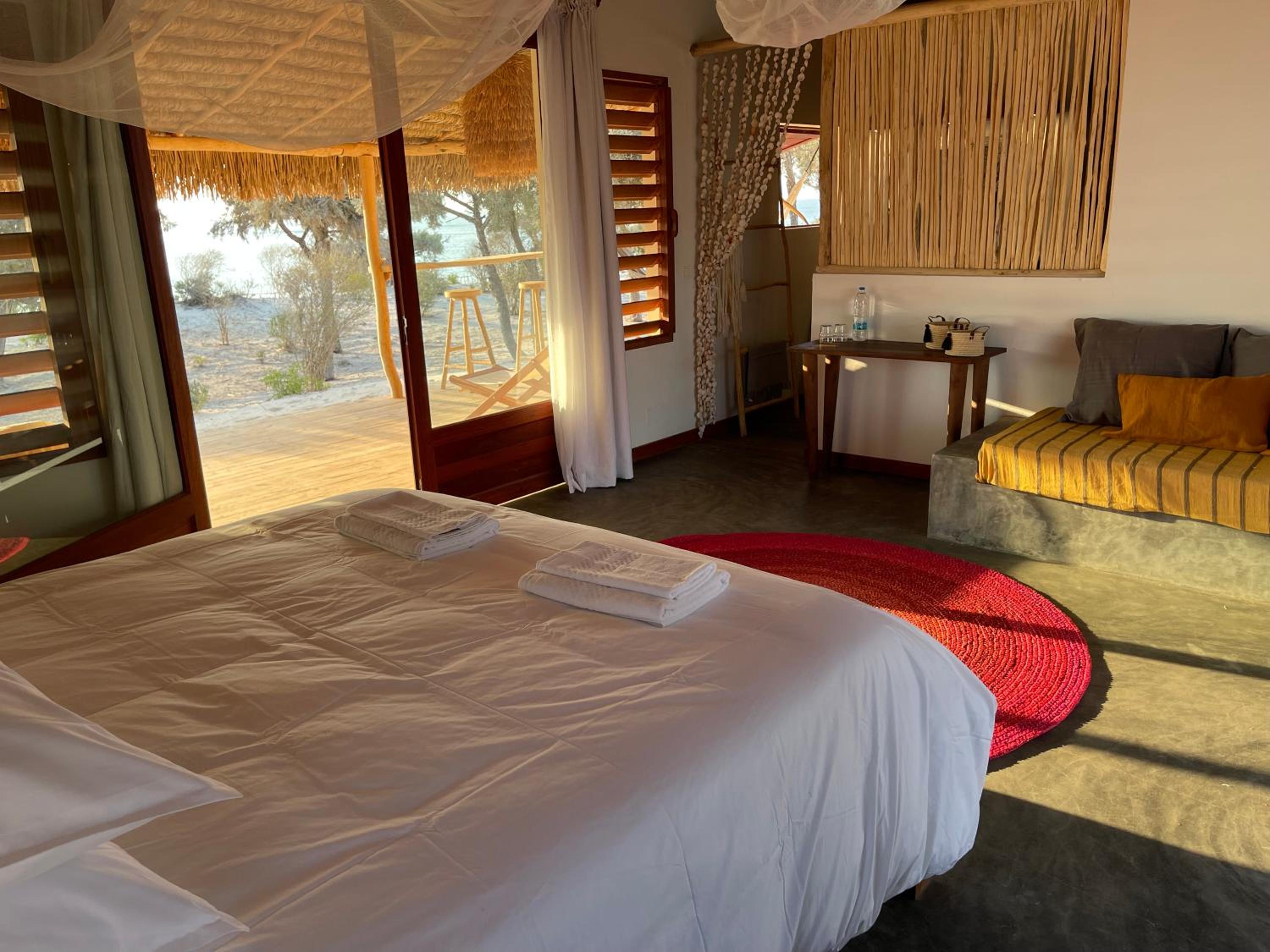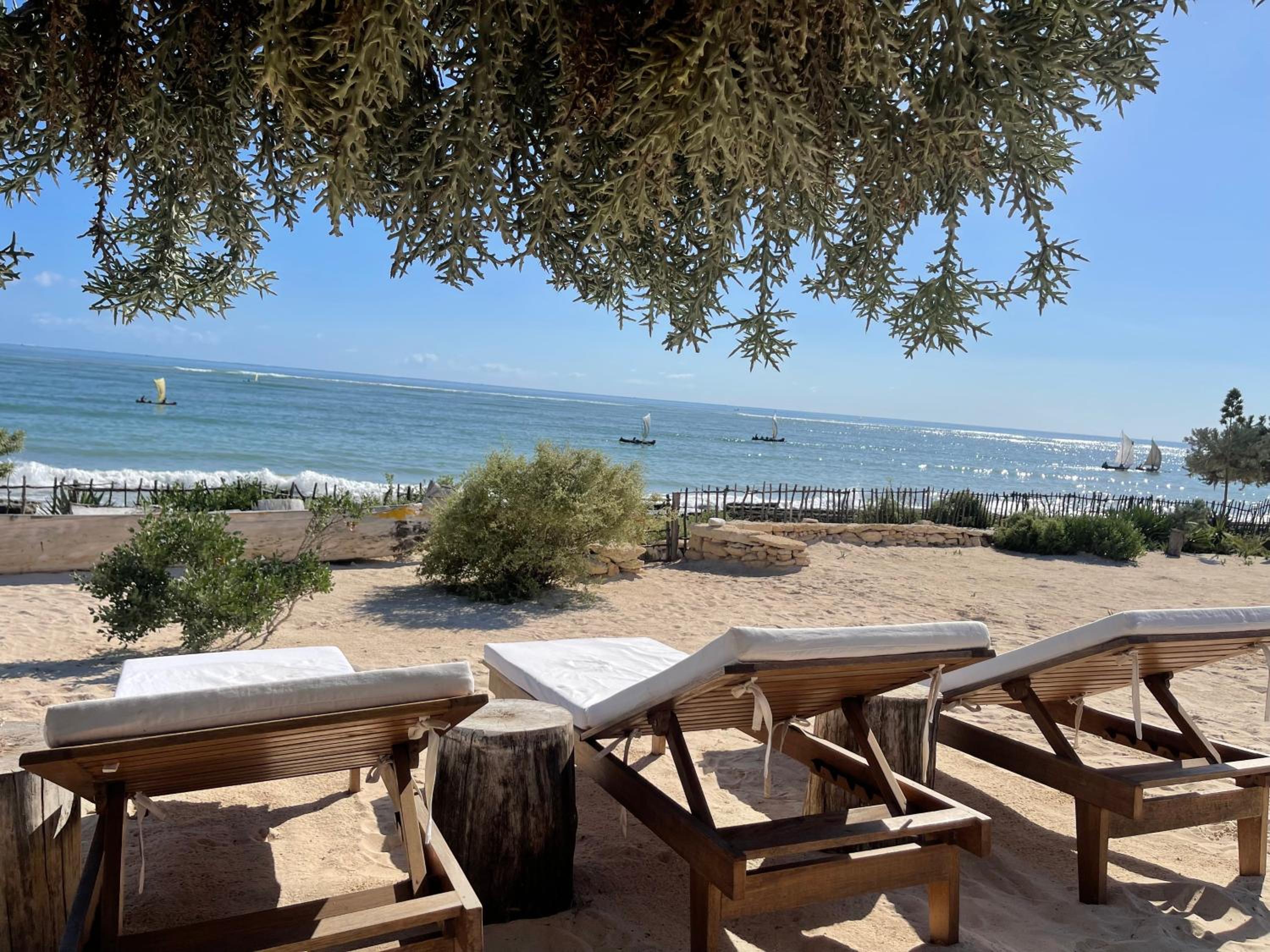 This is the best place to stay in Anakao. Unlike many travellers, we were coming not after long auto trip from Antananarivo, flying to Toliara instead. So we were not tired and open to everything. This place has amazing relaxing vibe, with everything very well-thought and designed to bring privacy, tranquility and sense of being at the immaculate nature beach part of Madagascar. The other properties at Anakao are too close to the boat arriving site and local village that is very nice to visit and might be eat/drink at local restaurants, but missing the real beach feeling. La Dune des Songes is 20 mins walk away from all that, with the porter guys carrying your luggage. Sea view and sound of waves is just great to get that tropic feeling, the beachfront villa where we were staying in was very comfortable, clean and beautiful. You can see both sunset (sea view) and sunrise (bush view) from your villa, choosing between sofa, hammock, sun lounges or your own bar deck with bar chairs.