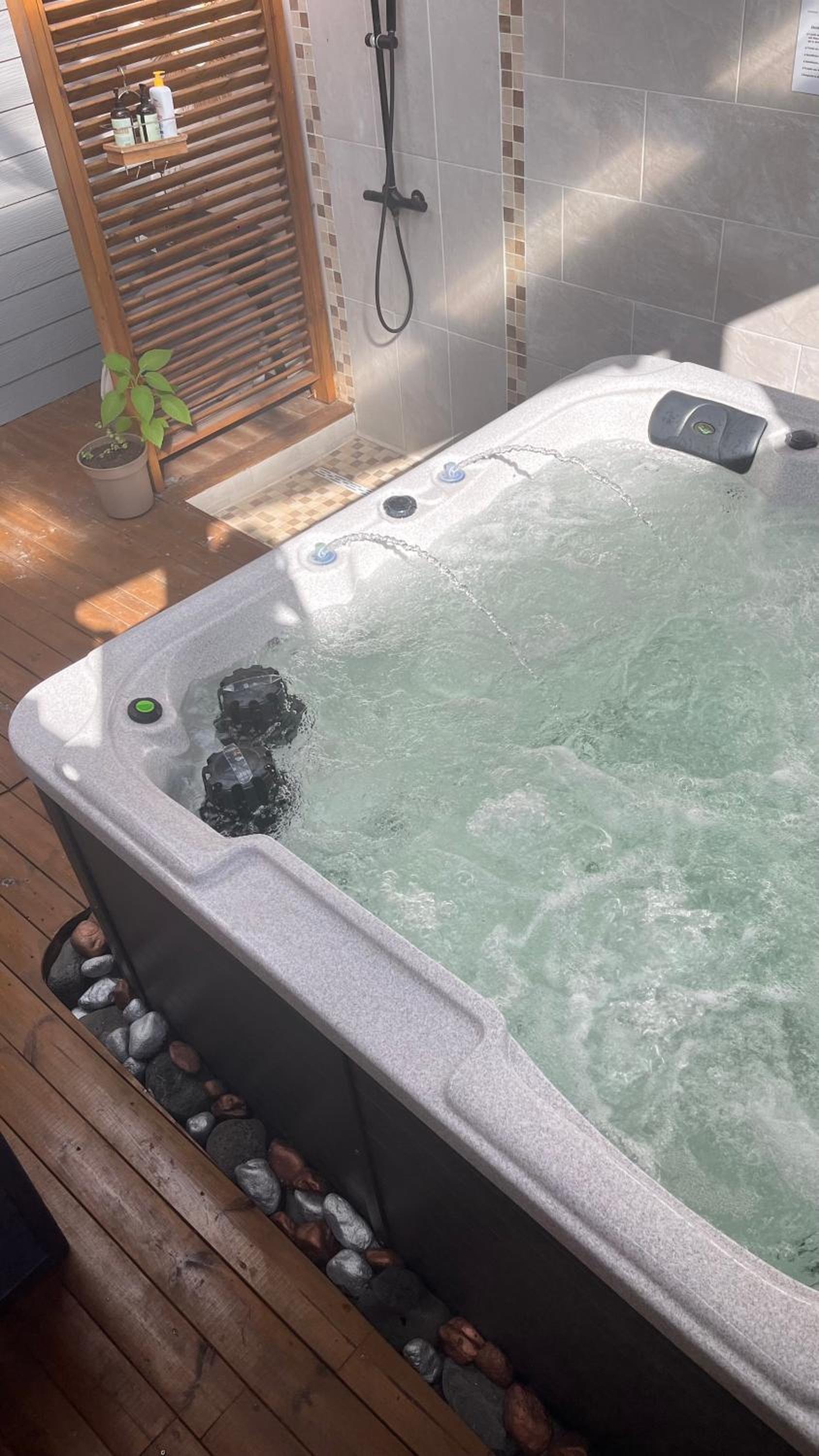 Magnifique coin spa , jaccuzi température rien a dire ,