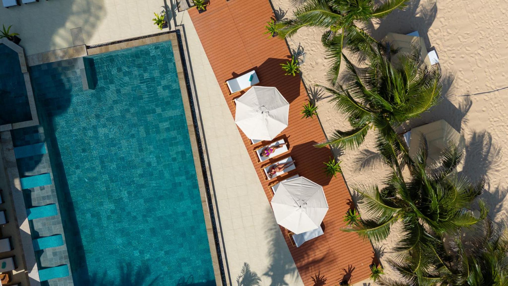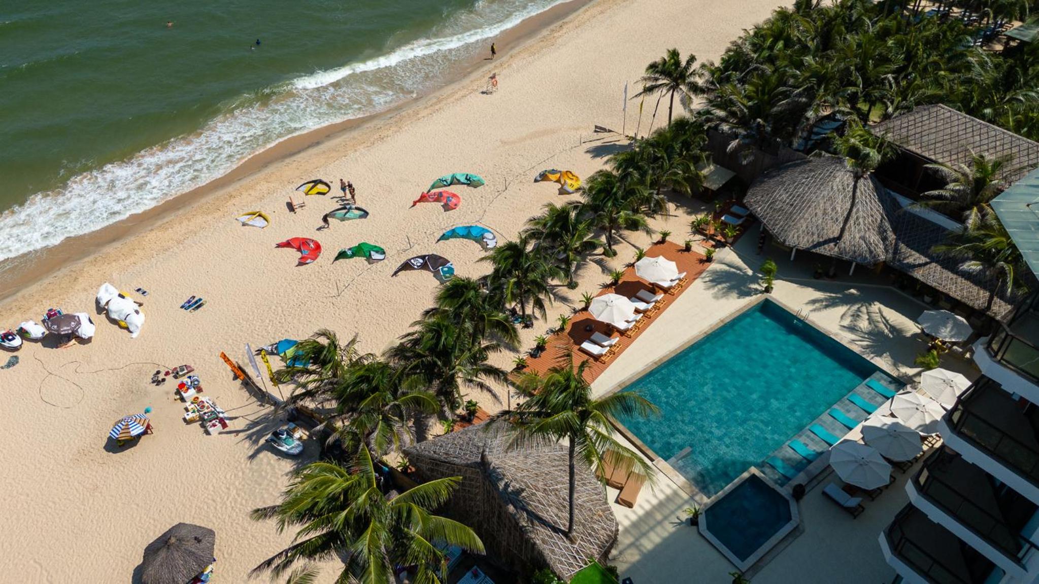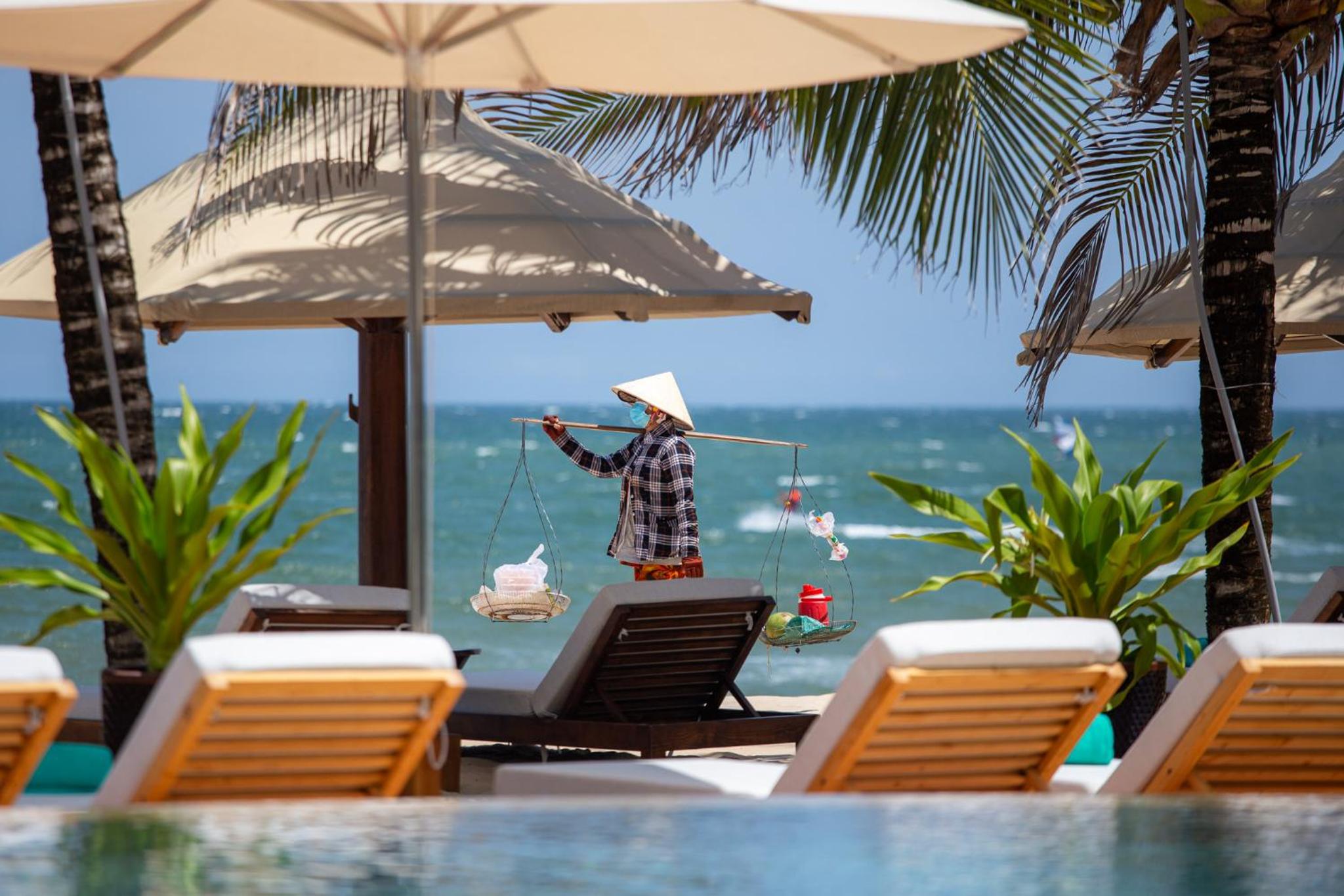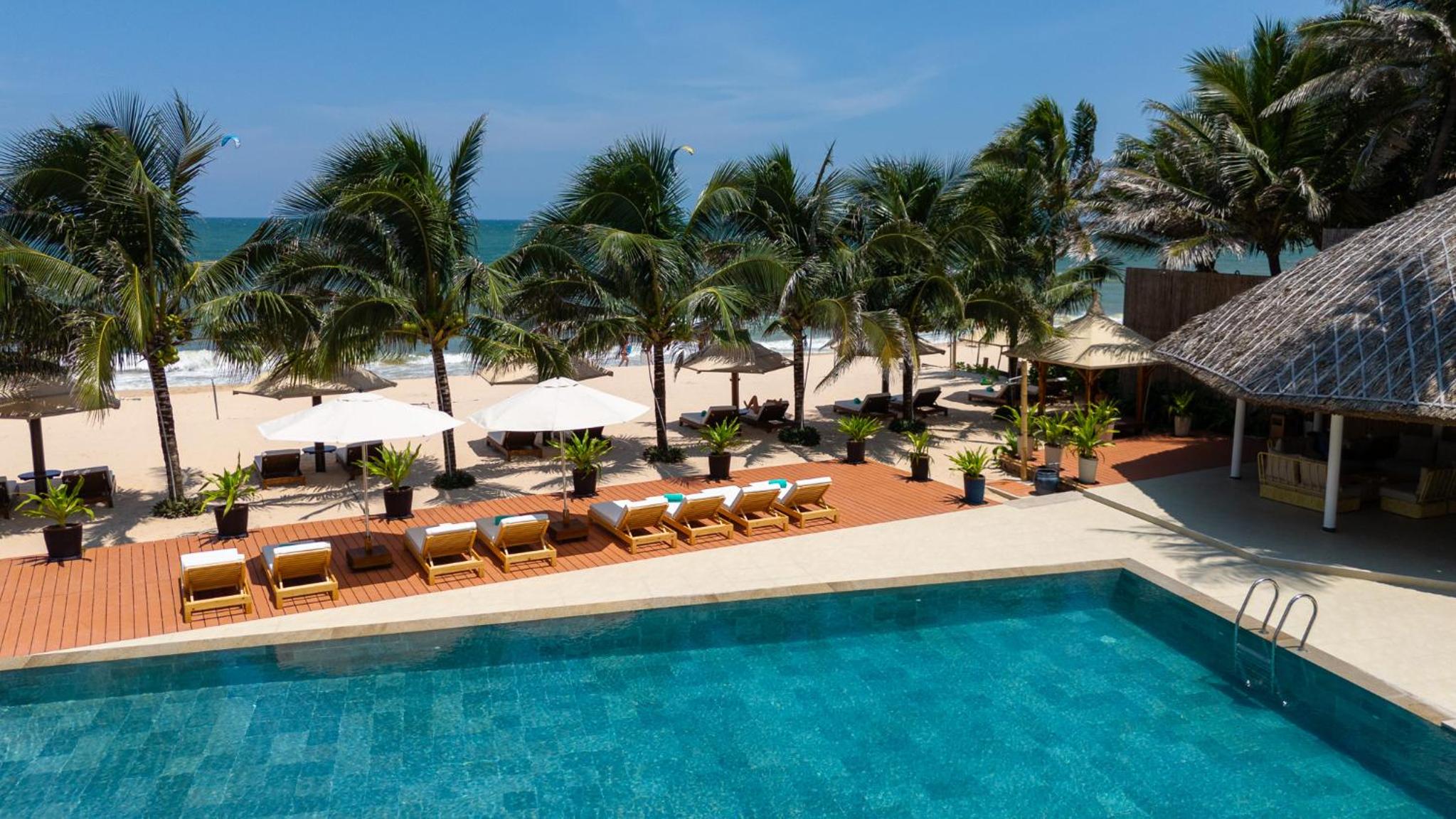 Unwind by the outdoor swimming pool, lounge on the private beach area, or indulge in a delicious meal at the on-site restaurant. Explore nearby attractions like Ong Dia Rock Beach and Fairy Spring for a memorable vacation.