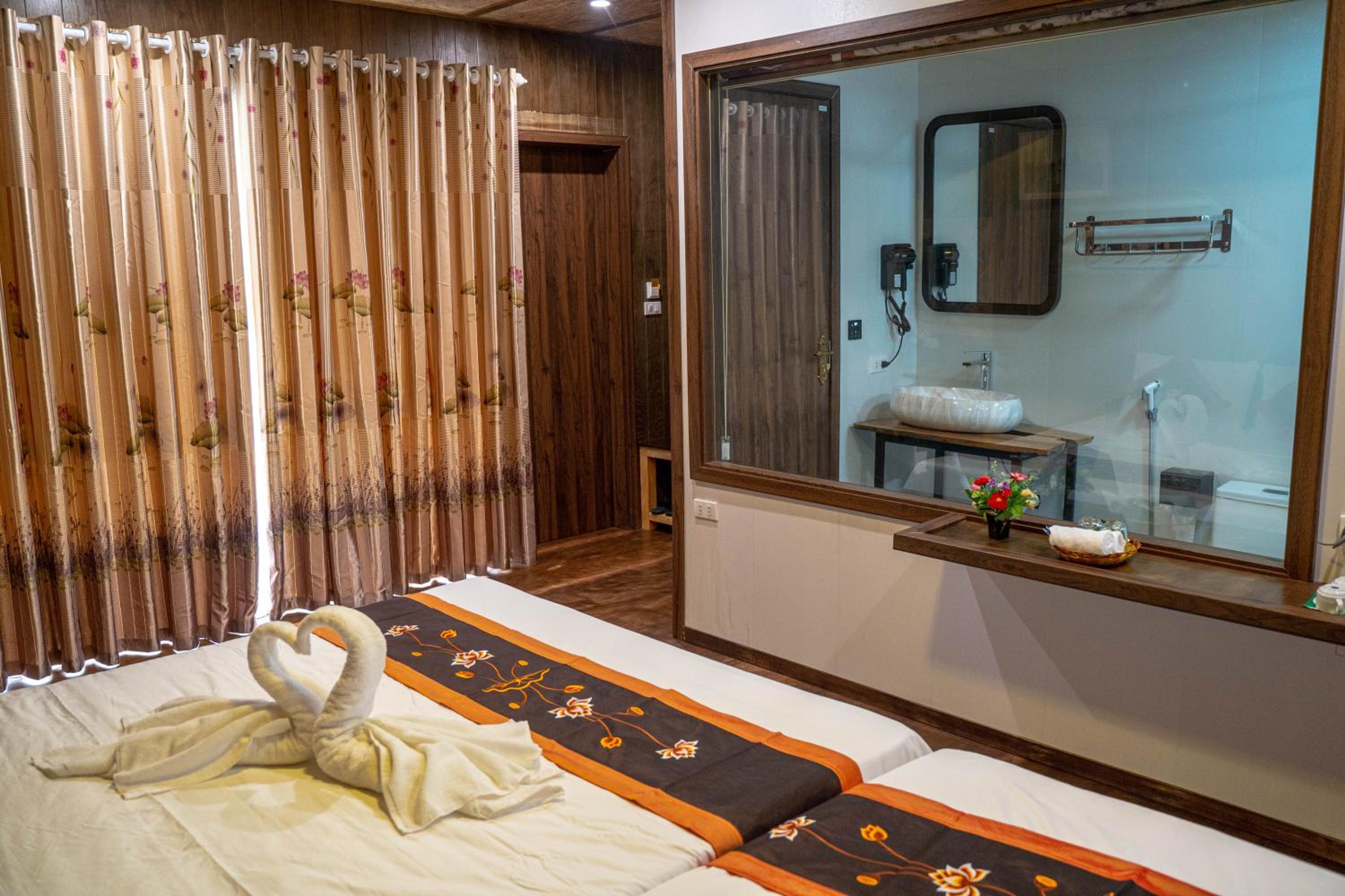 Le personnel est super accueillant et aidant, le cadre est superbe, on est à une dizaine de minutes à vélo (prêté par l’hôtel) de Hang Mua, et près des visites sublimes du coin (Trang An à 15mn en voiture). Grande chambre spacieuse avec un balcon ET une terrasse avec vue sur la piscine et ces décors colorés qu’il est bon de voir au réveil.