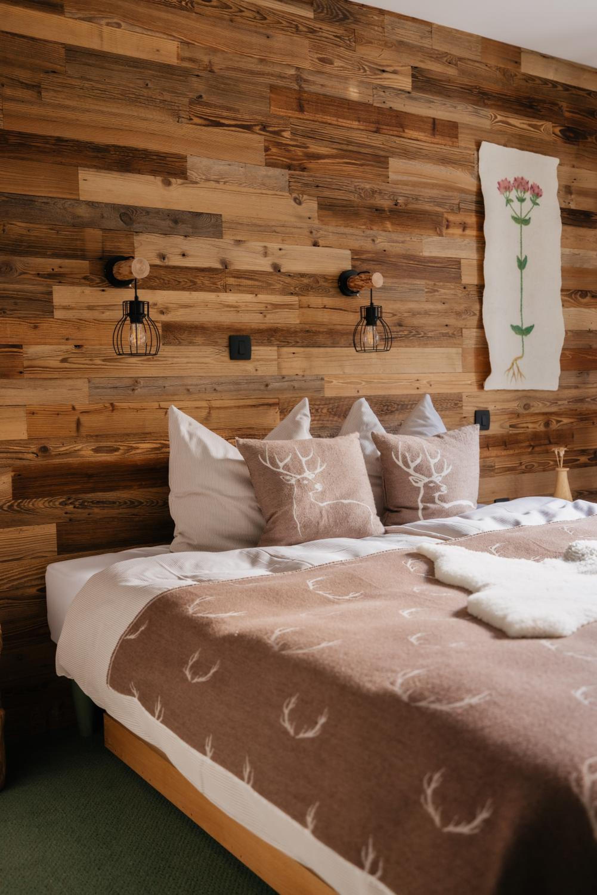 Pansion je smješten u srcu Logarske doline, pored (50m) ceste šta vodi do slapa Rinka(4 km).Okružen šumicom te pogledom na Kamniške alpe i okolna brda pruža istinski doživljaj prirode.Pansion ima 10 tak+ soba, ugodan bar sa zimskim vrtom i restoran u kojem se može ručati do 19:00 sati.Sve je ljepo uređeno u planinskim stilu, čiso te jako ugodno.Naša soba je bila veća od ostalih sa balkonom i pogledom na planinu, krevet udoban, wc moderan, sve čisto za 10.