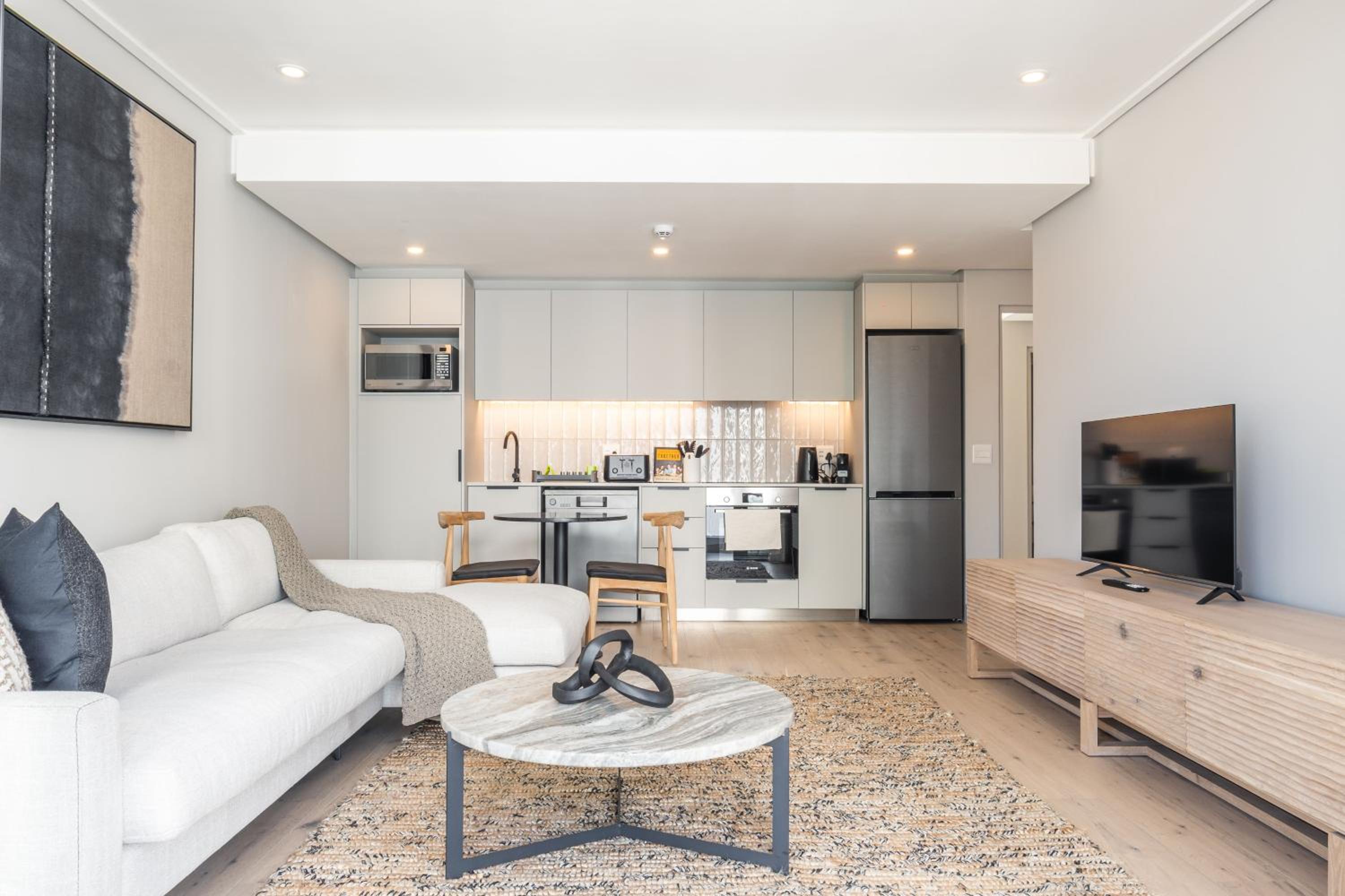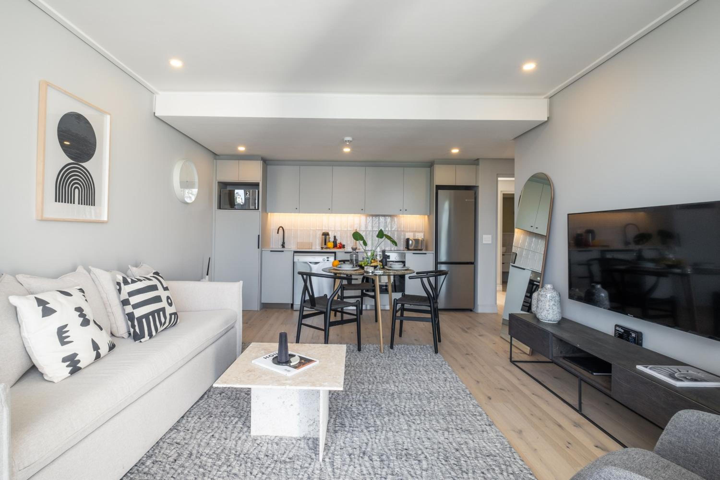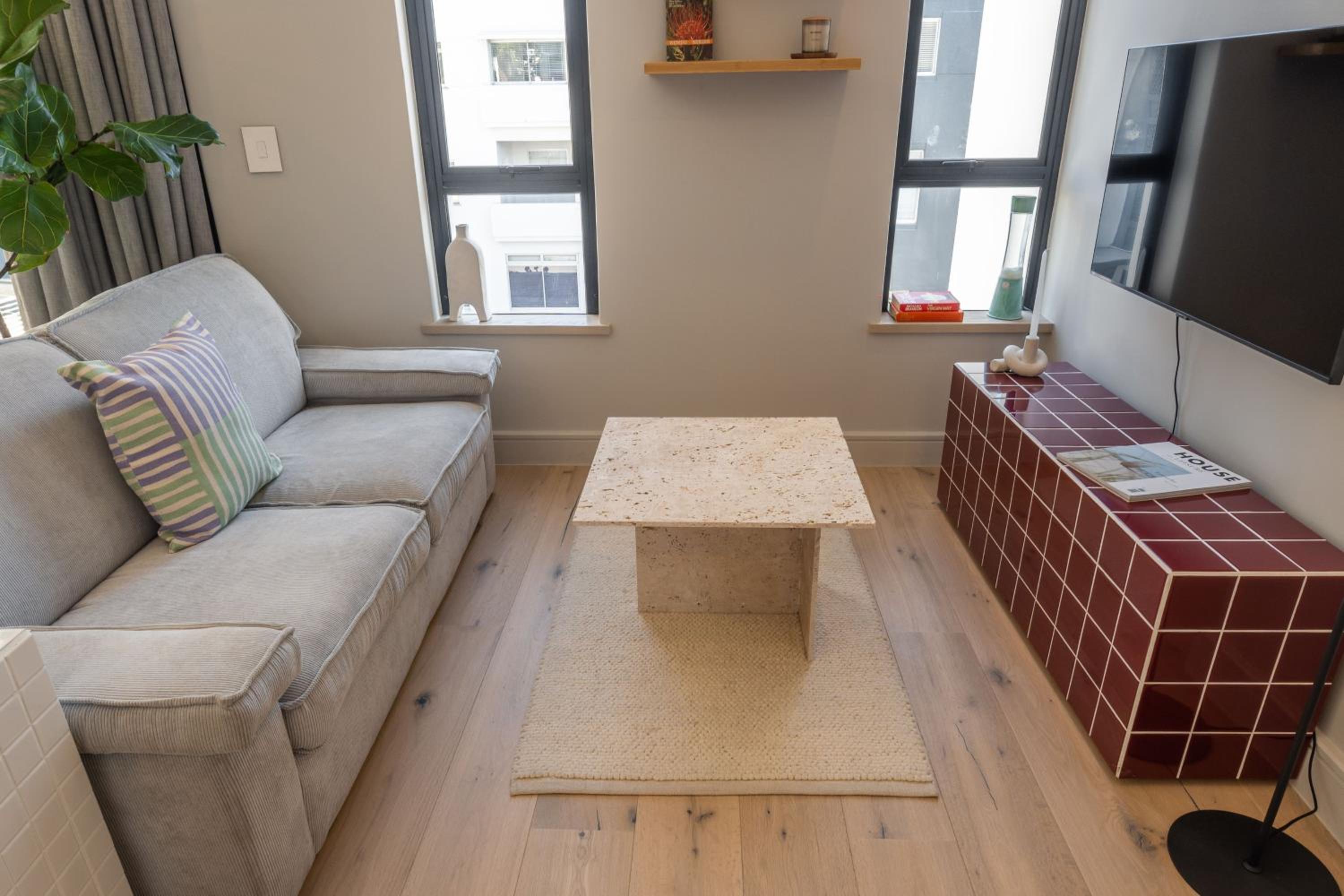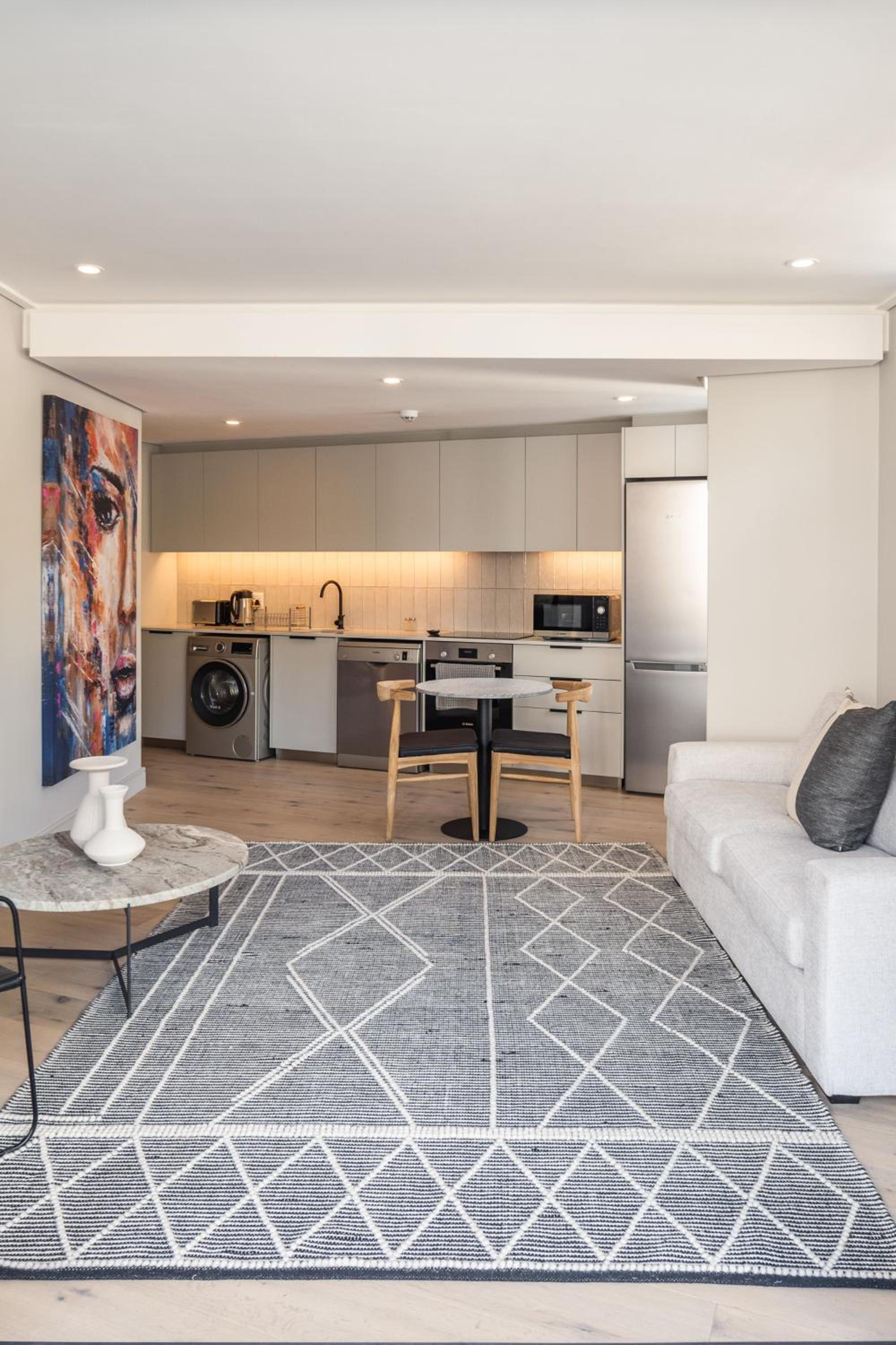 Excellent location as a base in Cape Town with amazing views of Lion Head. Really buzzy area to stay. Lots of good restaurants & two large supermarkets within walking distance. No need for car. Ubers & Bolt if needed. Sea front & promenade towards the V&A Waterfront just 5mins walk.