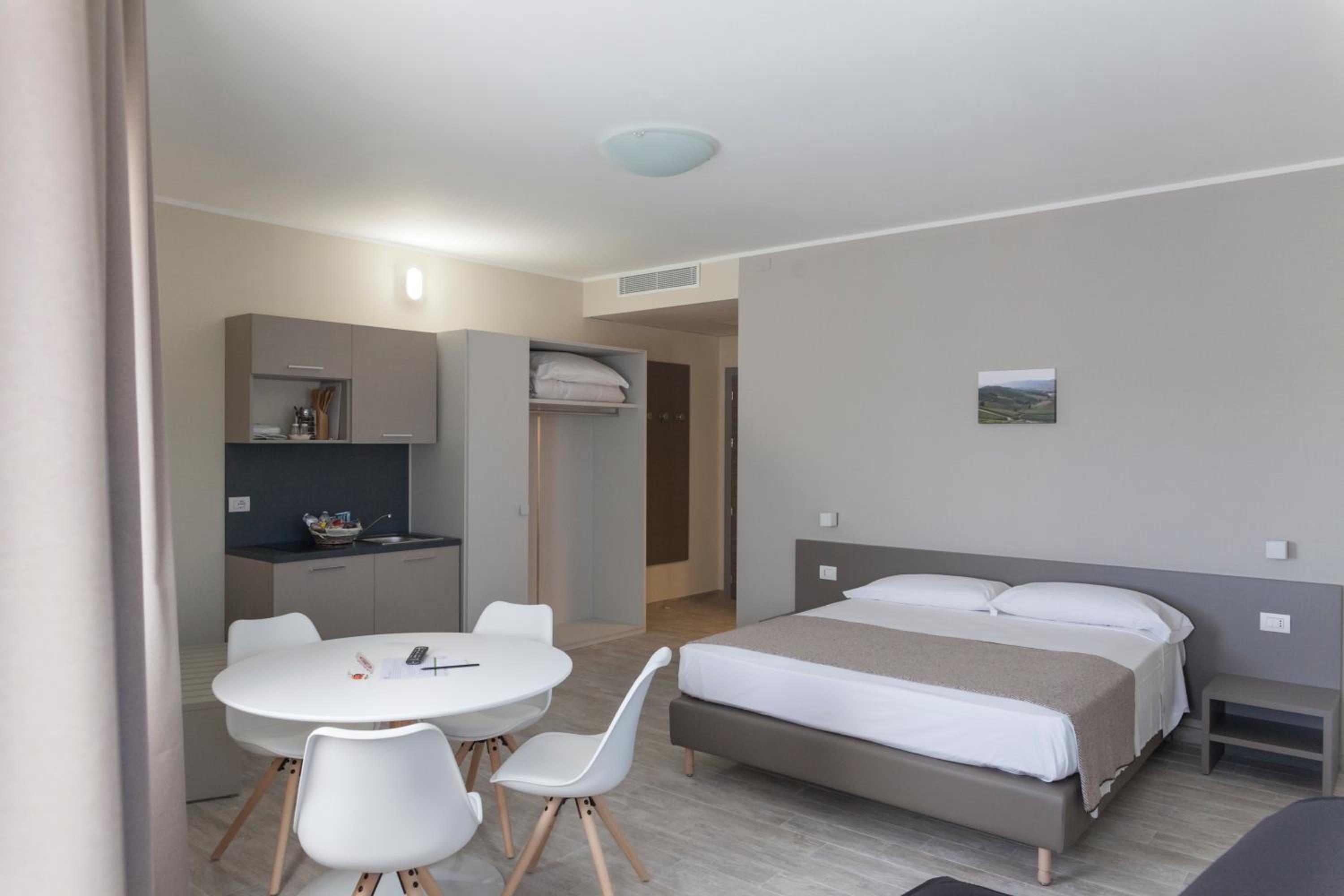 Indulge in the comfort of our modern and soundproofed rooms at Hotel & Wellness Stella Delle Langhe. Each room features a flat-screen TV, elegant tile floors, and a spacious bathroom with a rejuvenating shower.