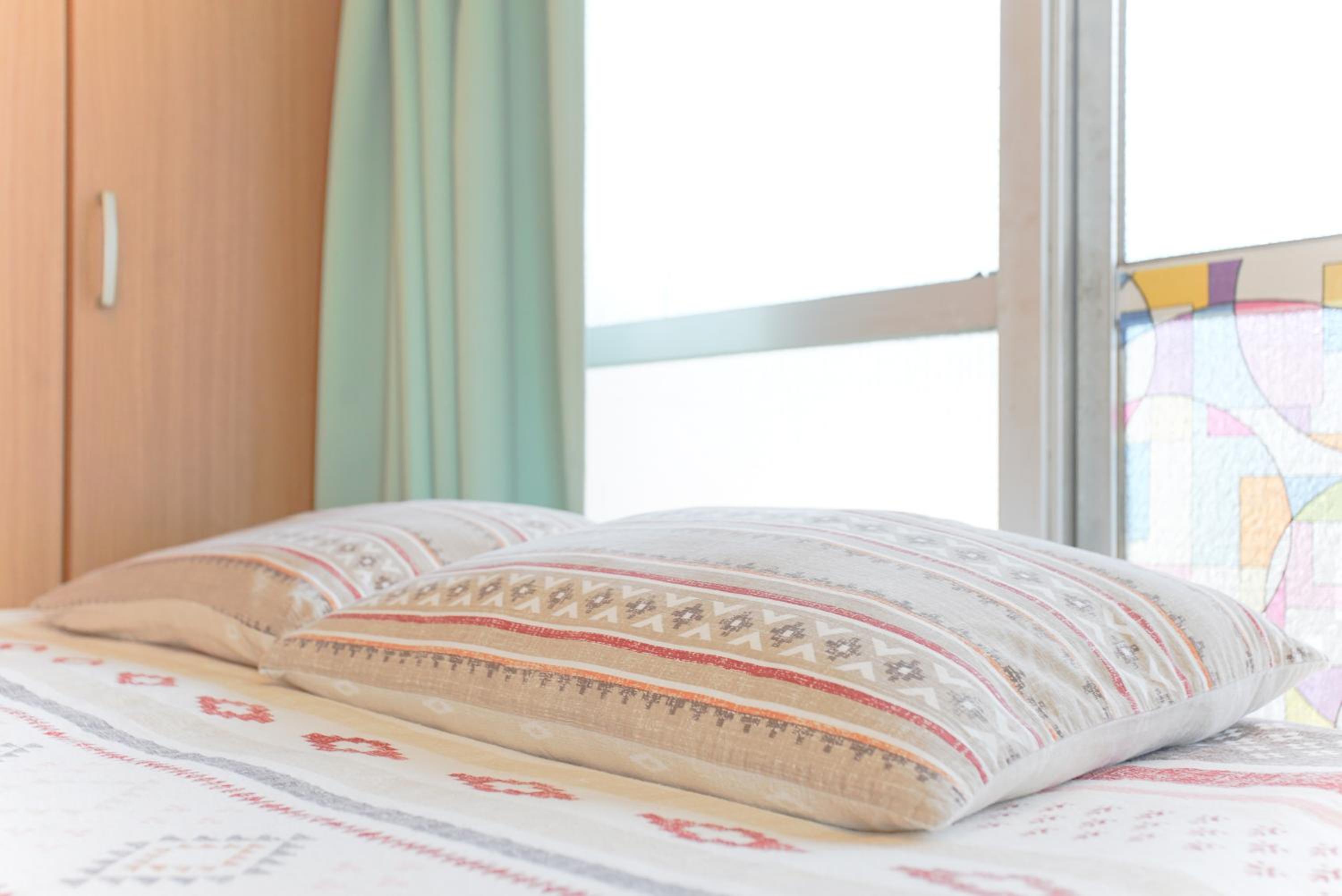 Hoofdkussen van de bedden zijn erg hoog. Was mooi geweest als er wat verschillende soorten kussens aanwezig waren geweest.