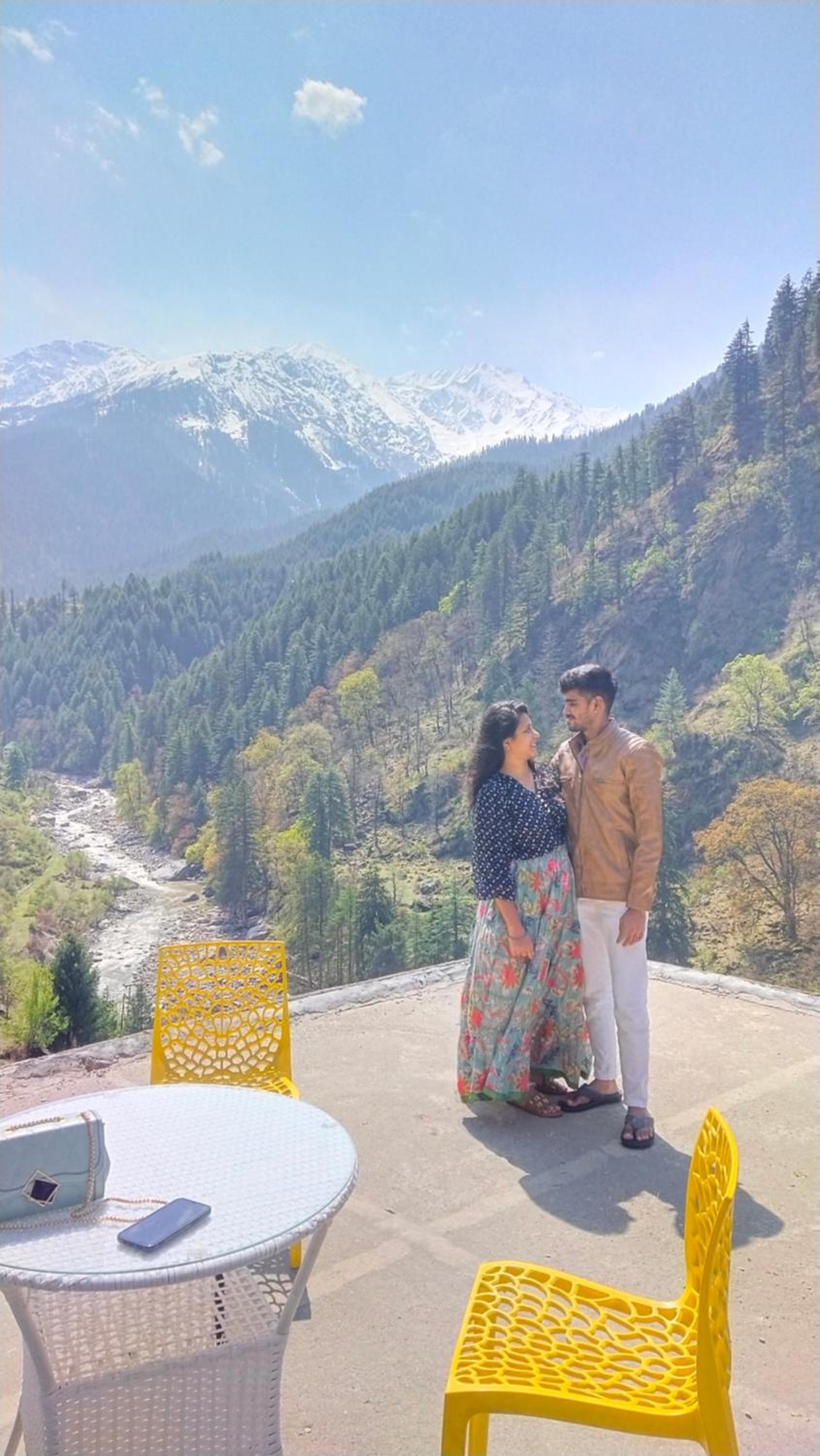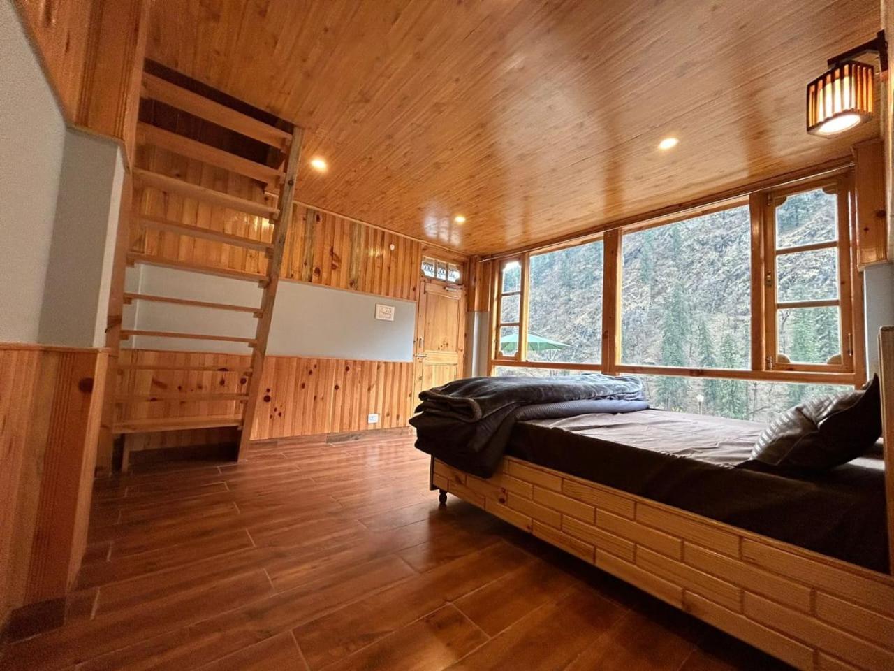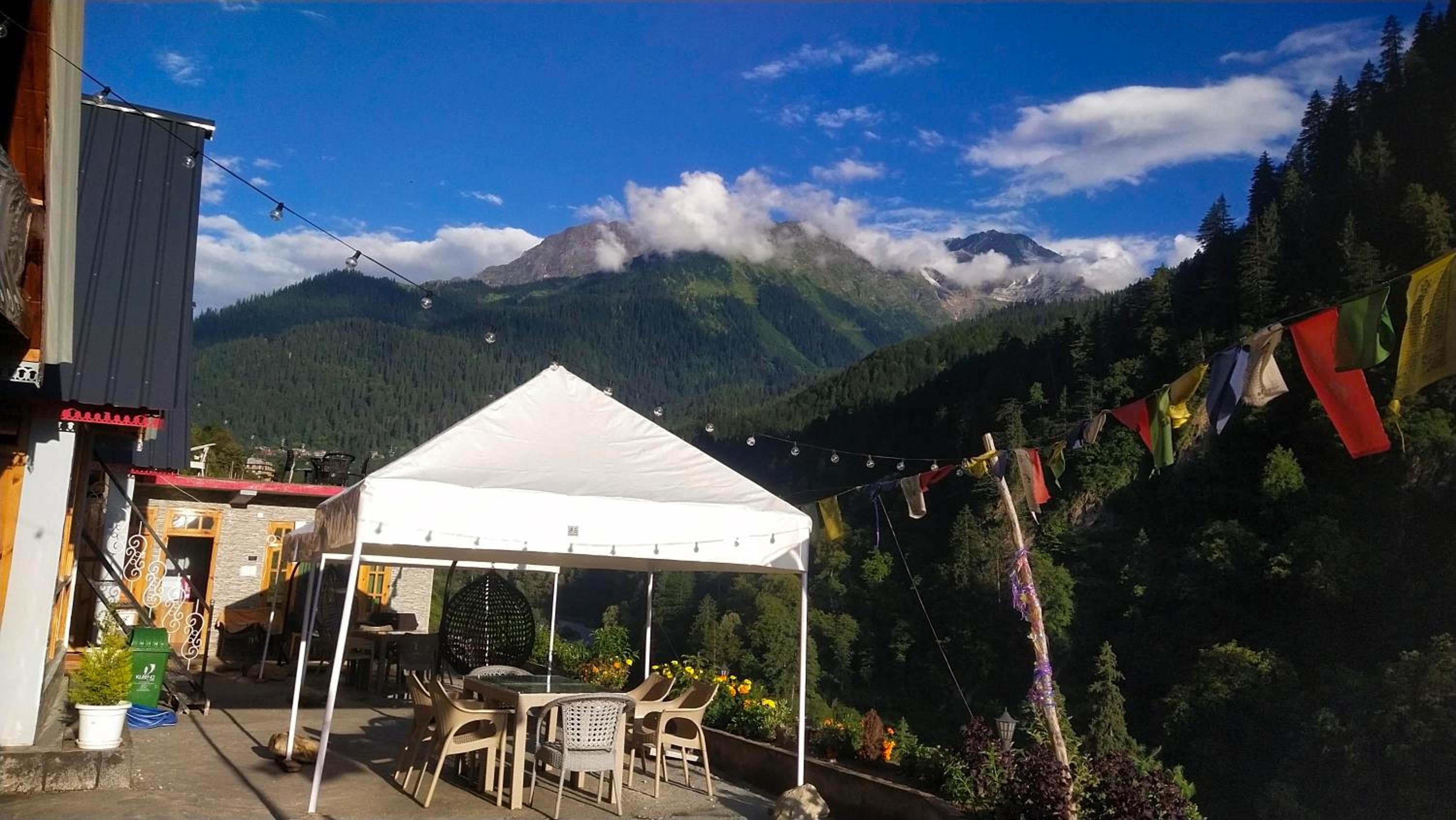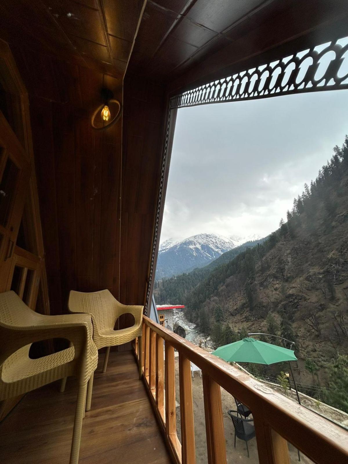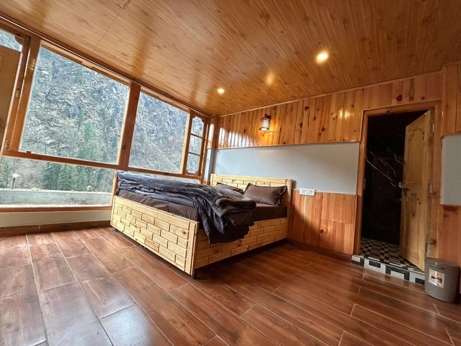 The view from both the room and the kitchen is absolutely breathtaking—you get a panoramic look at the entire Parvati Valley right from your window.