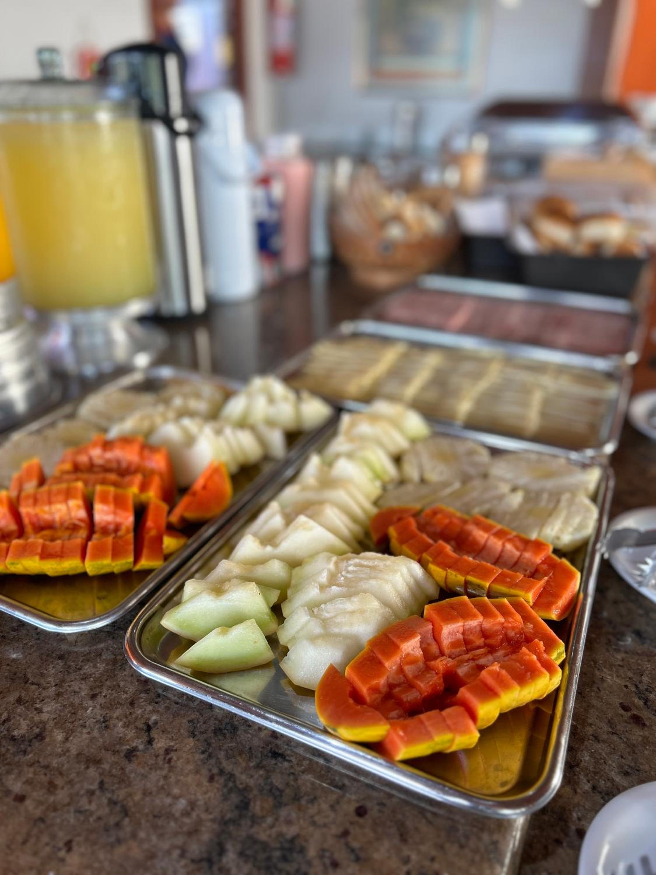 Apesar do bom custo benefício do café senti falta de suco da fruta, havia apenas duas opções de suco instantâneo não muito bons.