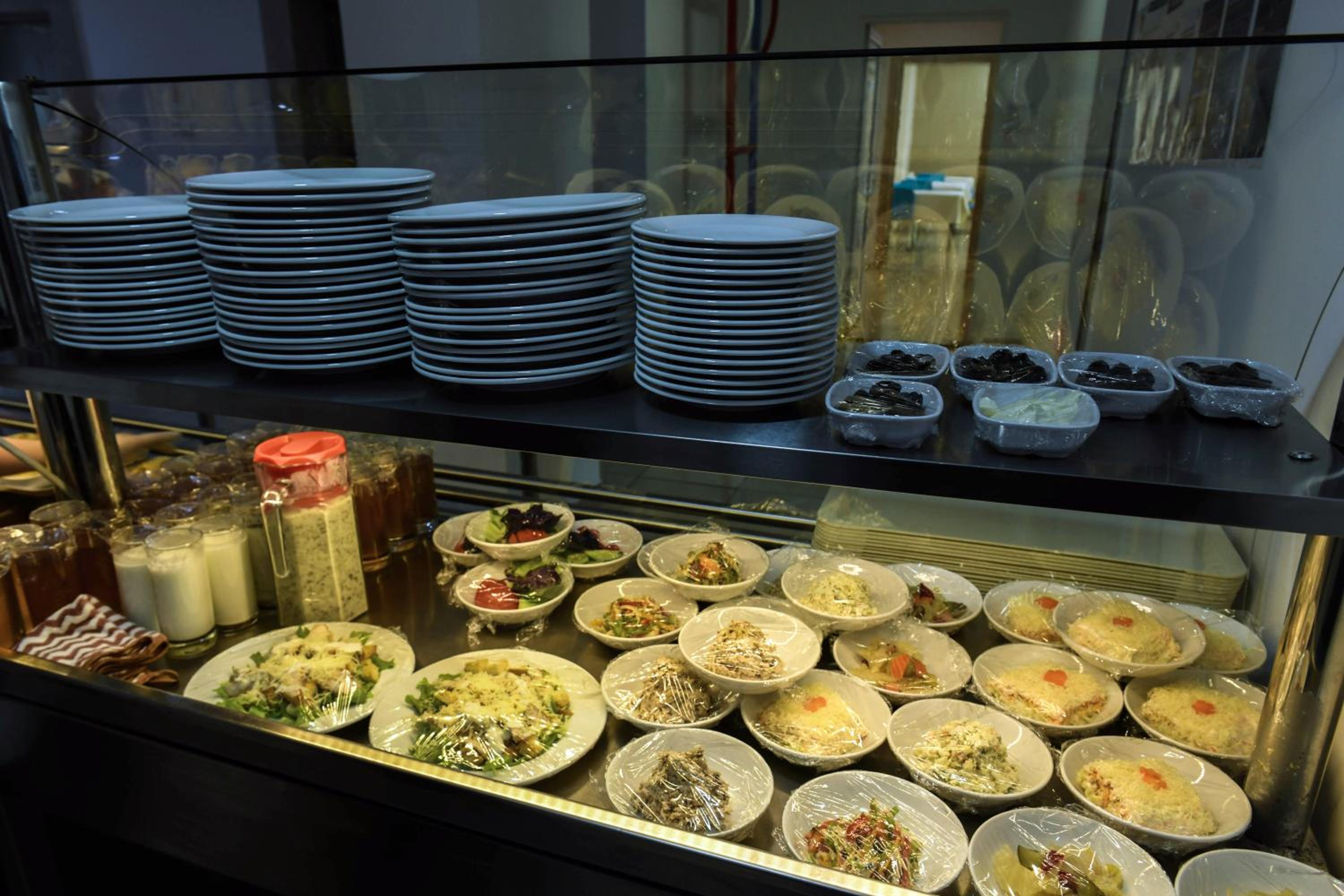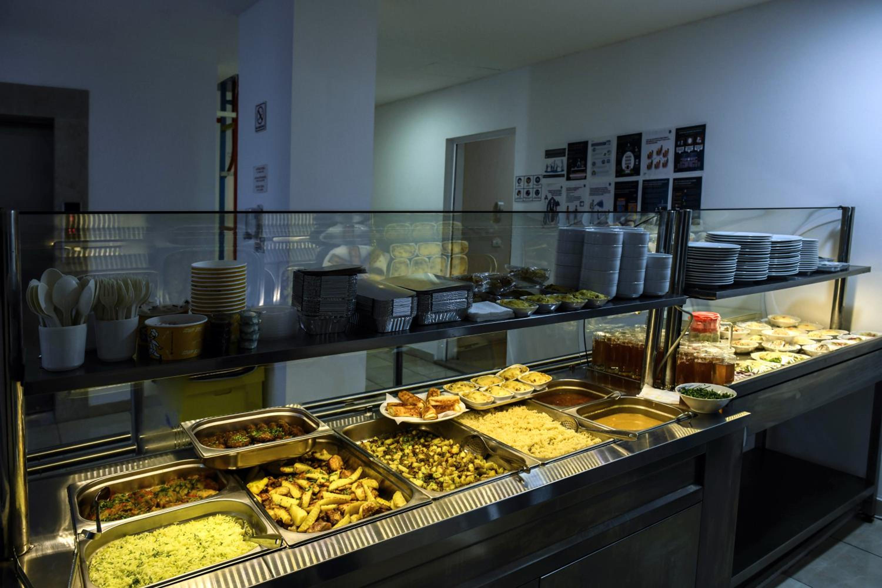 The restaurant is located in the next building.