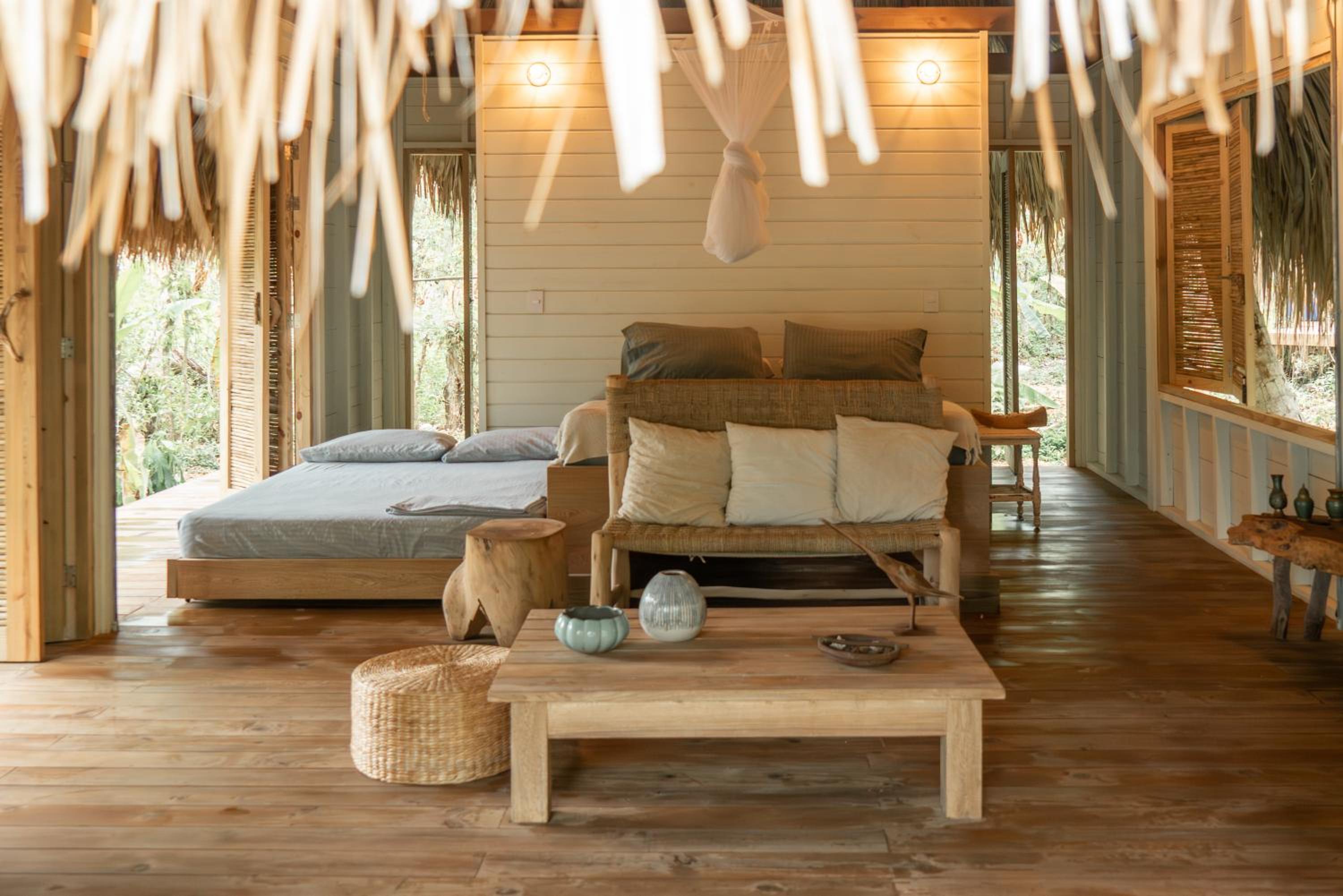 We loved being able to keep the sides of the hut open and one of the dogs came to hang out with us which we loved. We also had sloths outside our place too :)
