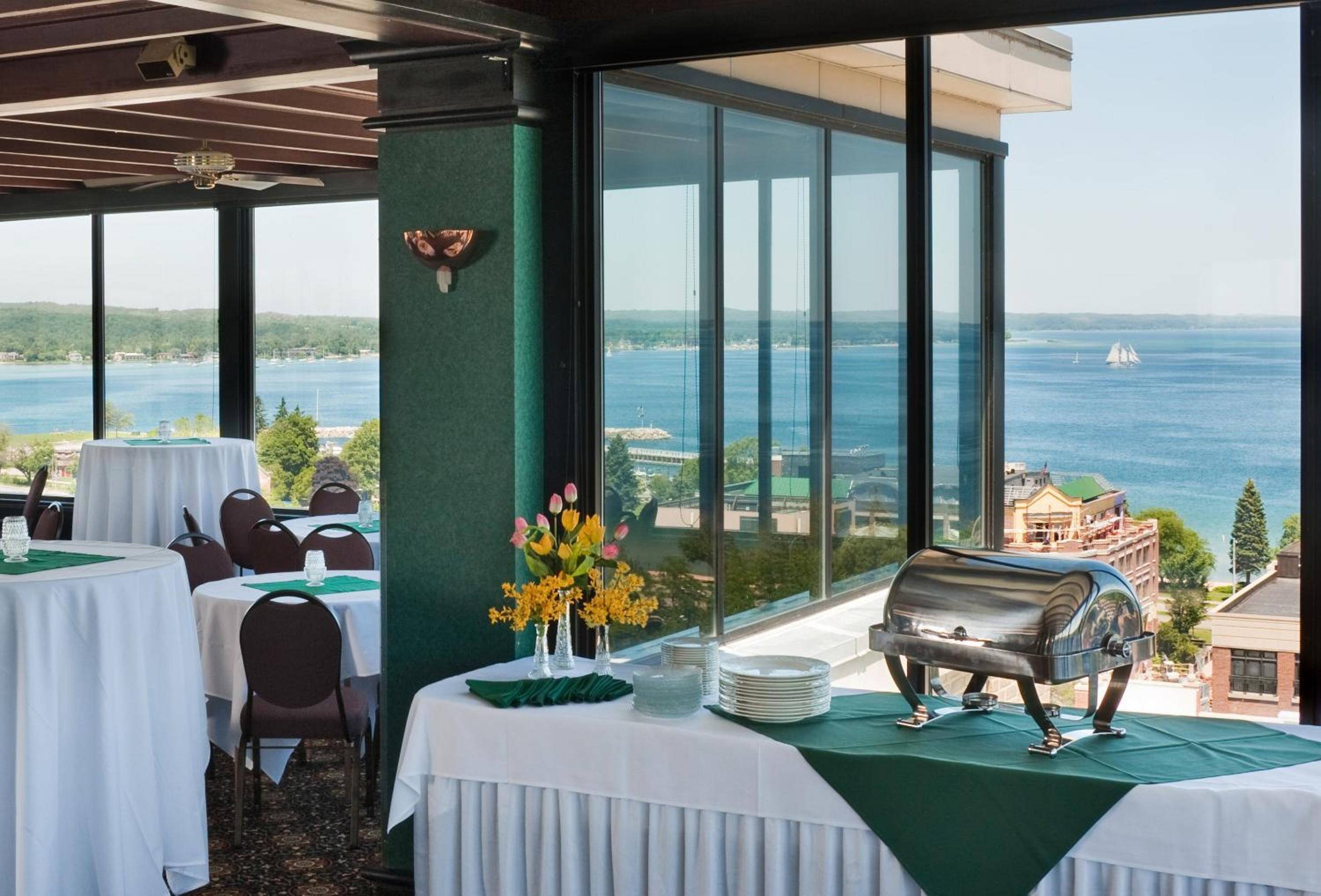 Unwind at the Beacon Lounge overlooking Traverse Bay, offering appetizers, beverages, and live entertainment. Explore nearby attractions like City Opera House and unique local shops.