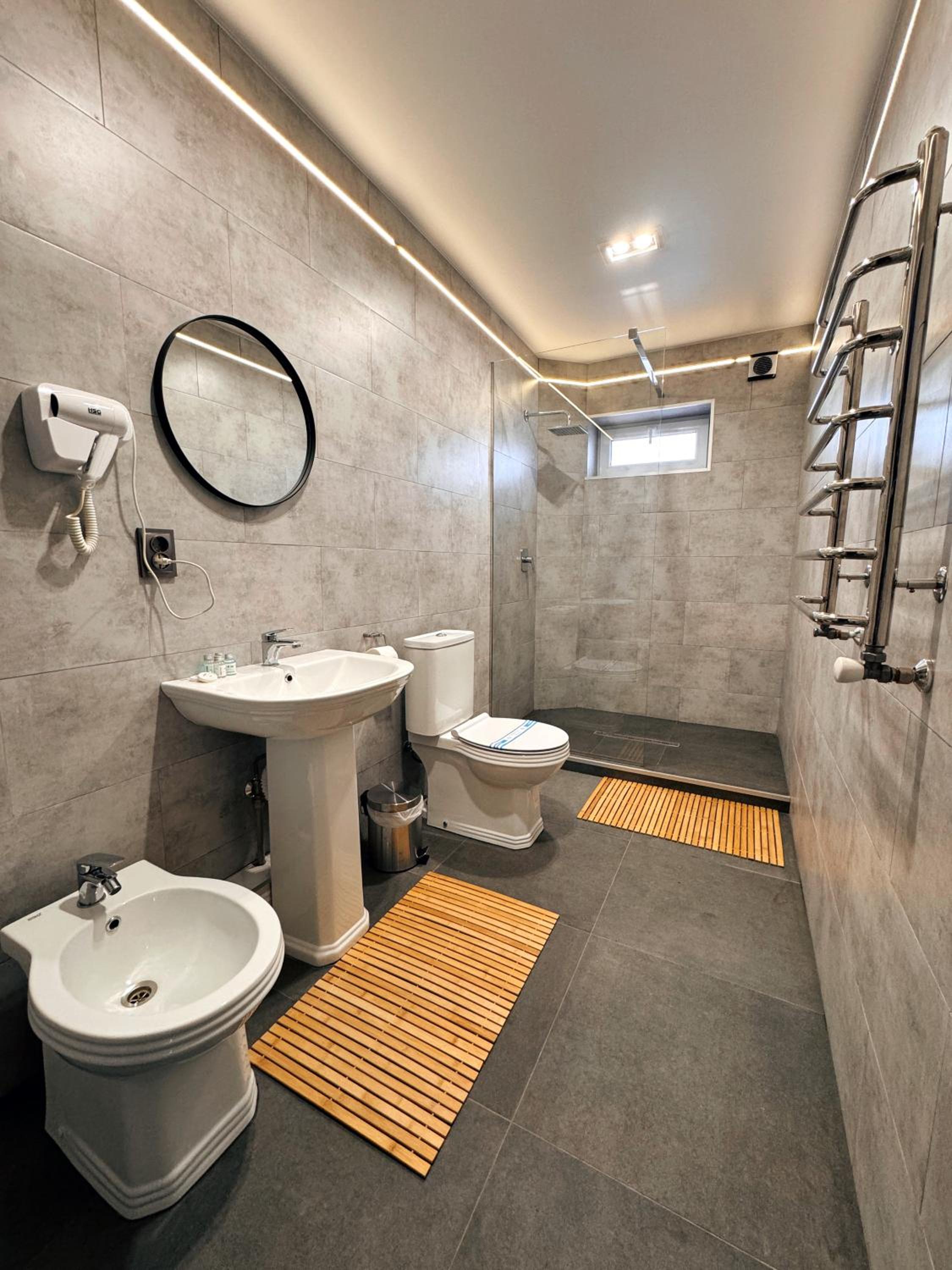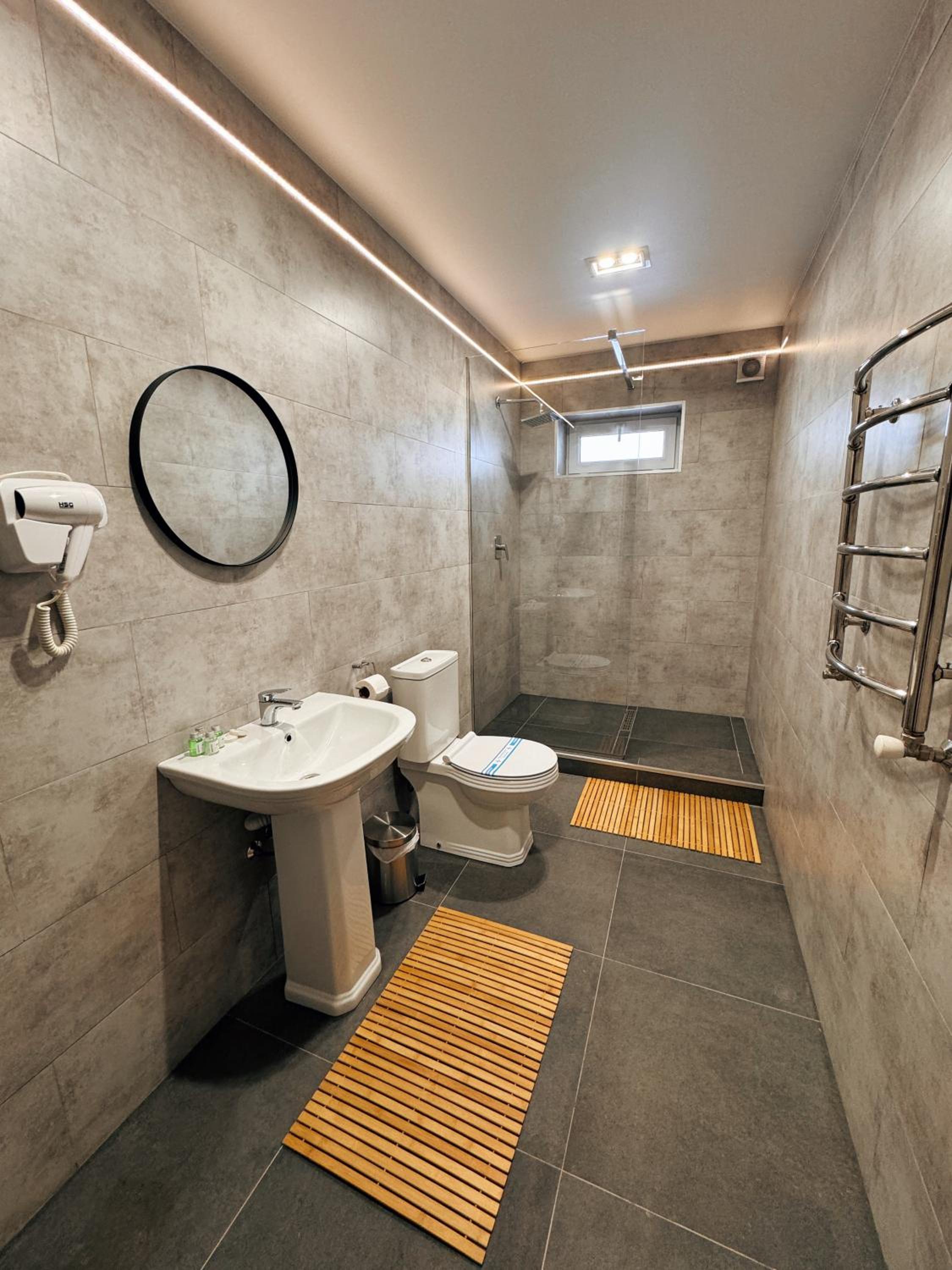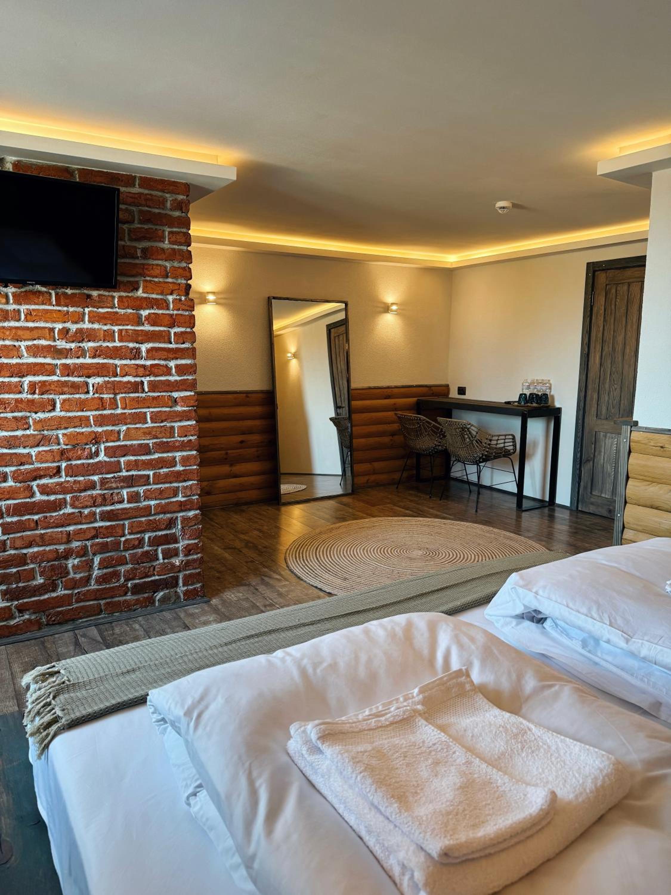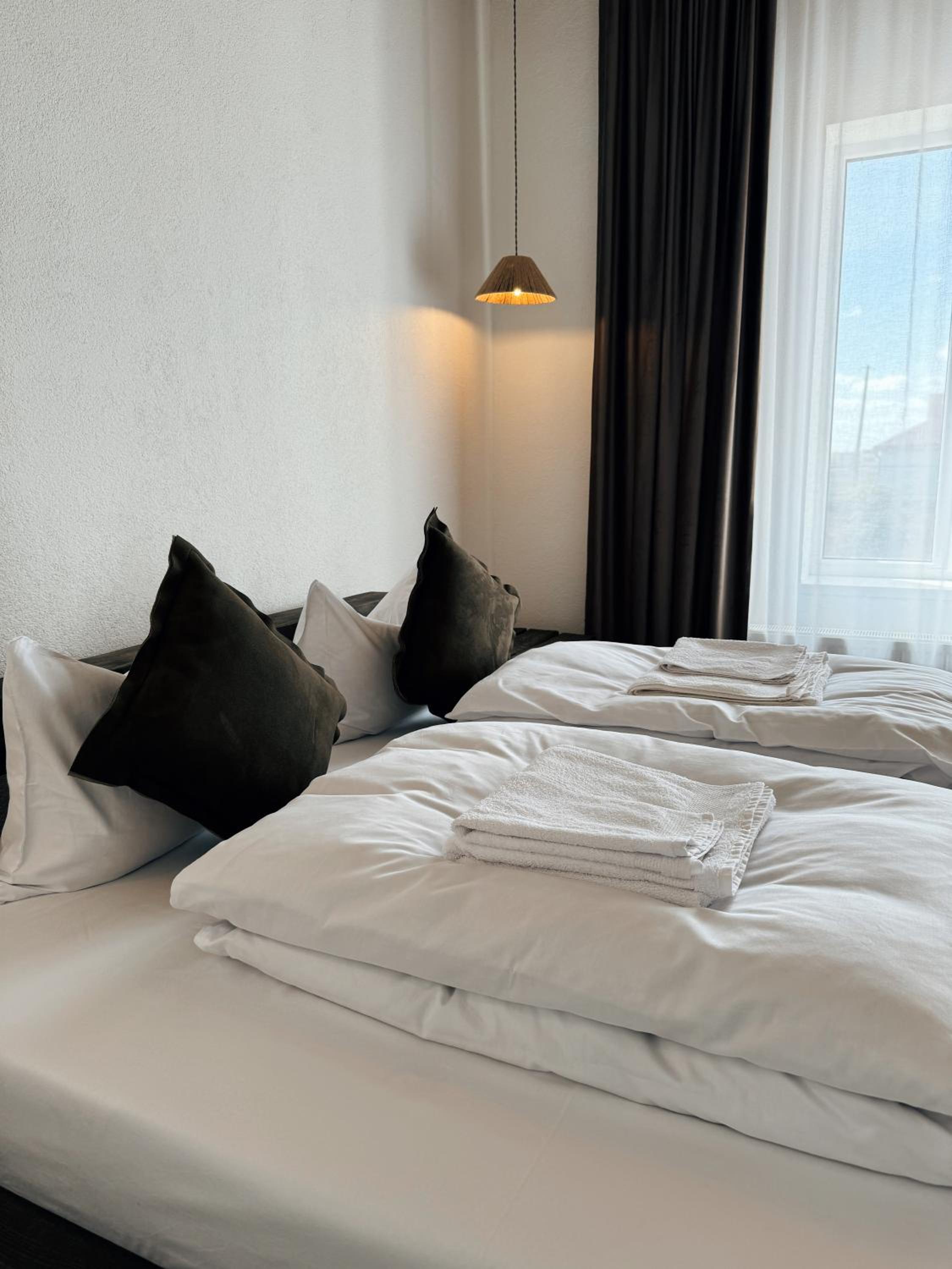 We booked 2 rooms, 3 adults and 2 kids. We got only 4 towels, when I kindly asked for one more towel for my 6 year old child, receptionist lady - said you are not supposed to have one. When I asked her again, that she is refusing to give me a towel for my 6 year old, she said yes. When we arrived we checked in and paid, when we were leaving, no one was there to farewell. Hotel is clean and new, shower did not work well in our room. Water works in a weird way. No cattle to make tea. As you understand with service like that, there was no desire to stay for breakfast. I am a hotelier myself, dear owner of the place, or teach your staff what hospitality means or you have not much chances of survival. Your receptionist was stingy to give me a towel, I am stingy to give you a good score. See how it works?