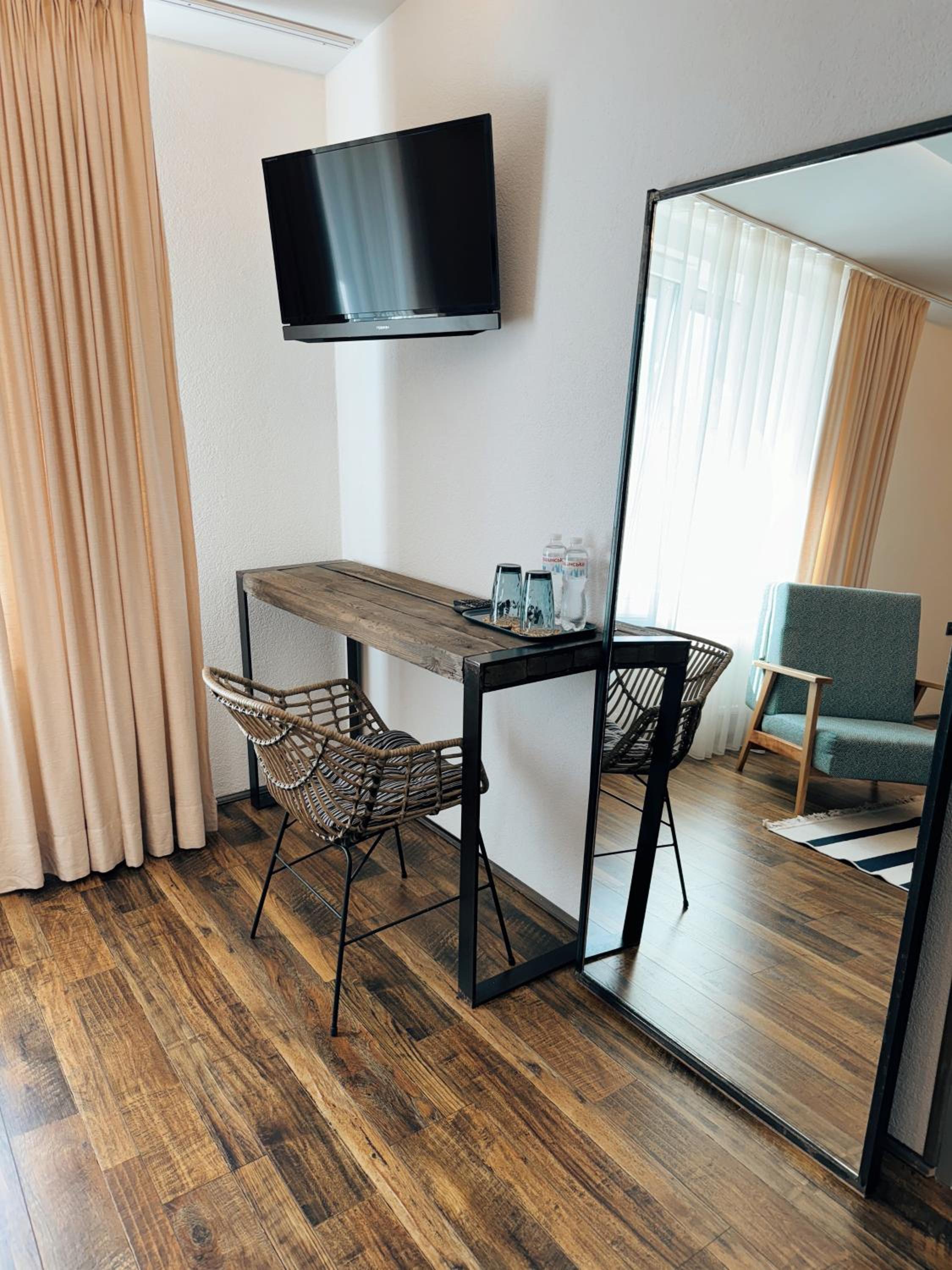 Indulge in our elegantly furnished rooms equipped with modern amenities for a comfortable stay.