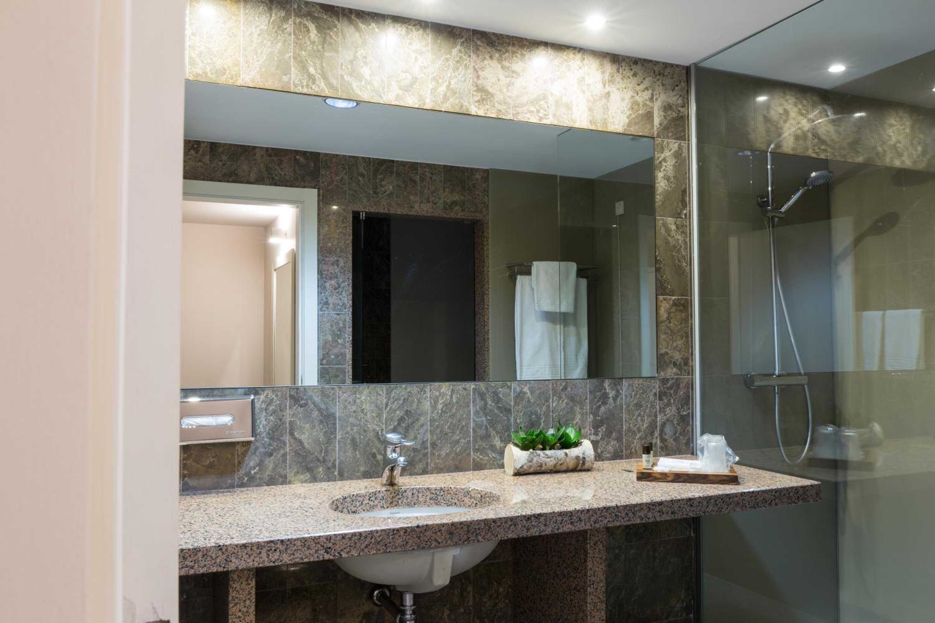 Each room at Pousada de Bragança features a private balcony overlooking the outdoor pool and medieval castle walls. The rooms are equipped with modern amenities such as satellite TV, a minibar, and a private bathroom, ensuring a comfortable stay for all guests.