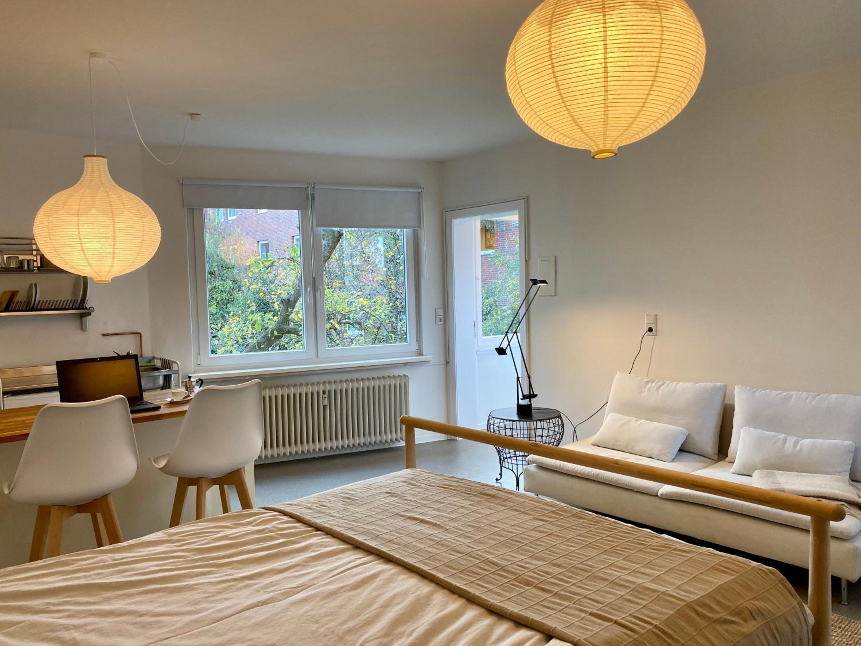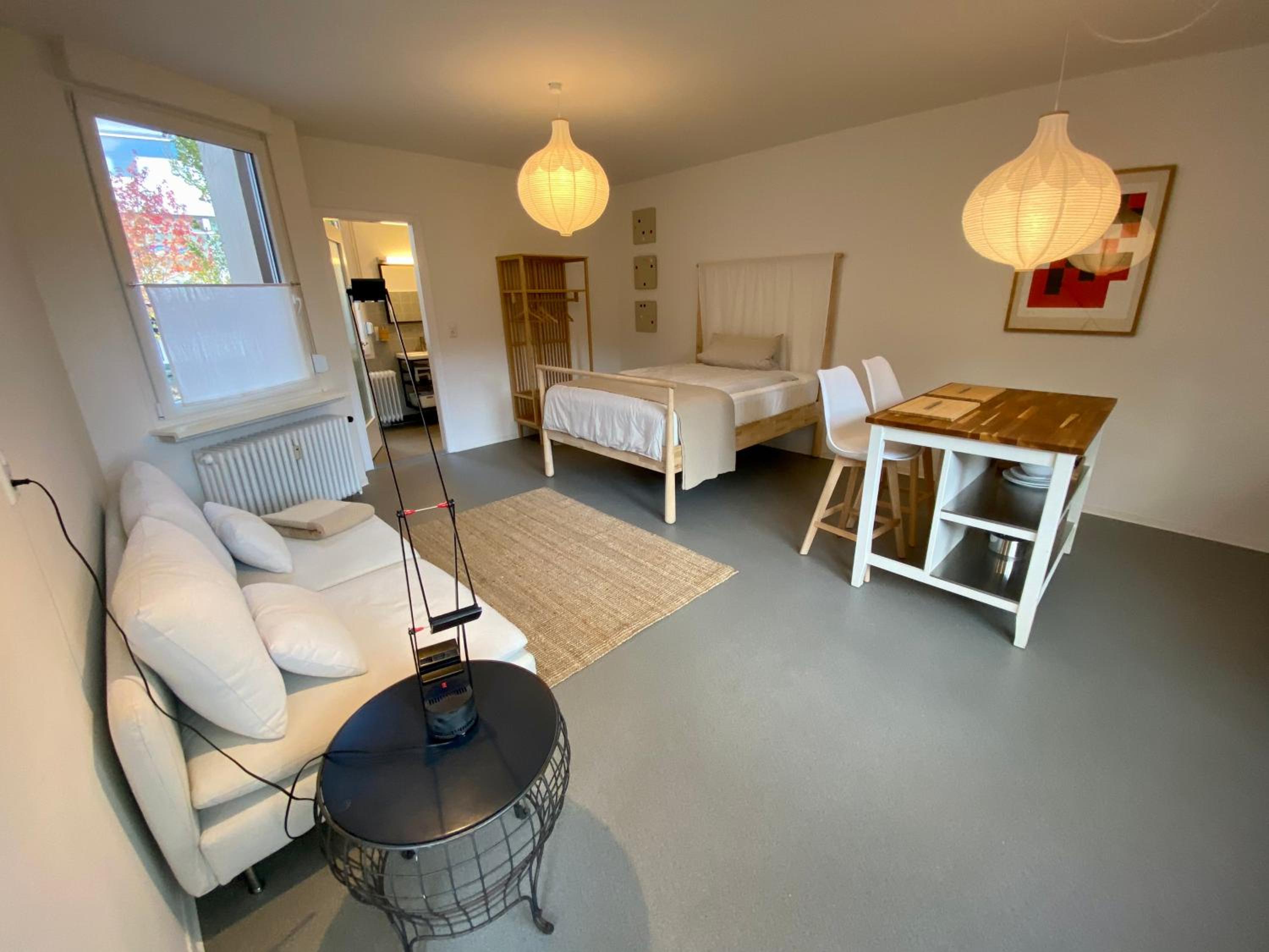 Günstige Unterkunft, 3 min vom Bahnhof entfernt, Gemeinschaftsküche gut ausgestattet, Holzboden, Couch im Zimmer, nett eingerichtet