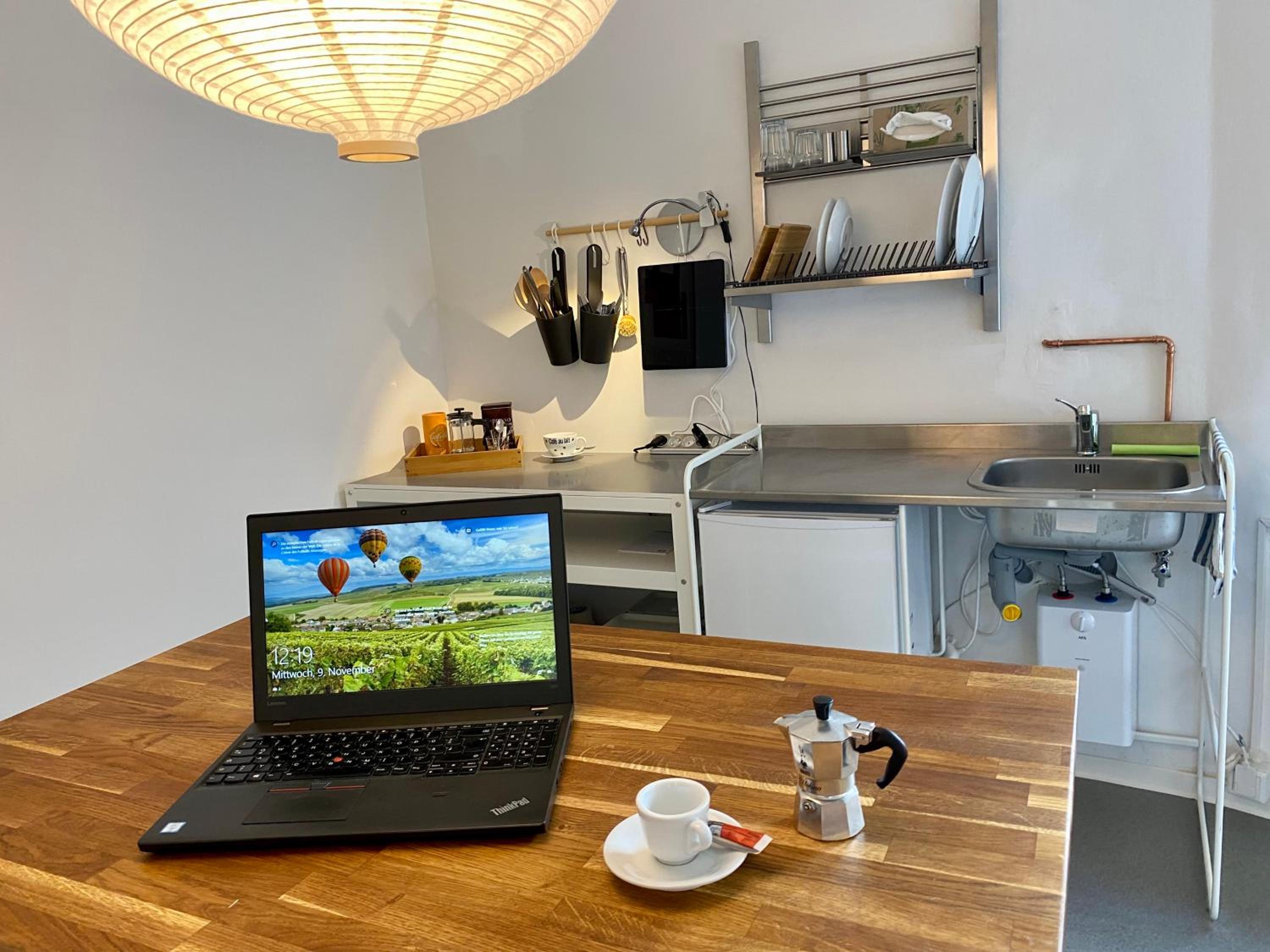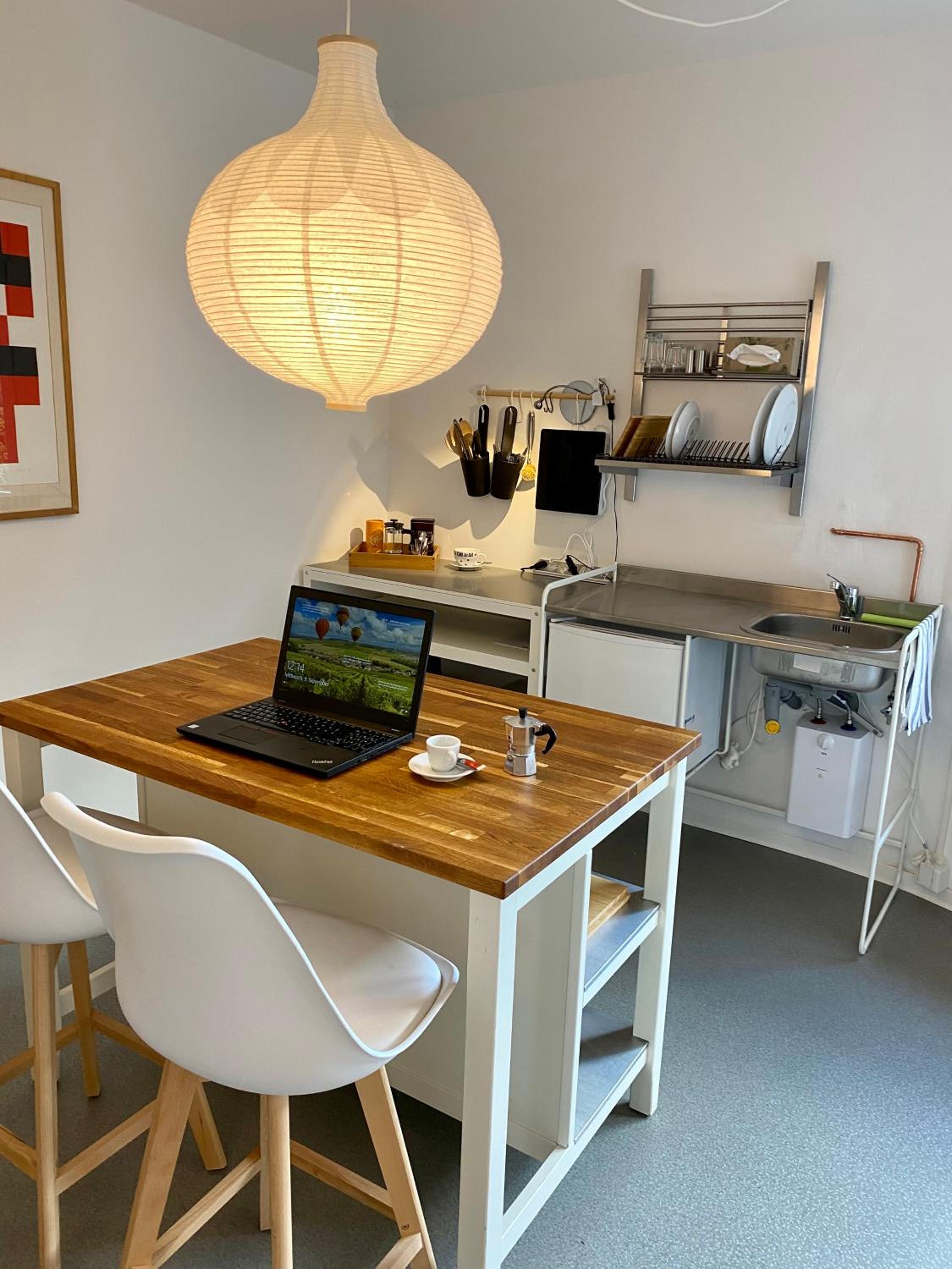 Everything is clean and tidy. The room is big and comfortable, even better than some good hotels in Germany. There is a kitchen for cooking if you want to cook something or just warm your food.
