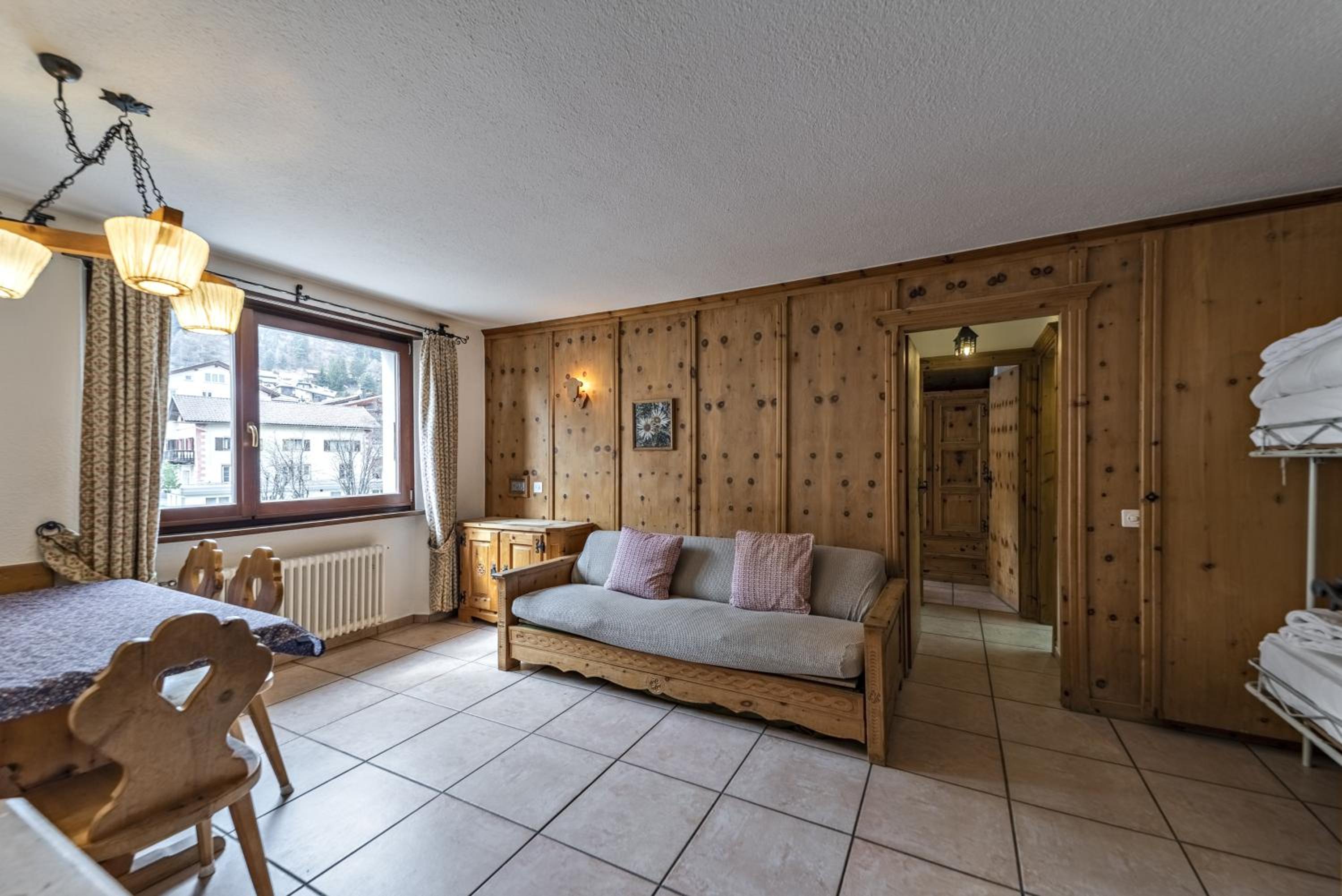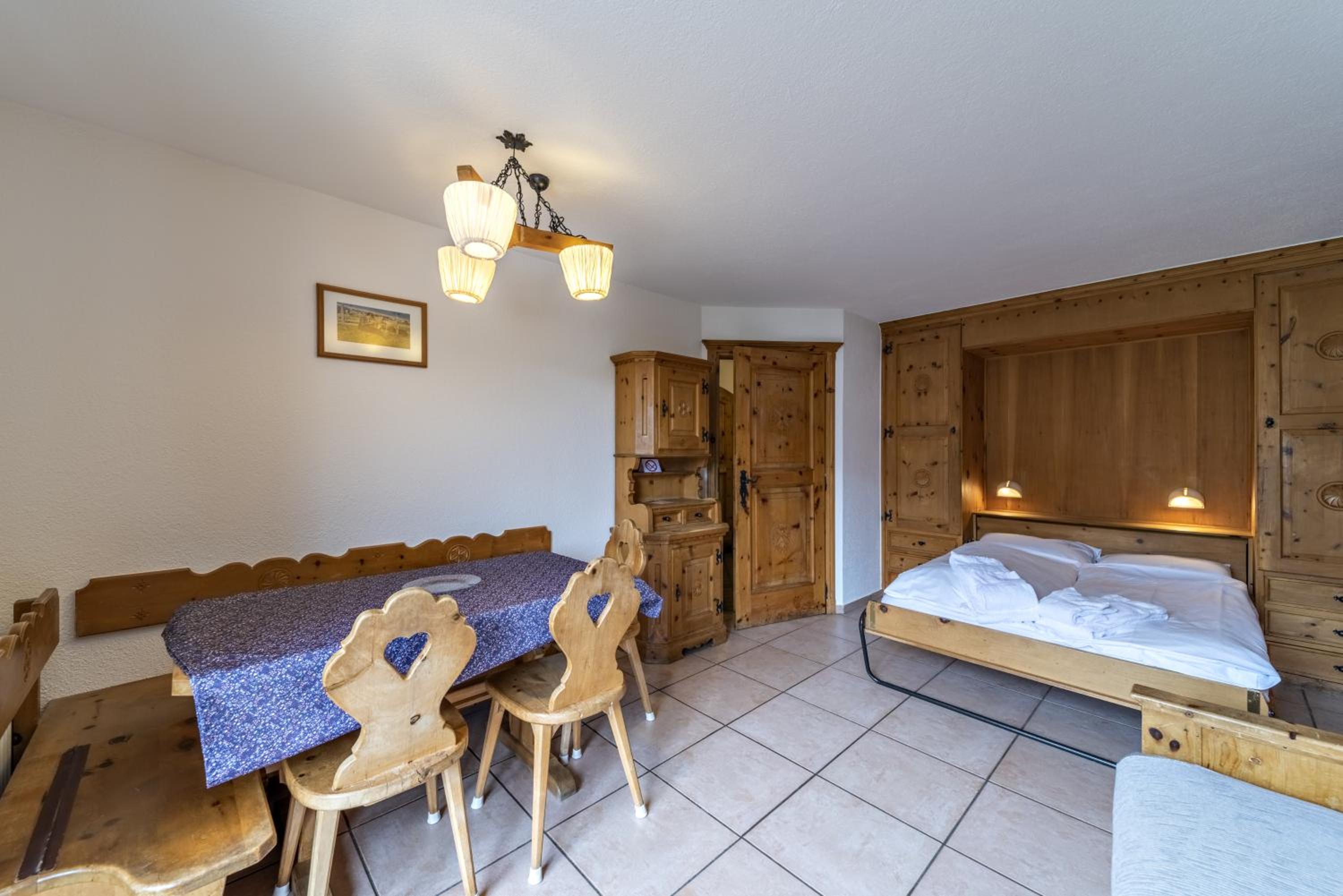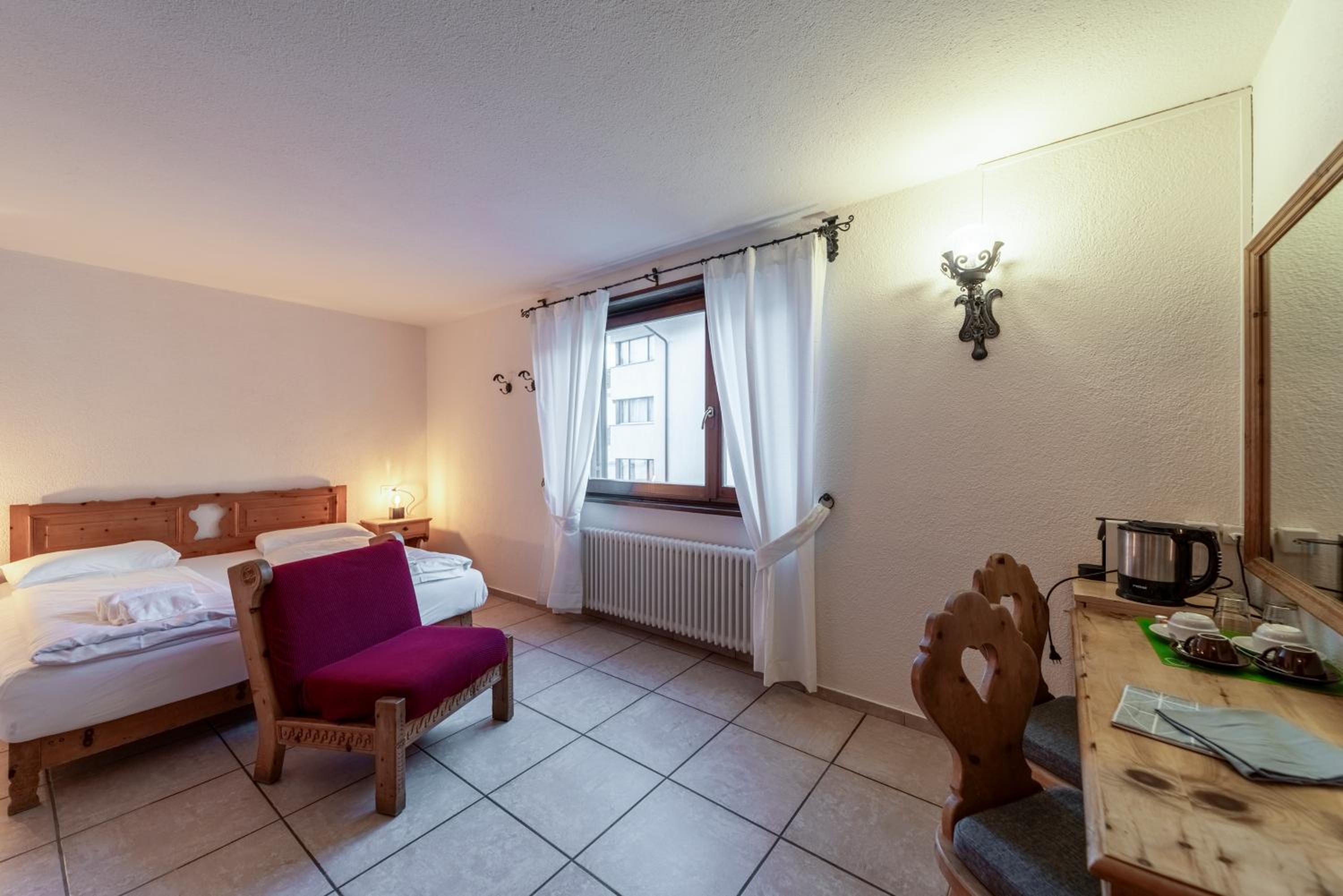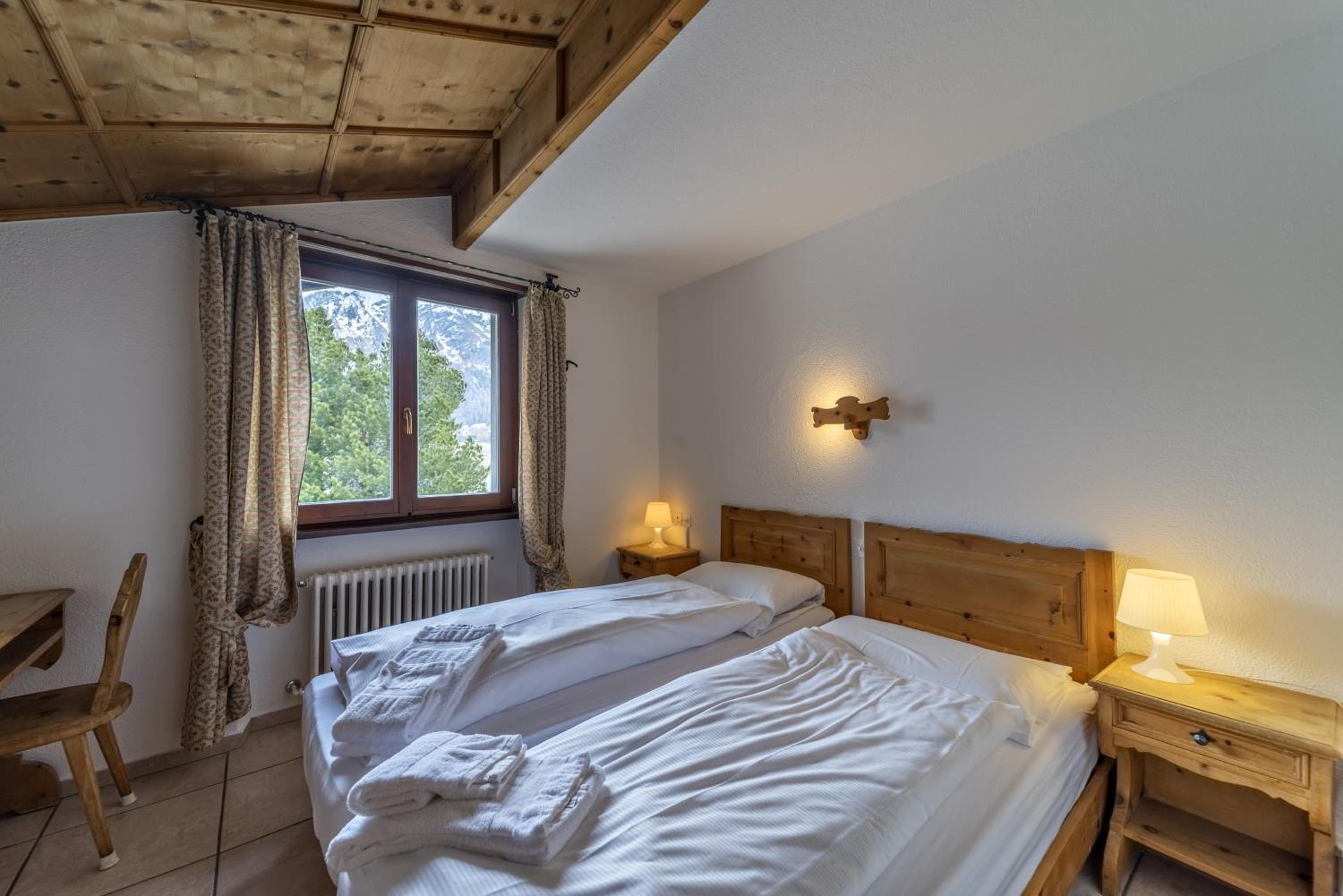 The location is excellent and our room had fabulous views of the lake and surrounds. The triple room was very comfortable and spacious and included tea and coffee (pods). Has a lift for your luggage. Staff were great, very accommodating and friendly. There is a large room with tables and chairs where you can eat your own food, play board games etc which was handy. Supermarket and bakery a short walk from the accommodation. Bus stop also close and handy to access St Moritz (including the train station) and other towns. Buses very frequent and also had an enclosed space so you’re not waiting in the cold.