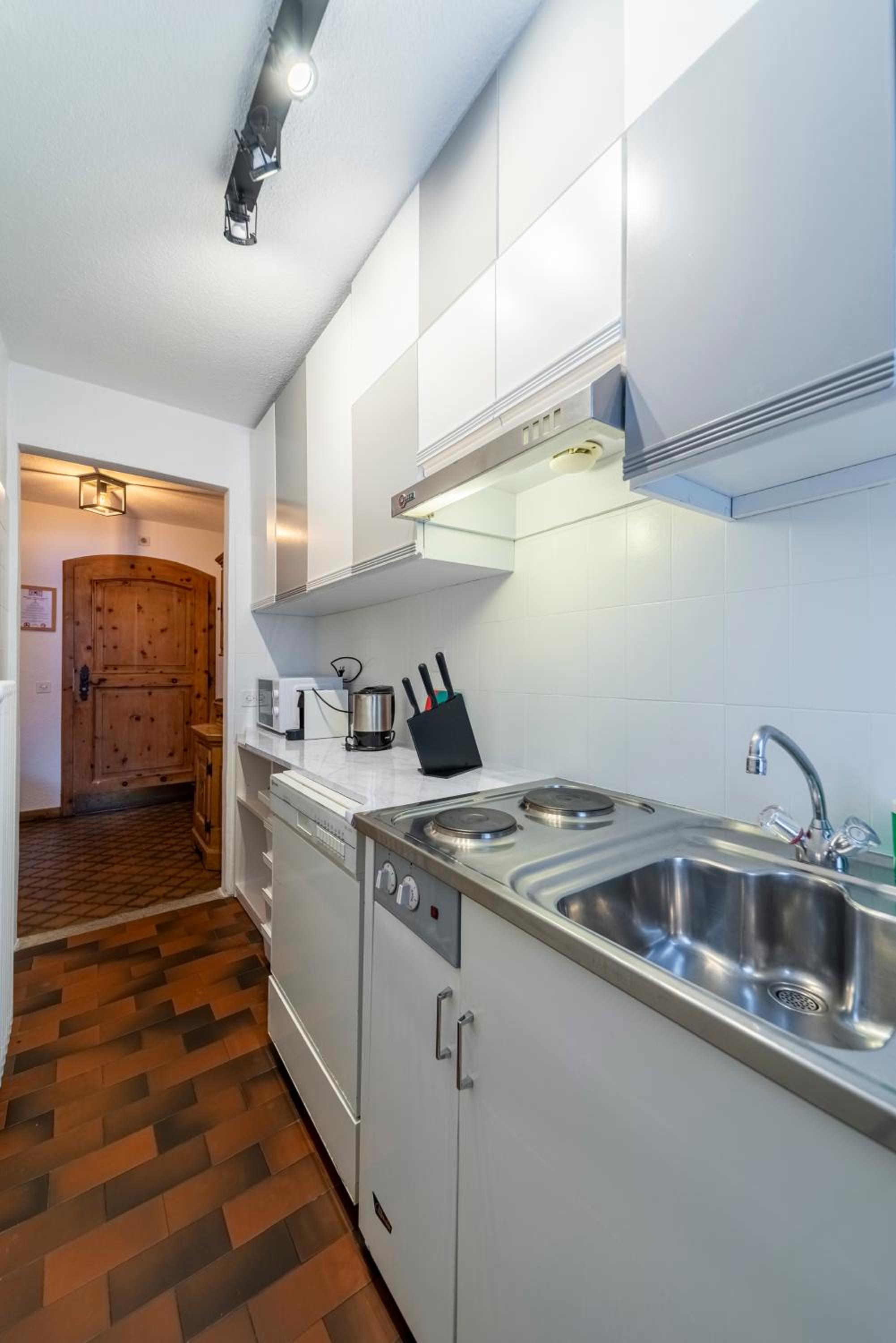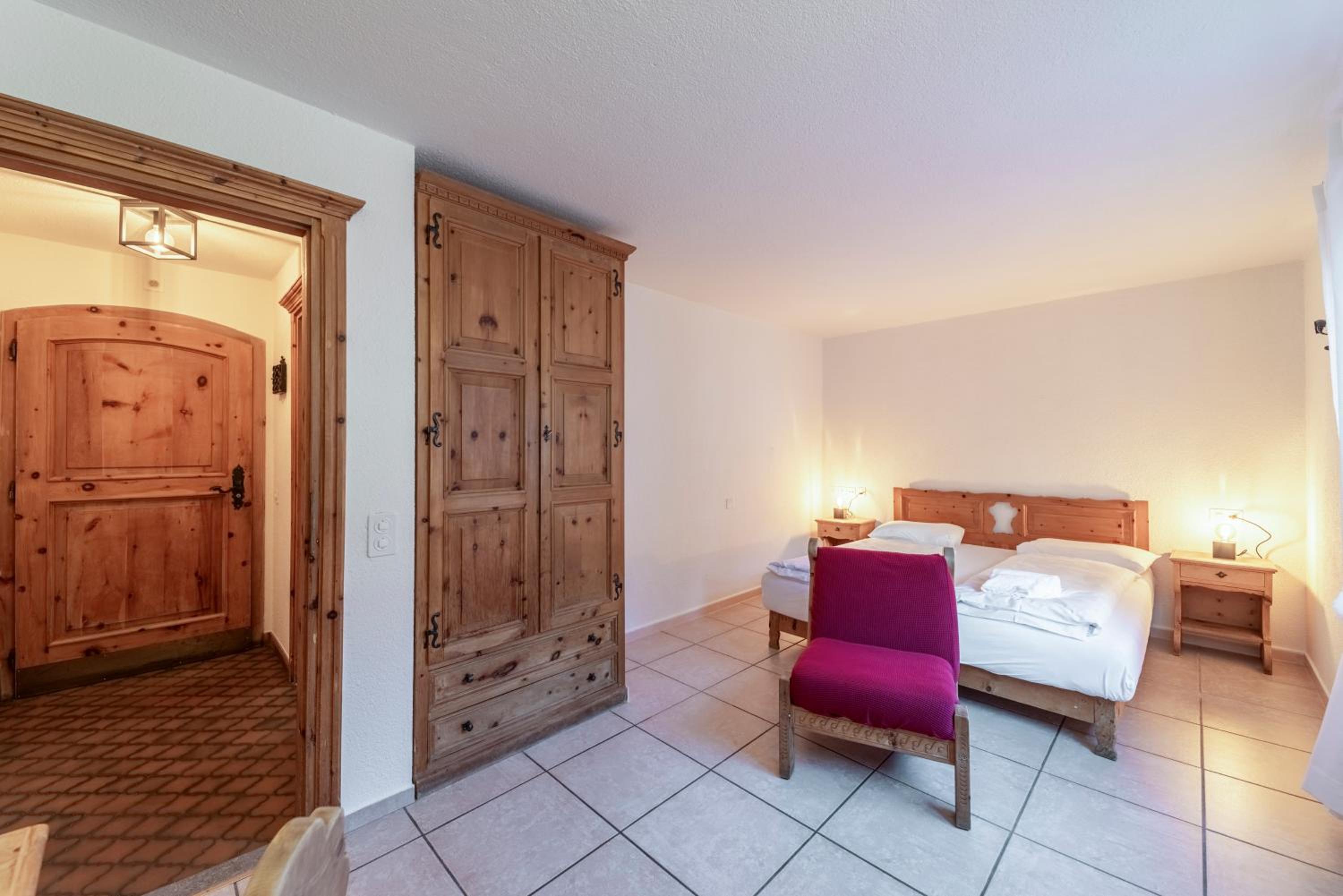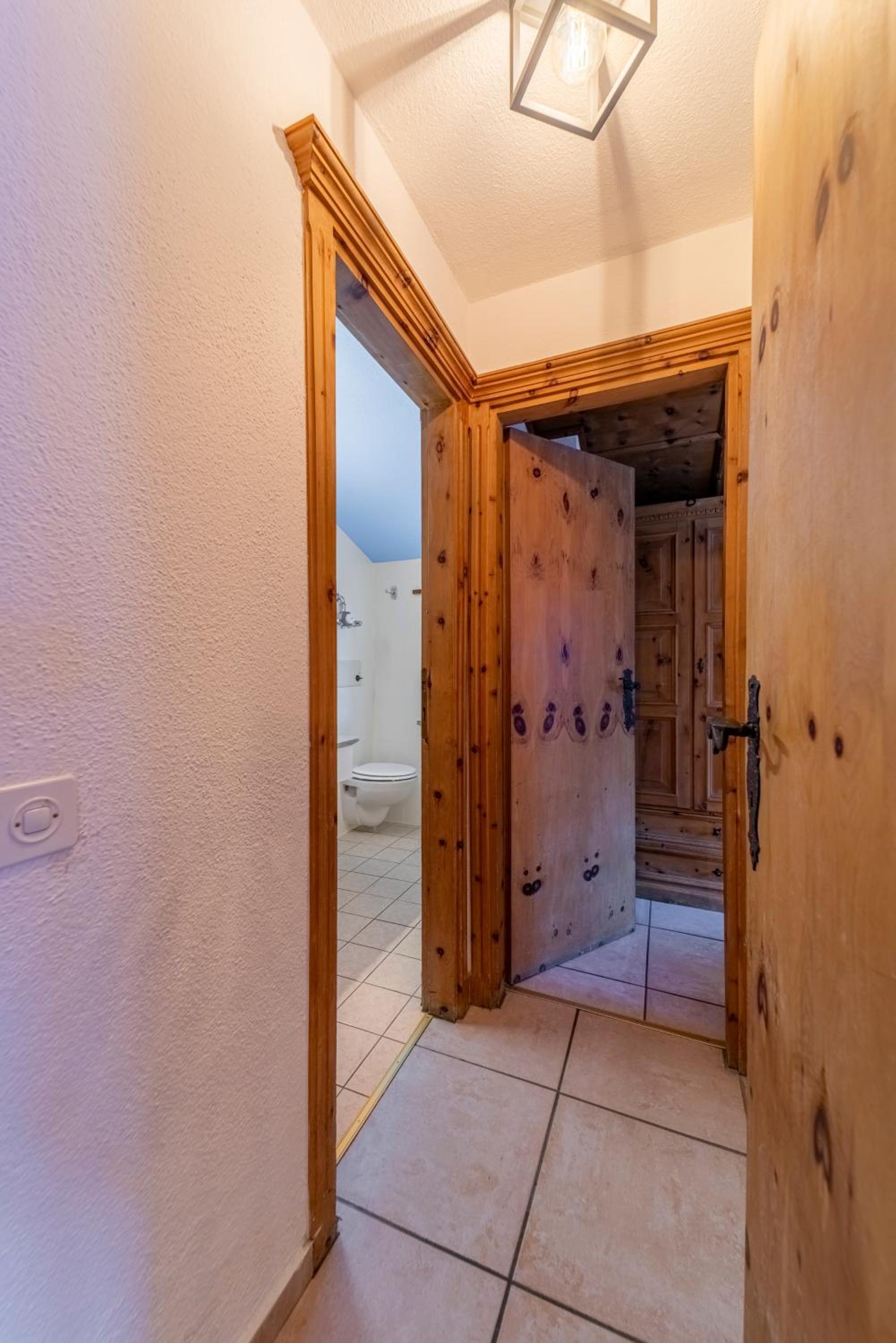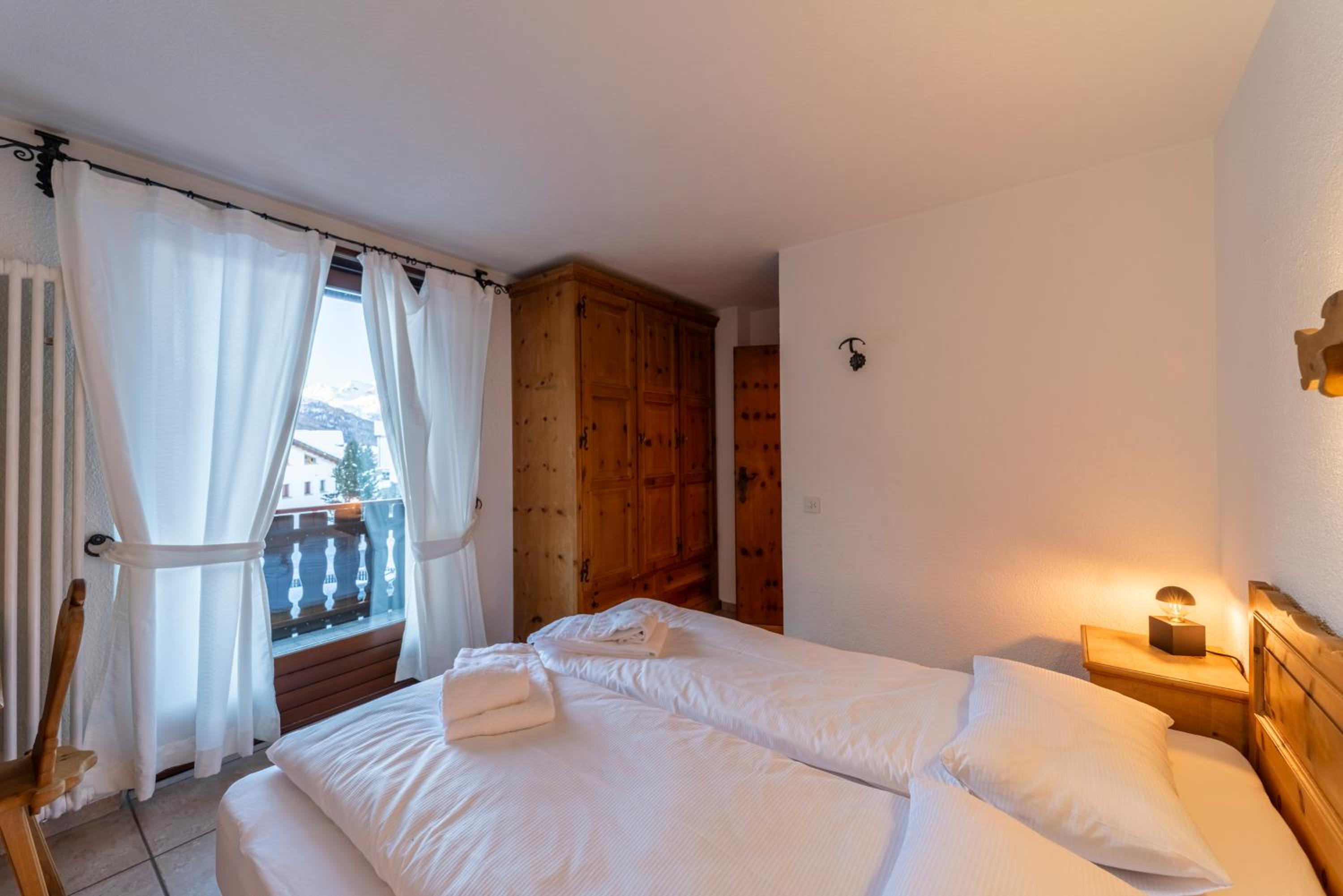The location is excellent and our room had fabulous views of the lake and surrounds. The triple room was very comfortable and spacious and included tea and coffee (pods). Has a lift for your luggage. Staff were great, very accommodating and friendly. There is a large room with tables and chairs where you can eat your own food, play board games etc which was handy. Supermarket and bakery a short walk from the accommodation. Bus stop also close and handy to access St Moritz (including the train station) and other towns. Buses very frequent and also had an enclosed space so you’re not waiting in the cold.