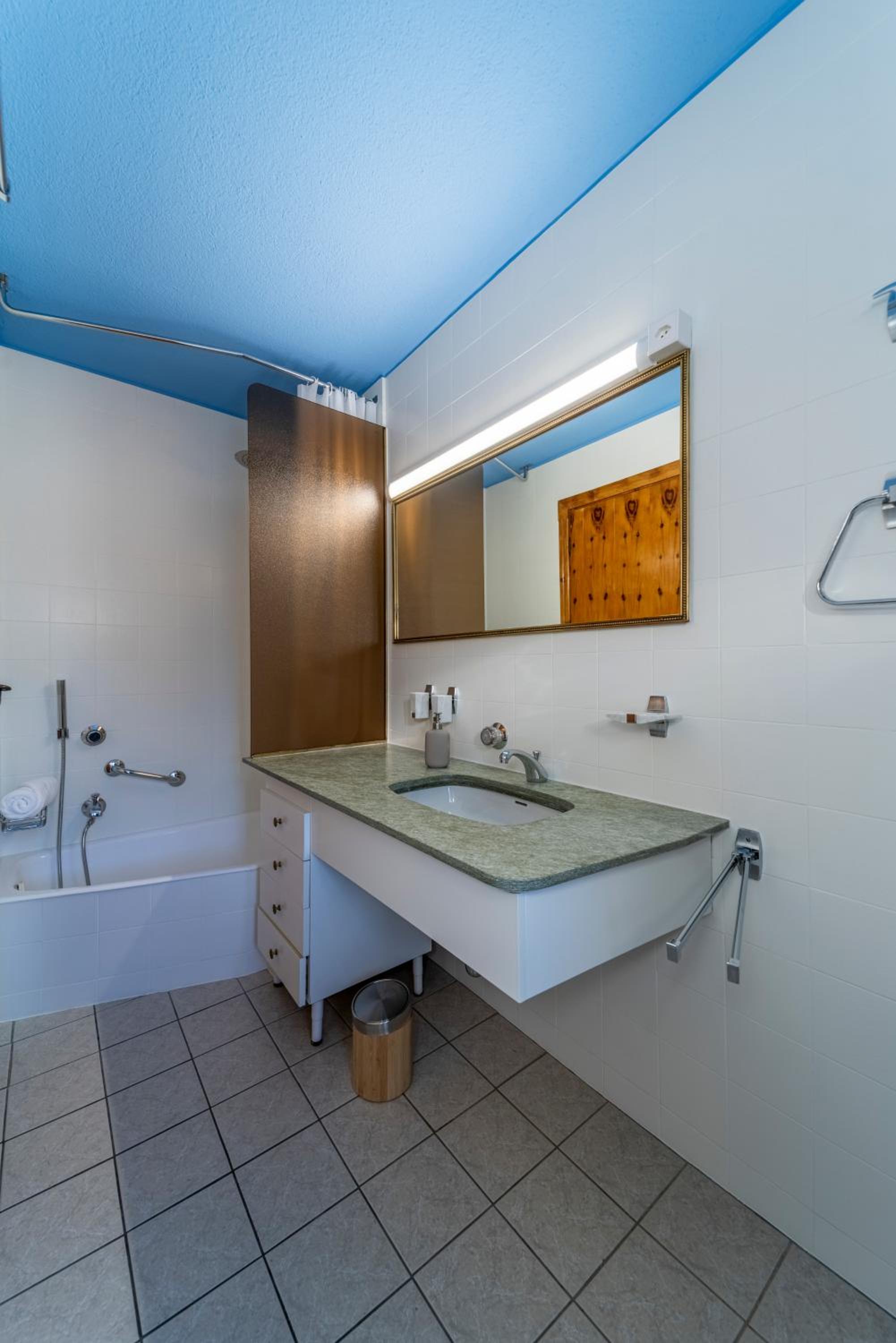 Sehr gewöhnungsbedürftig war das Warmwassersystem der Dusche, des Lavabos (es gibt nur ein zentrales Warmwasser-Mischventil ca. 1m vom Lavabo und ca. 2m von der Dusche entfernt)