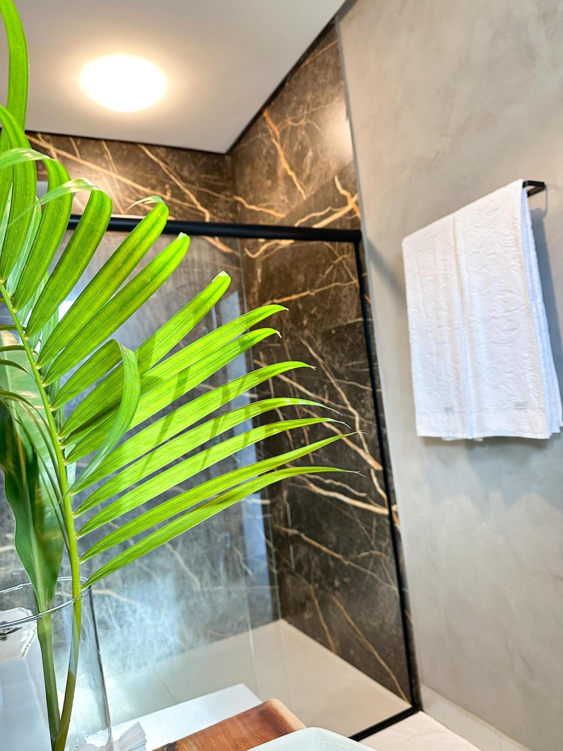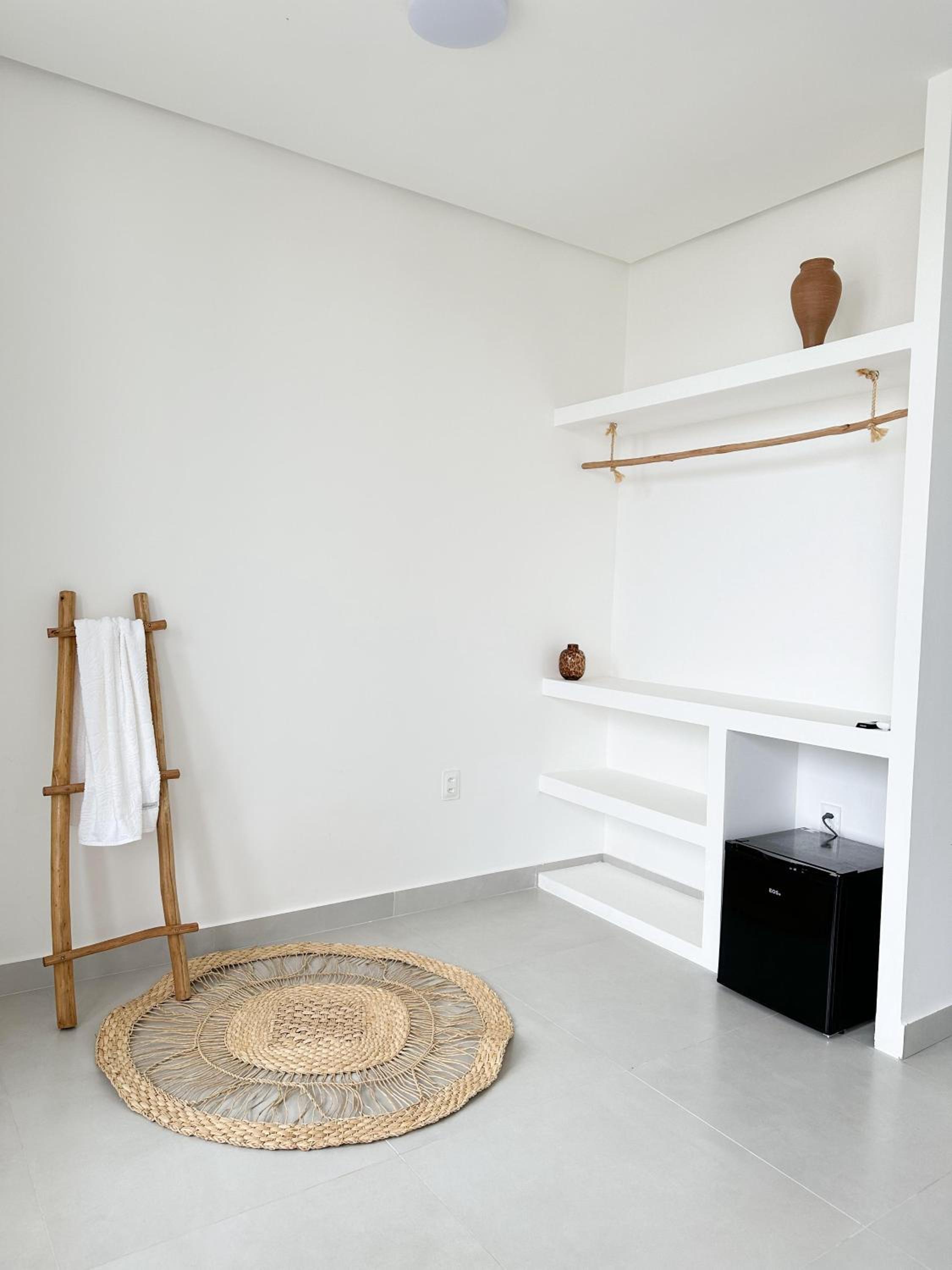 Sentimos falta de um "cantinho do café", com itens como café,açúcar, sal, óleo. Acho que seria um diferencial e os hóspedes iriam adorar. Fica a sugestão! Sentimos falta de espelho no quarto e um lugar pra estender roupas molhadas. Utilizamos no segundo dia, uma cadeira que foi colocada na varanda. Ajudou muito! Outro aspecto não muito legal é ficar fechando a cortina toda hora pelo fato de ser tudo vidro. Pouco prático!