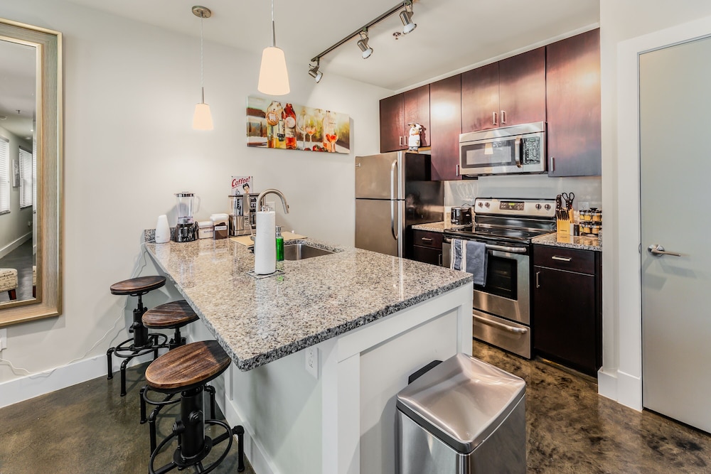 Boutique Accommodations: Indulge in individually decorated guestrooms with fully equipped kitchens and memory foam beds.
