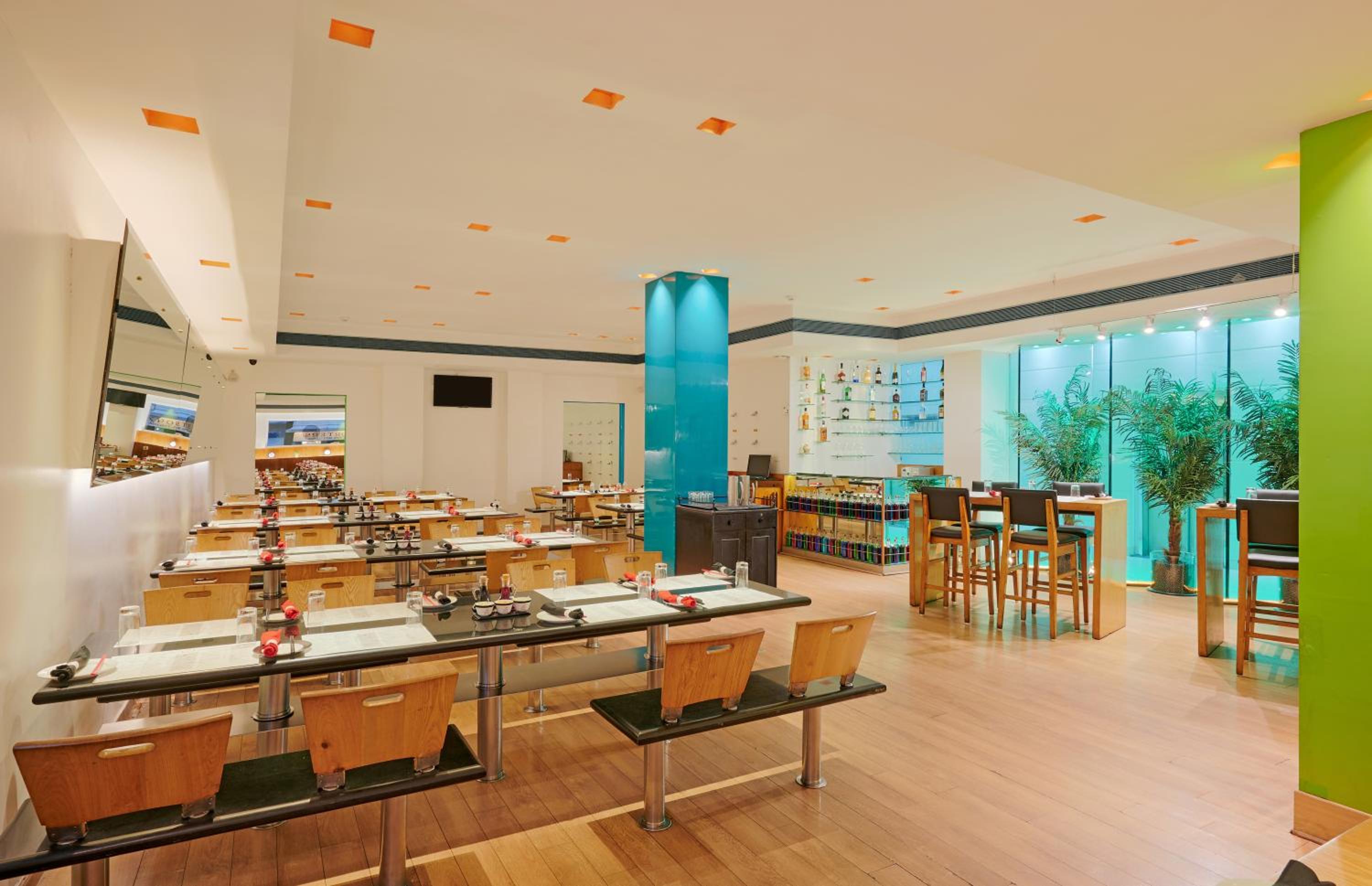 The music from the bar on the first floor is an absolute disgrace. A big noise and bass sounds through the hotel even on the fourth floor. A hotel is a place for sleeping and in weekends this is impossible here. It should be mentioned before booking and paying and the high hotelprice should be lowered by at least 50%. . They Just don t deliver for what you pay. Besides al this the hotelprice is too high for the standard of this hotel compared to other hotels in India