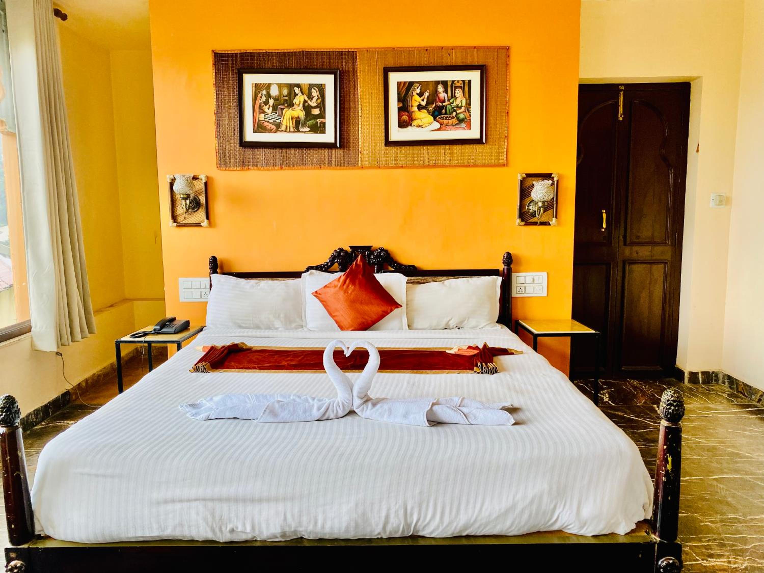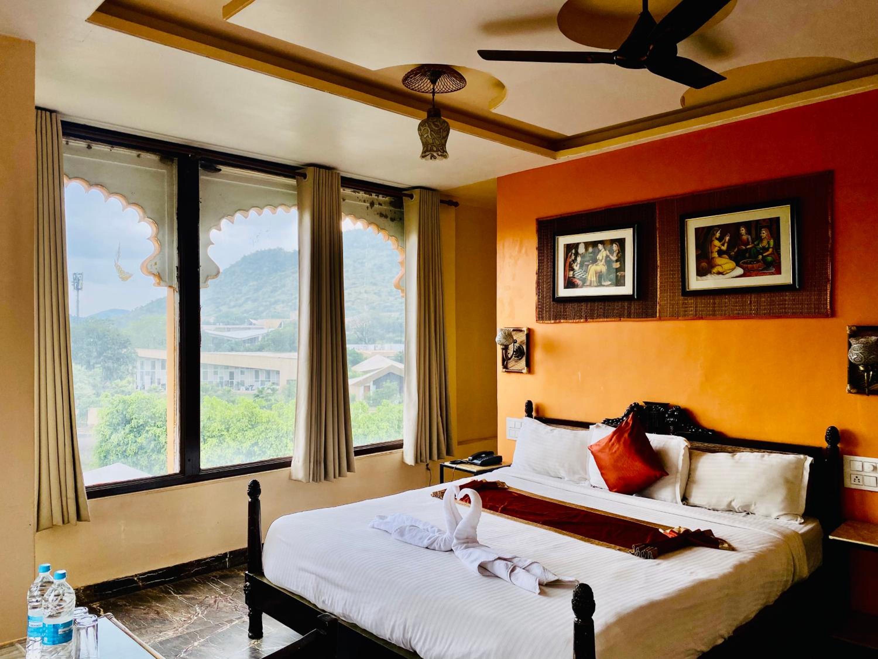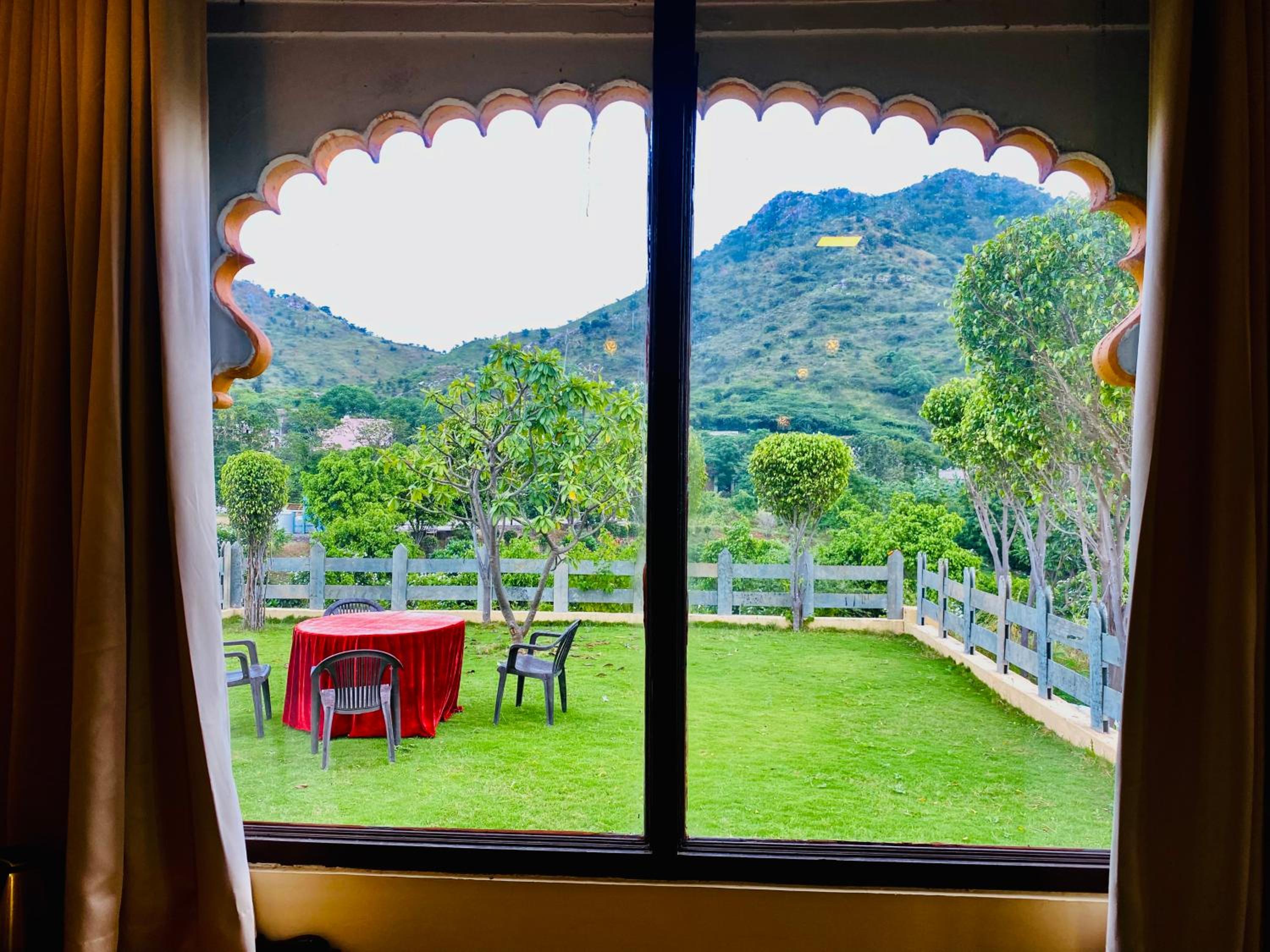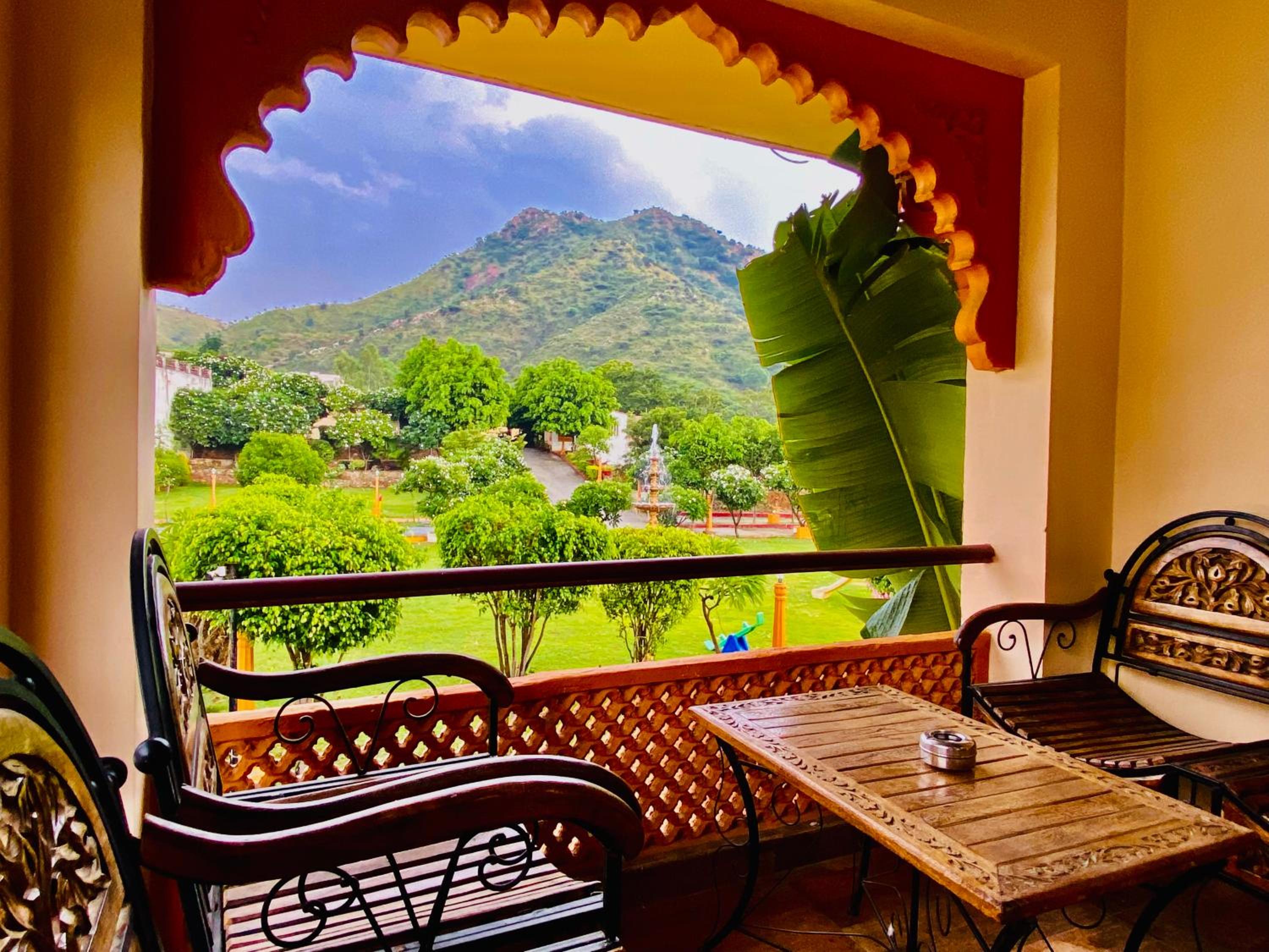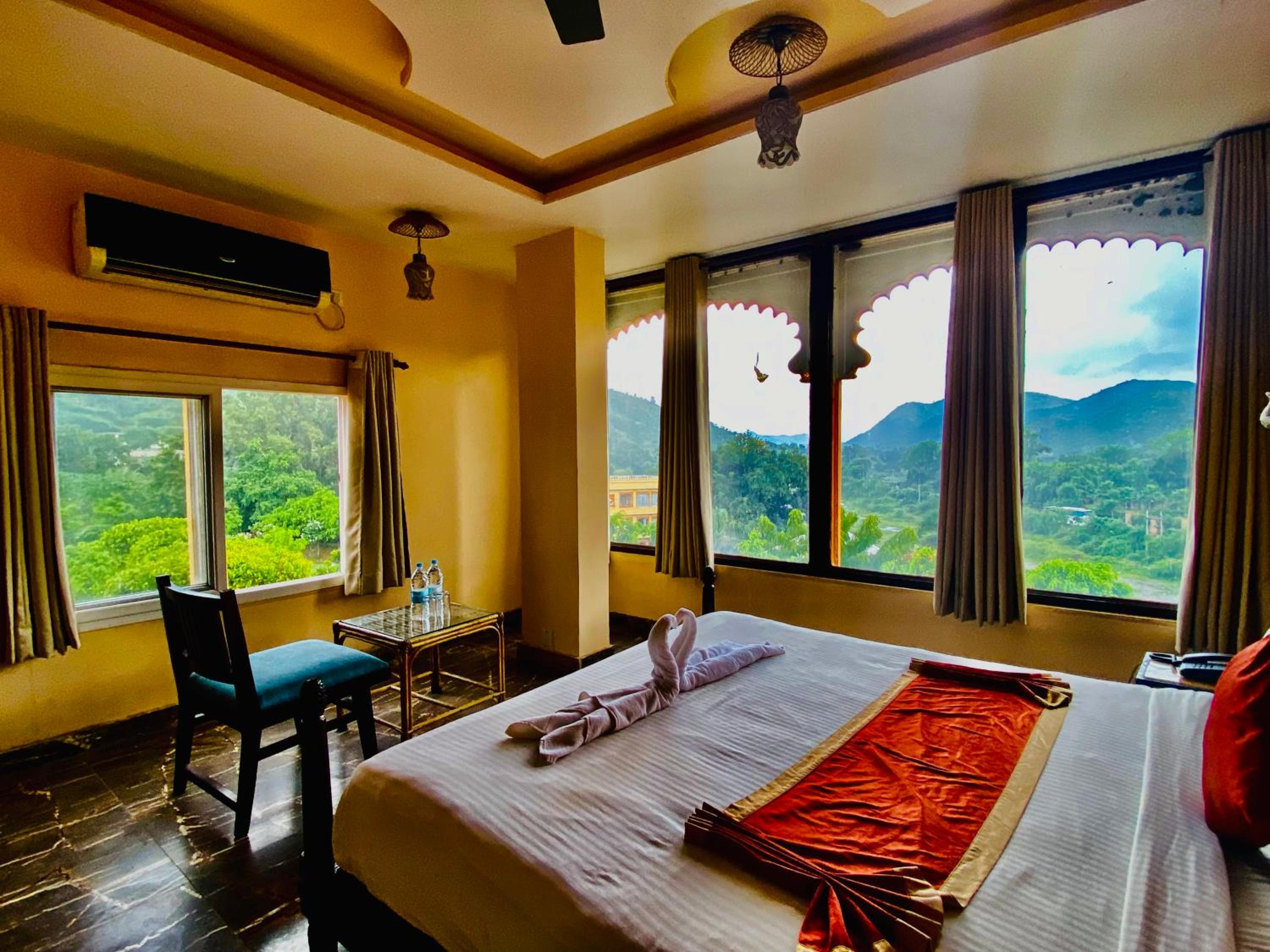 Experience comfortable rooms with modern amenities and stunning mountain views at Udai Valley Resort.