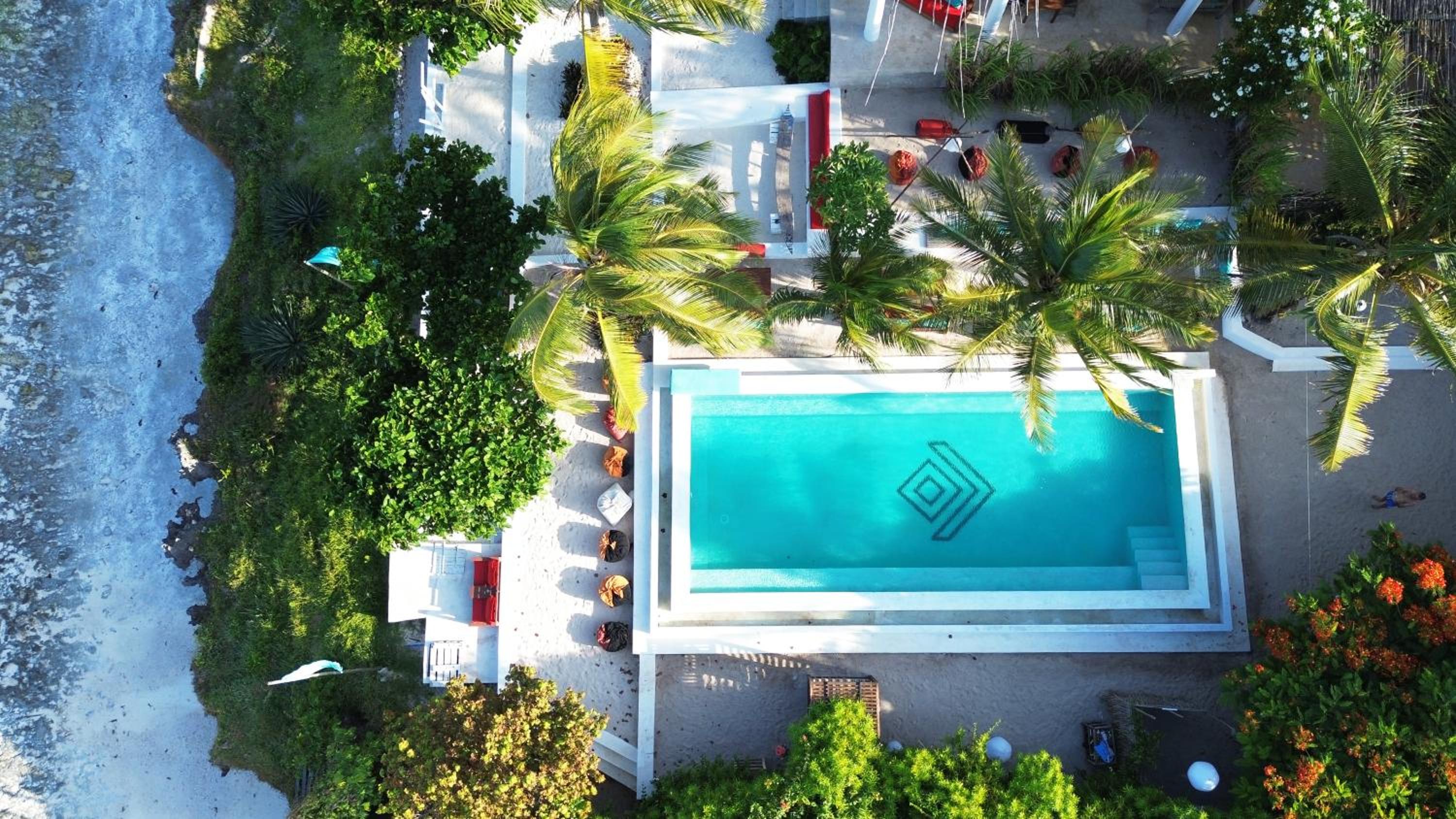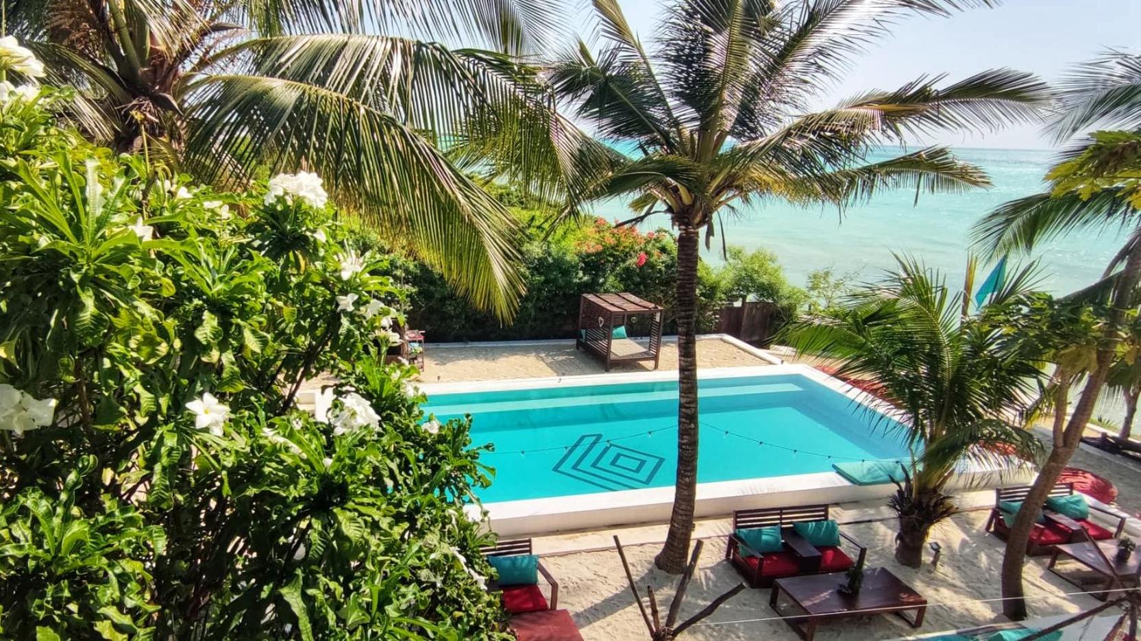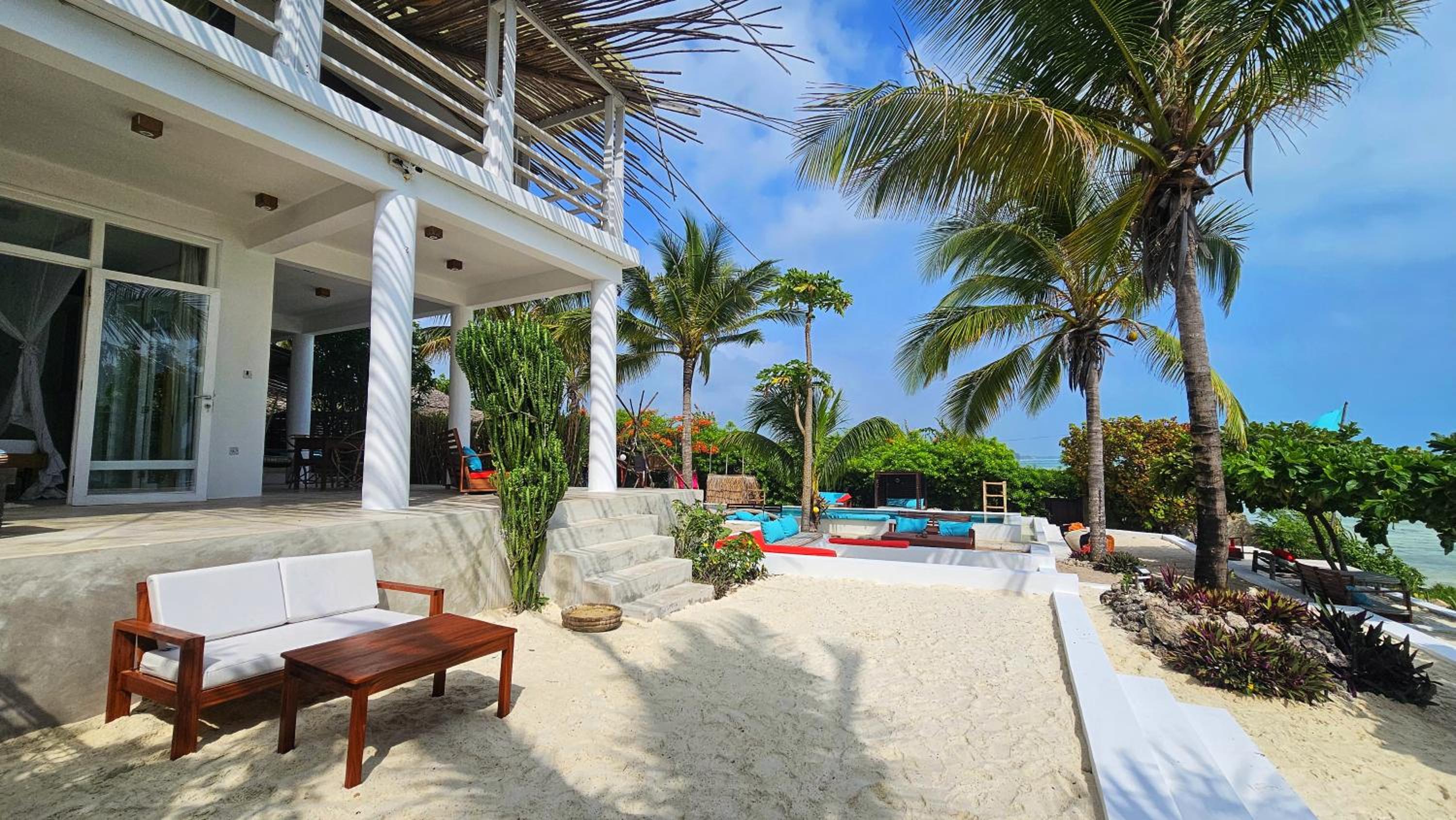 Indulge in the outdoor swimming pool, private beach area, and garden at Masai Mara Zanzibar. Relax in the shared lounge offering stunning sea views.