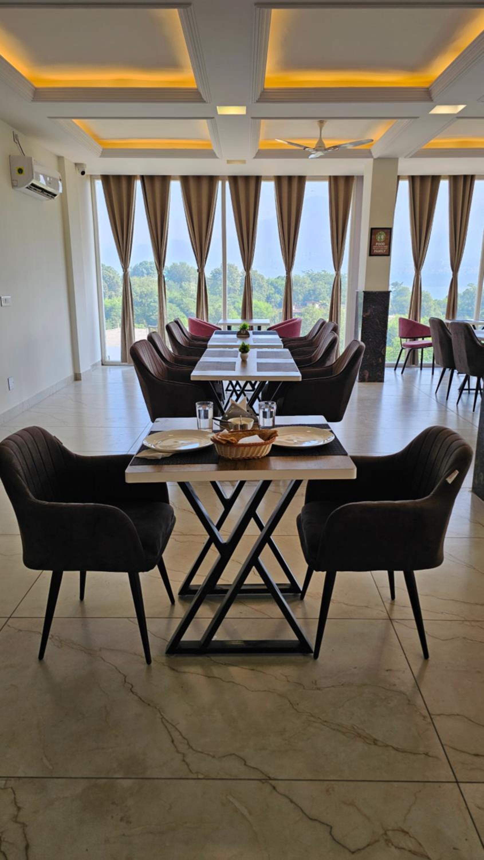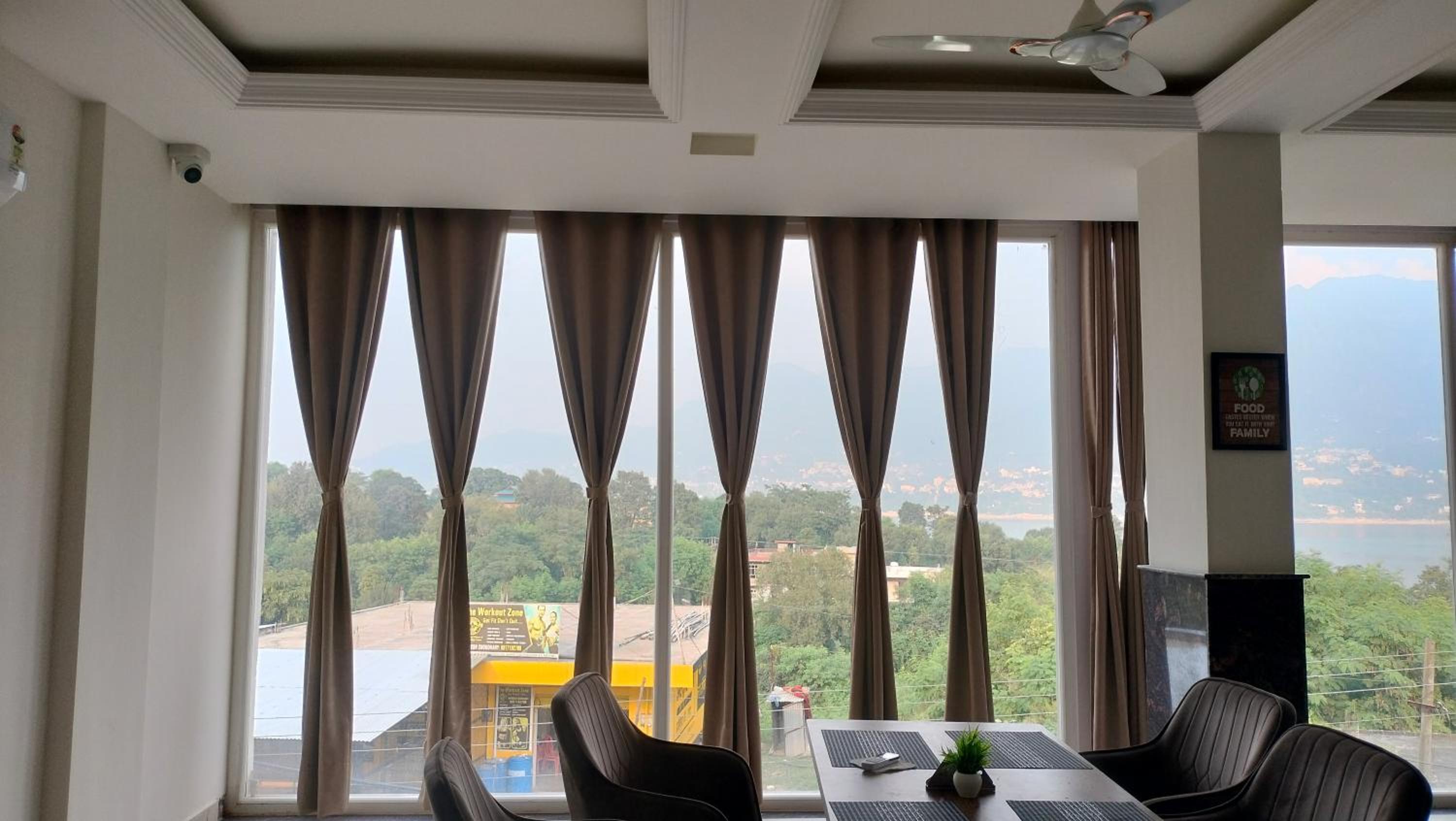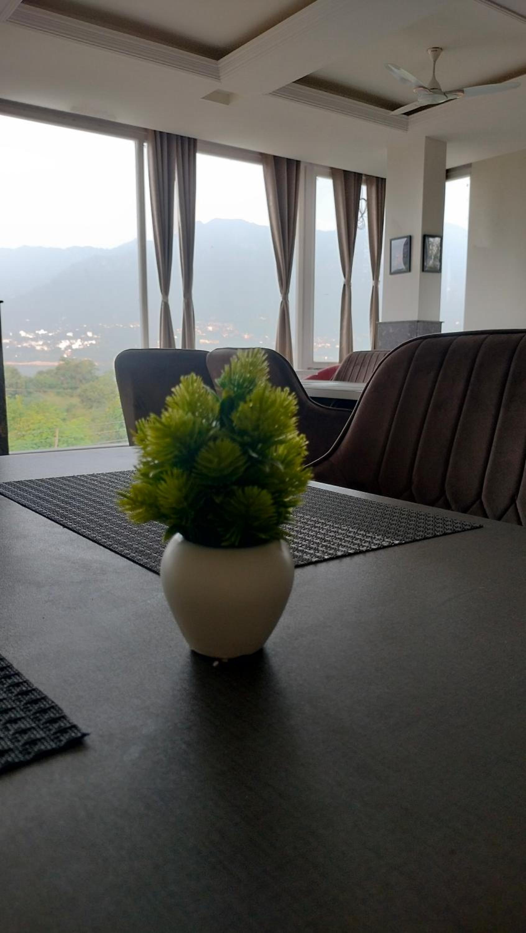 Enjoy breathtaking mountain views from the terrace of Govind Sagar View Hotel & Restaurant.