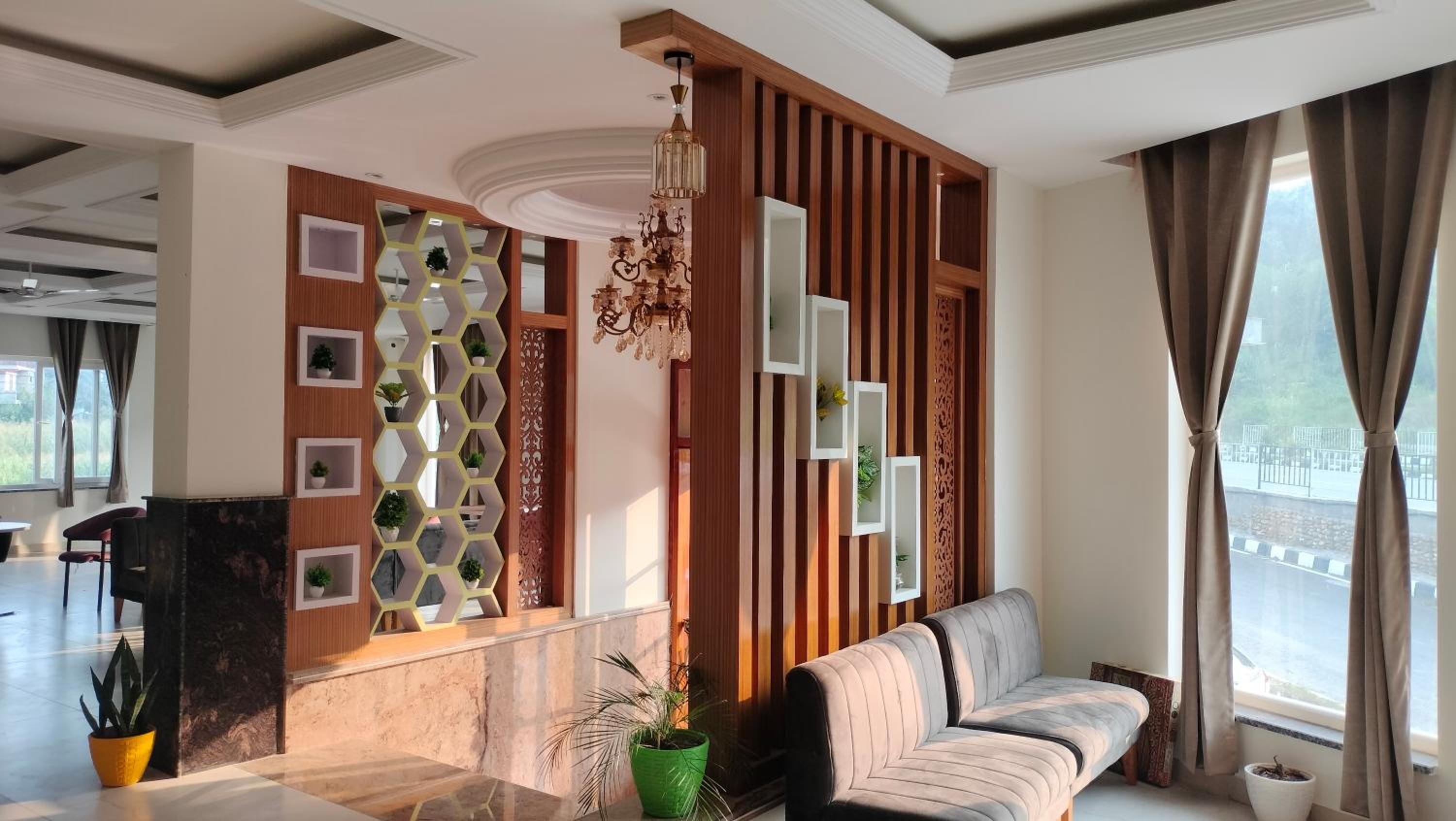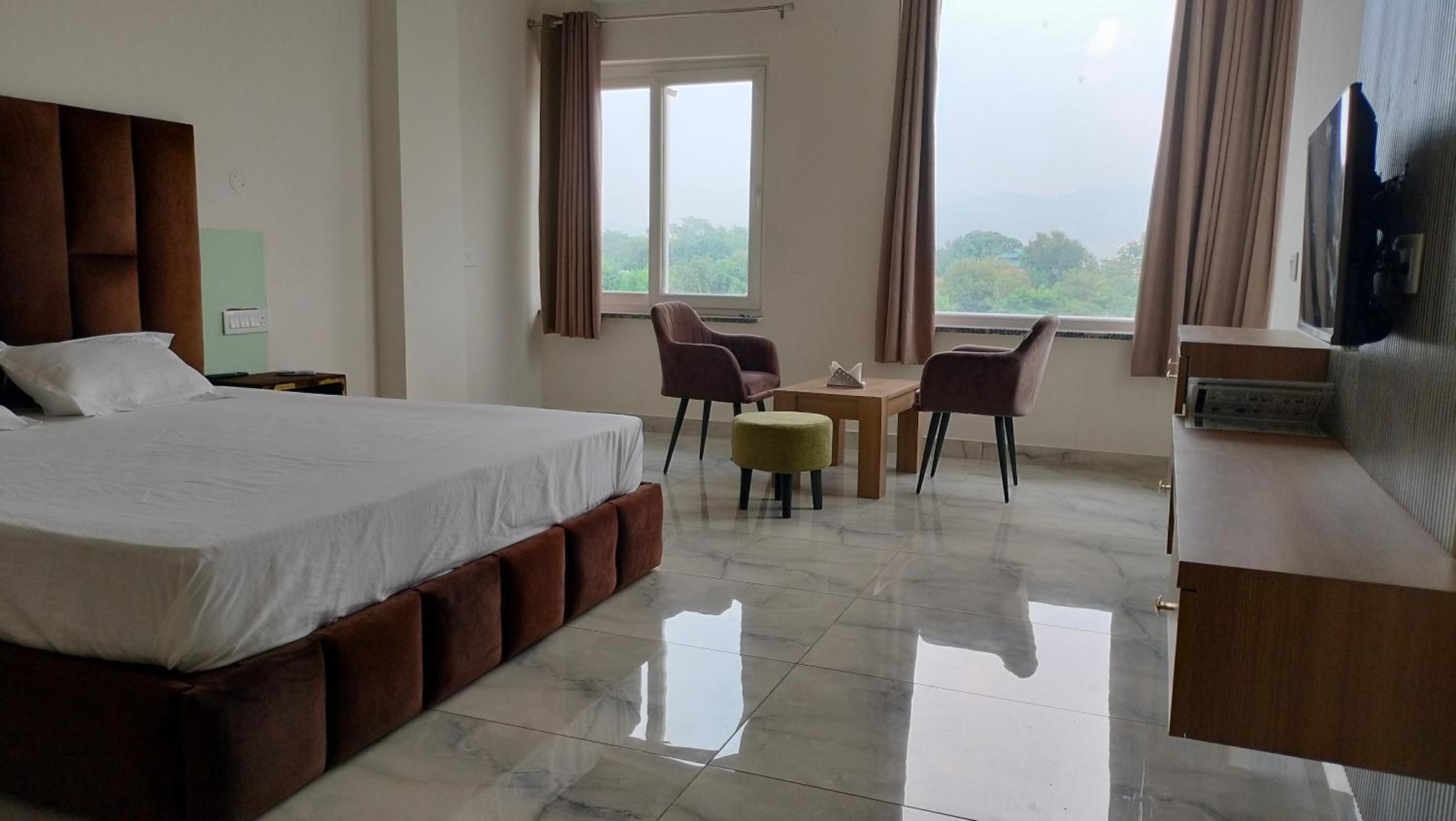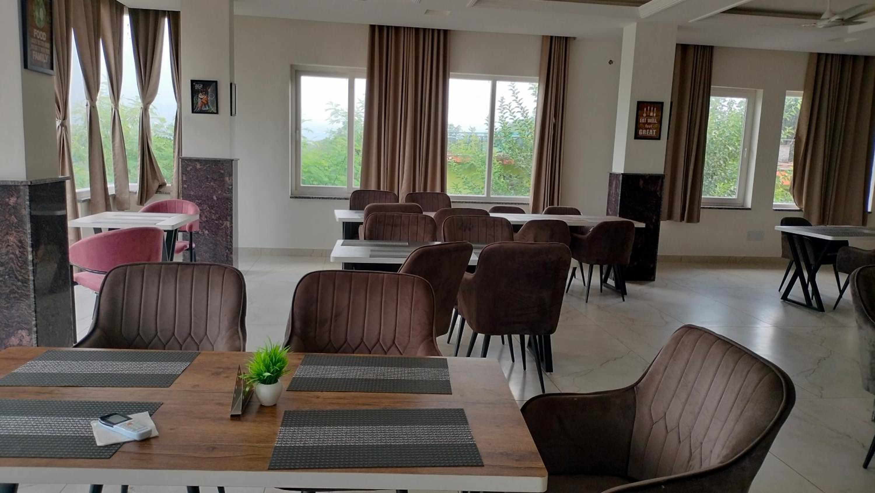 Enjoy breathtaking mountain views from the terrace of Govind Sagar View Hotel & Restaurant.
