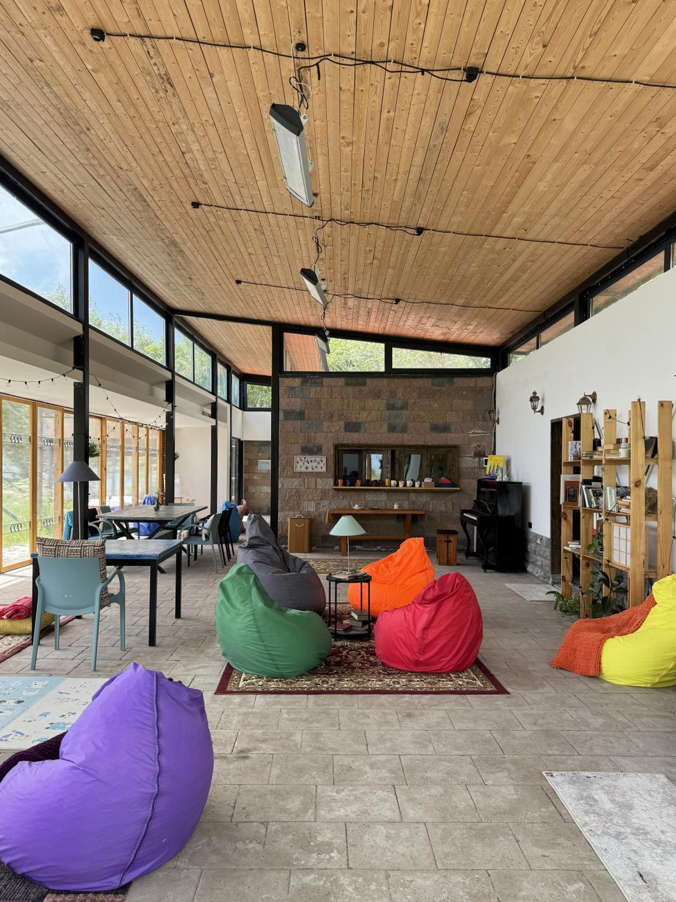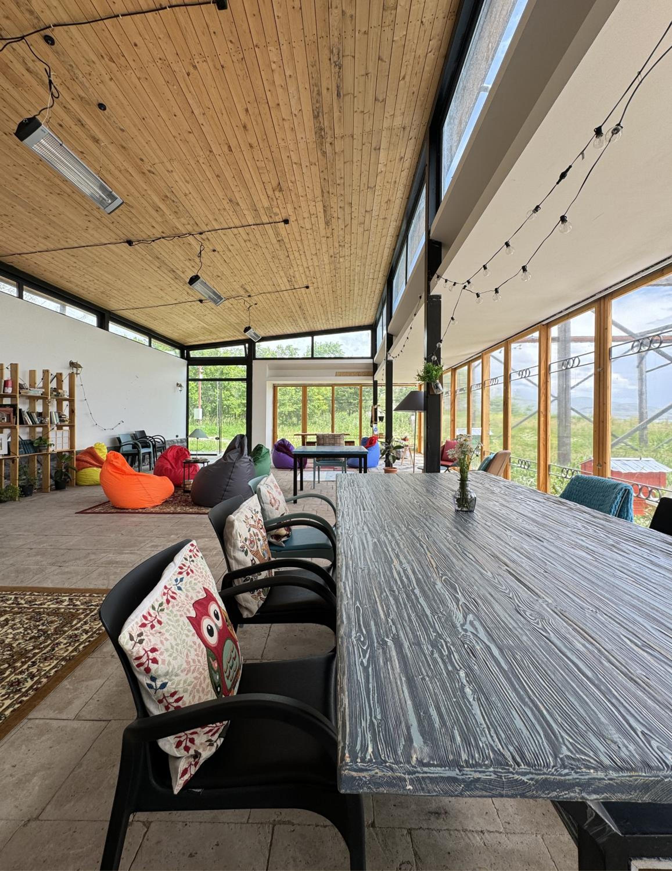 Тихо, много воздуха и солнца, вид на огромное озеро; внимательные и интересные люди, вкусная еда (баклажановые рулетики сногсшибательные), теплый дом. Бонус: дружелюбные собаки.