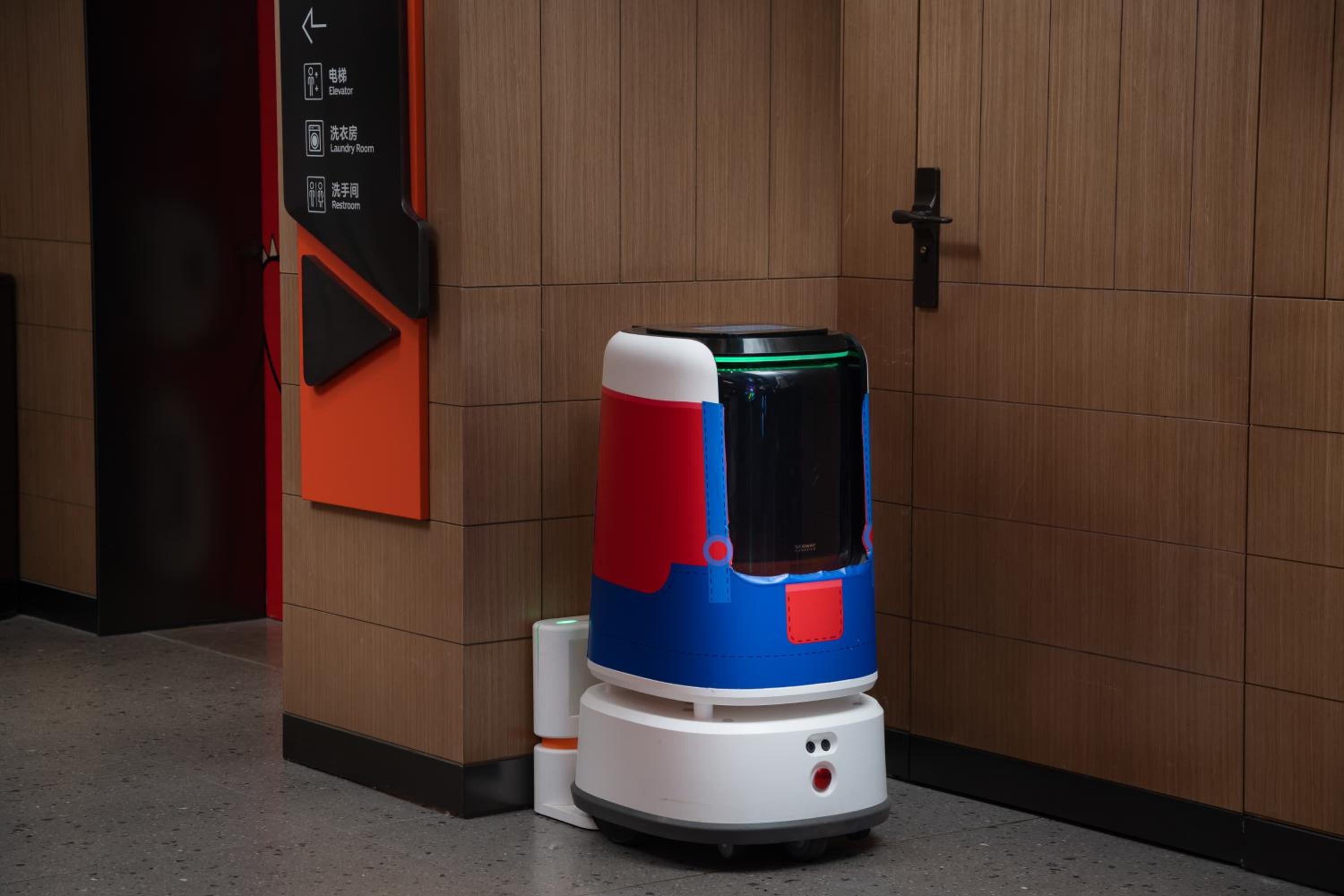 There is no door to the toilet. It looks cheap, a bit run down. Hard to control the room with voice commands if you don't speak chinese.