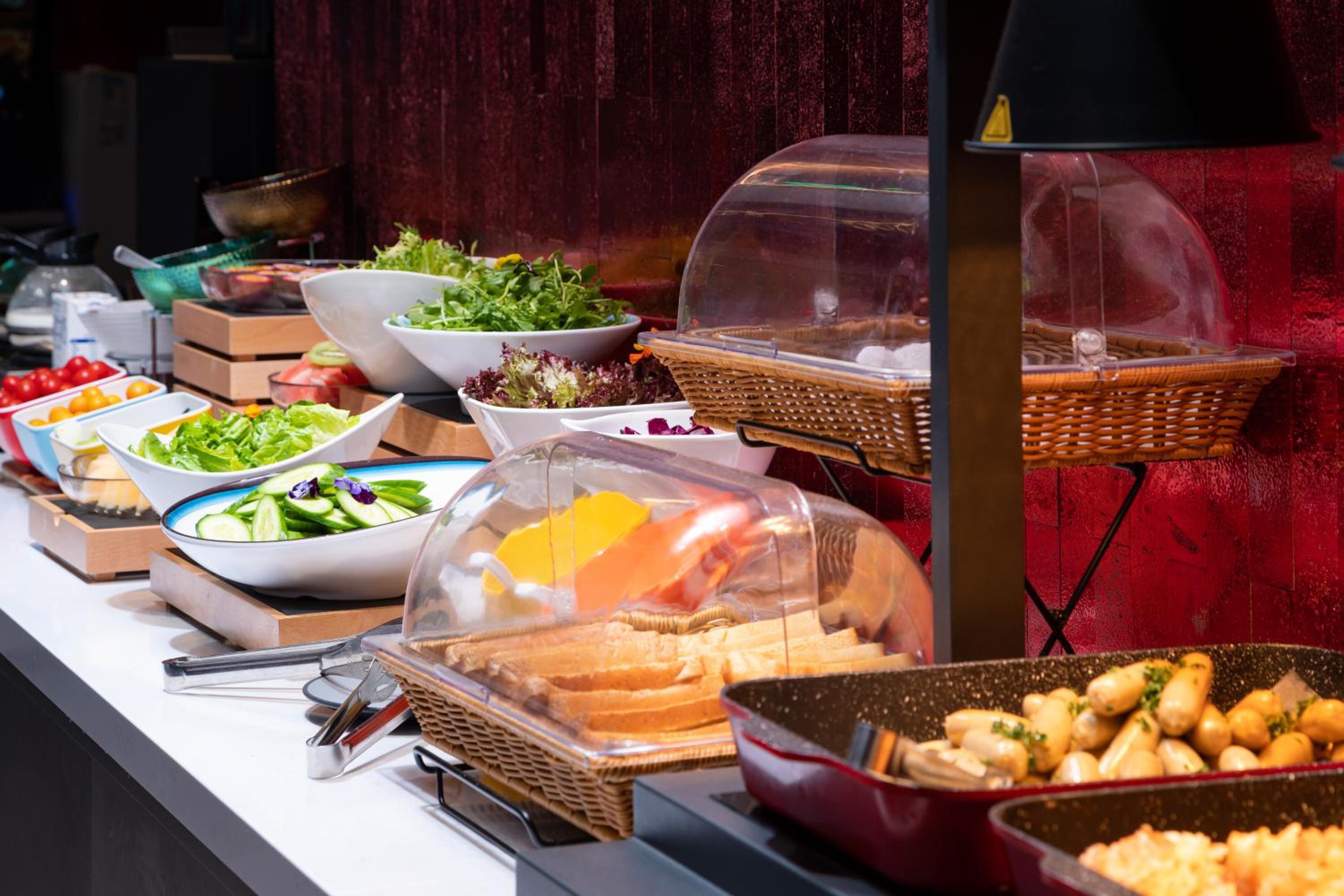 早餐多样:老人小孩都能找到适合自己的主食和餐点,蛋糕,粥,粤式早茶、点心,青菜,河粉,水果,冷盘,咖啡,奶茶等等,品种丰富。